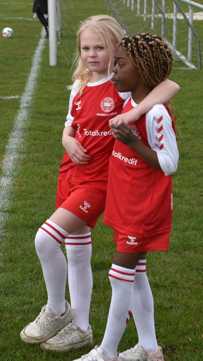 "Det er virkelig godt det her. De har virkelig glædet sig til at komme i gang. Det giver meget, at børnene kan mødes på denne måde på kryds og tværs. Alene det at piger og drenge løber rundt og spiller sammen er med til at nedbryde nogle fordomme," siger Sep Thalwitzer fra Venligboerne, der har hjulpet et par af de trænere, som hun står og kigger på ude på græsset.