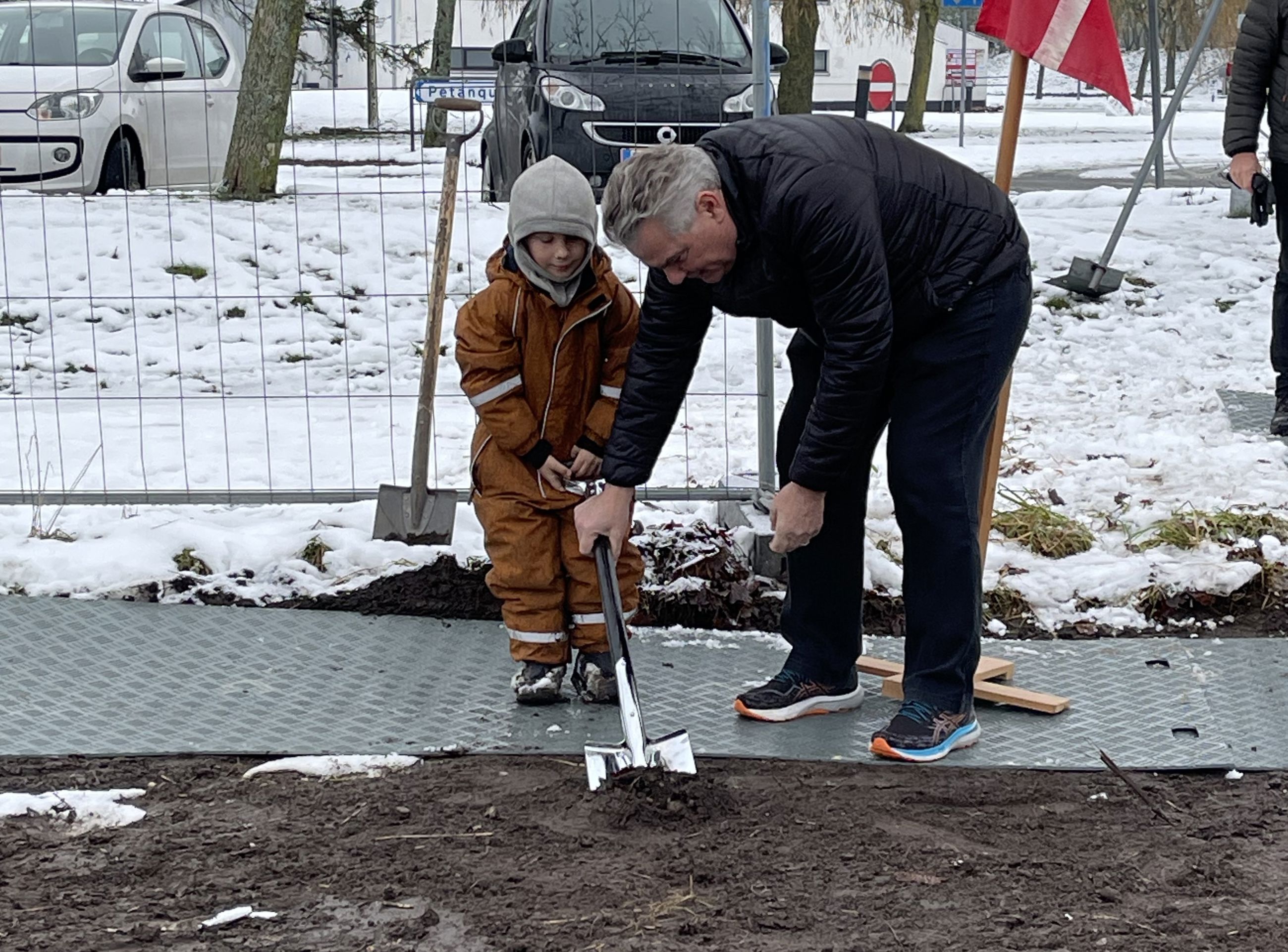 Torsdag den 7. december 2023 markerede Børne- og familieudvalget og 2. viceborgmester, Mogens Nyholm, starten på byggeriet af Randers Kommunes nye daginstitution i Dronningborg.