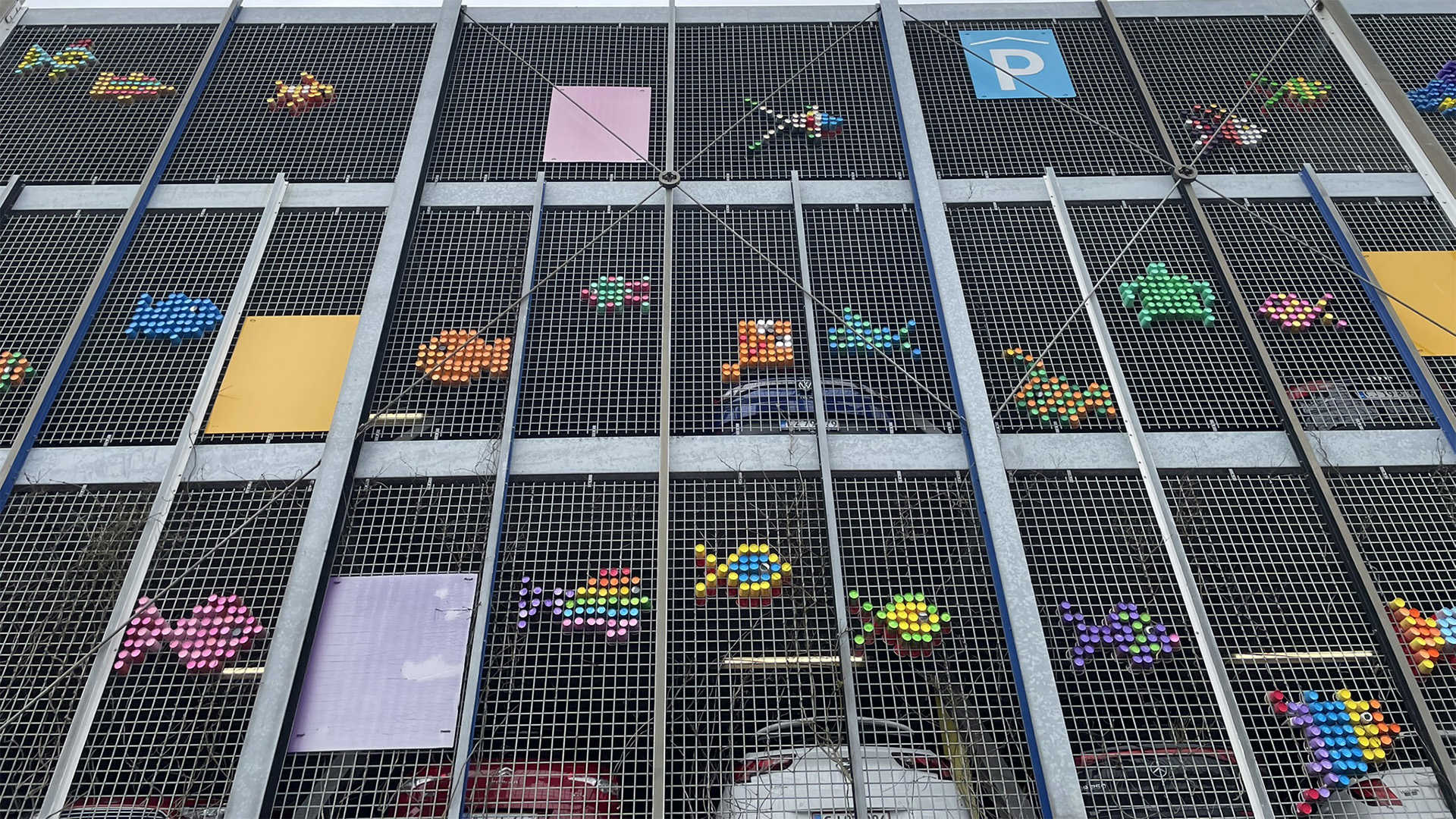 De 13.000 brugte engangskopper er blandt andet samlet ind med hjælp fra flere erhvervsdrivende. Udsmykningen på P-huset kan man opleve frem til den første weekend i maj.