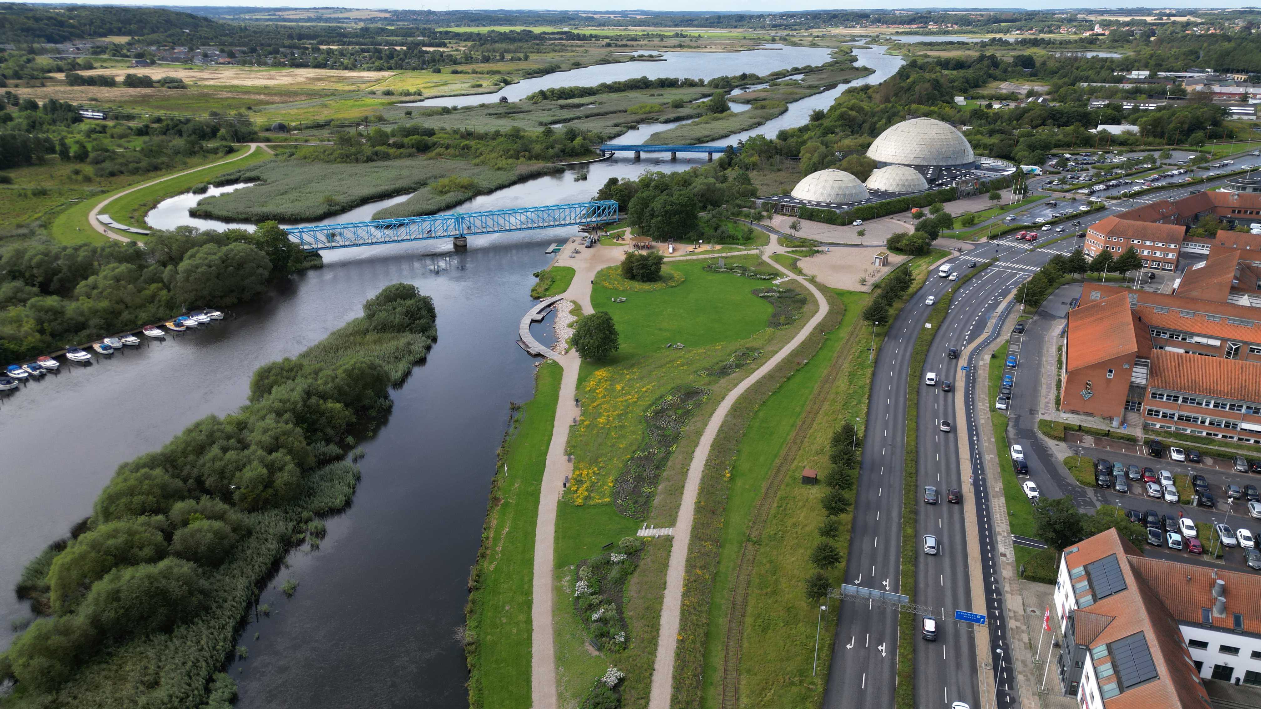 For at give alle mulighed for at høre mere om de to projekter, inviterer Randers Kommune og Vandmiljø Randers nu på tre uformelle, guidede gåture i de to områder. Turen vil blandt andet gå forbi det 300 meter lange dige på Justesens Plæne, der sammen med den kommen Klimabro og resten af klimabåndet skal beskytte Randers mod oversvømmelser.