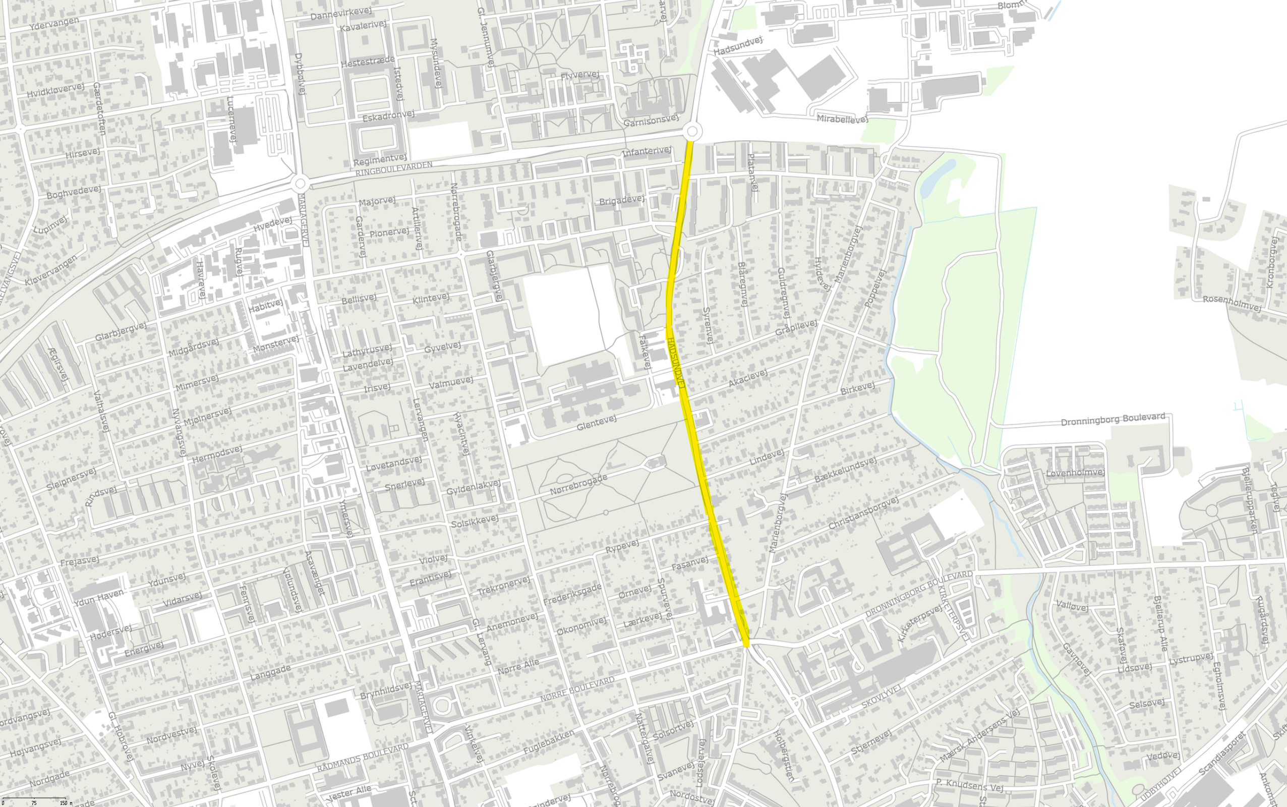 Det drejer sig om strækningen fra stjernekrydset til rundkørslen ved Ringboulevarden, hvor der i perioden fra søndag aften den 19. april til og med natten til mandag den 4. maj bliver lagt ny asfalt. Med over 11.500 køretøjer i døgnet er det en af de mest trafikerede strækninger i det centrale Randers, og for at genere trafikken mindst muligt bliver arbejdet udført i aften- og nattetimerne.