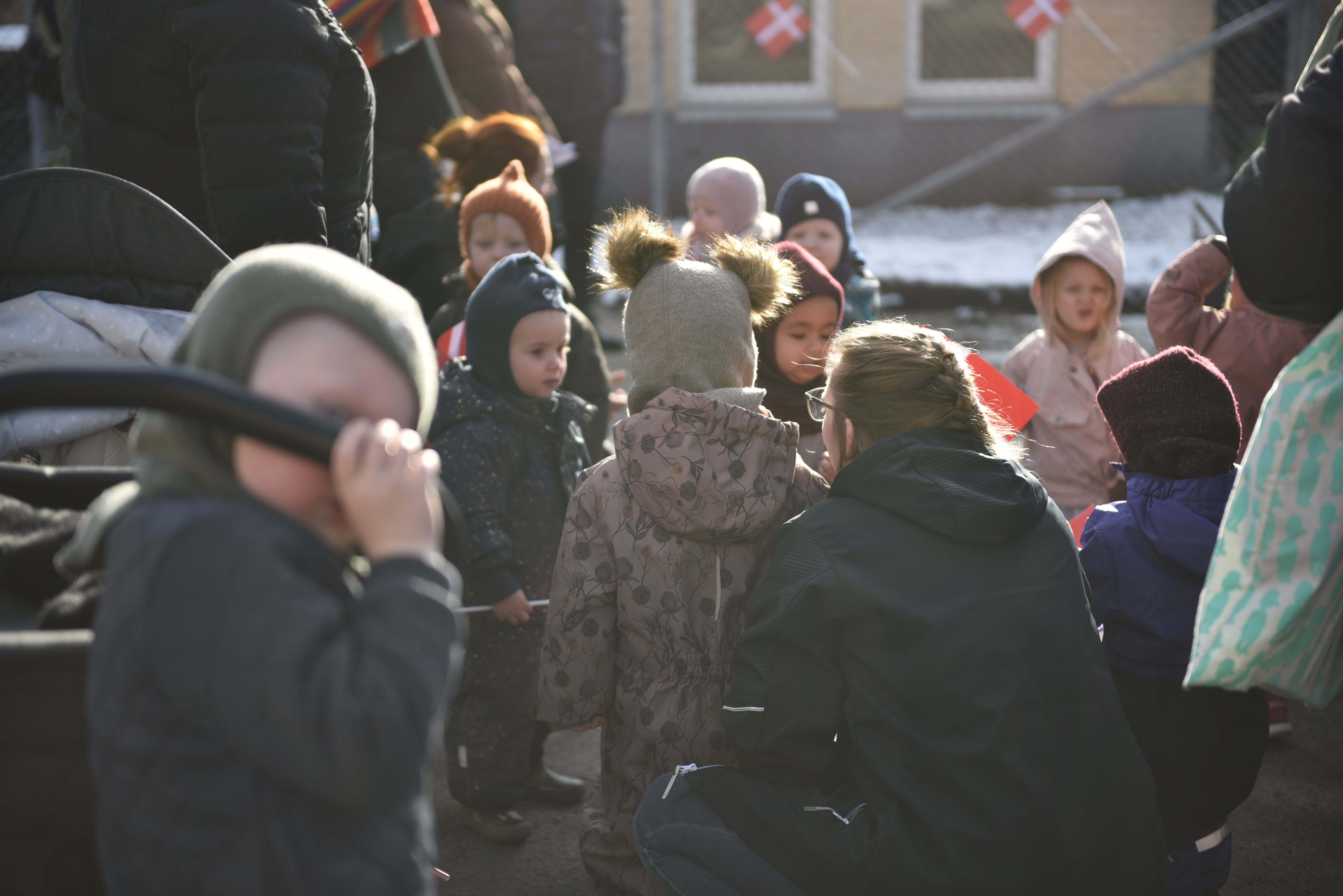 Der var pyntet med flag og rødt bånd ved Børnehuset Elmehaven torsdag 8. februar 2024, hvor børn og personale stod klar til at tage imod gæster. En tilbygning og ombygning af institutionen var blevet færdig, og det skulle fejres ved en officiel indvielse med borgmesterbesøg, taler, snorklip og rundvisning efterfulgt af kaffe og kage.