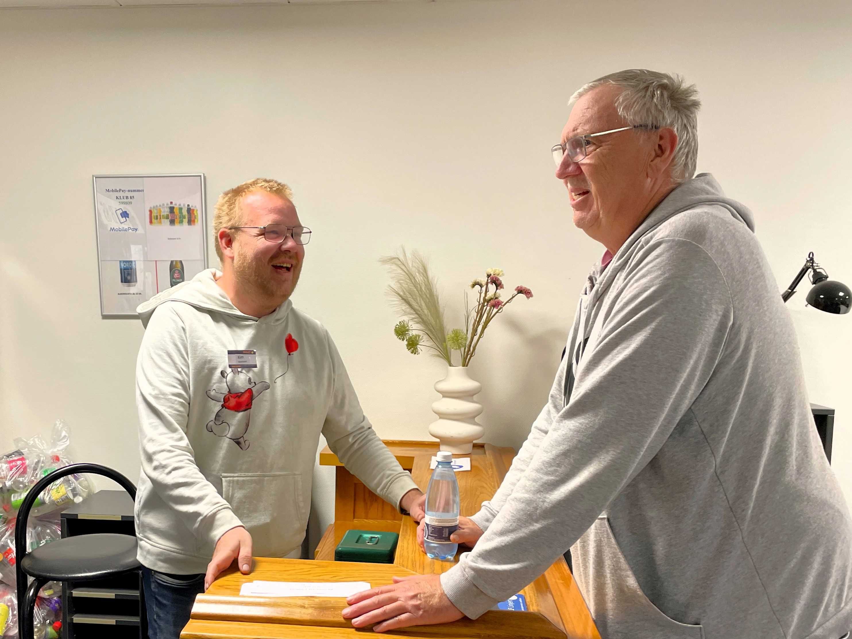 Billedtekst: Kim (t.v.) sørger blandt andet for, at alle er forsynet med drikkevarer fra baren, når der er klubaften i Klub 85.