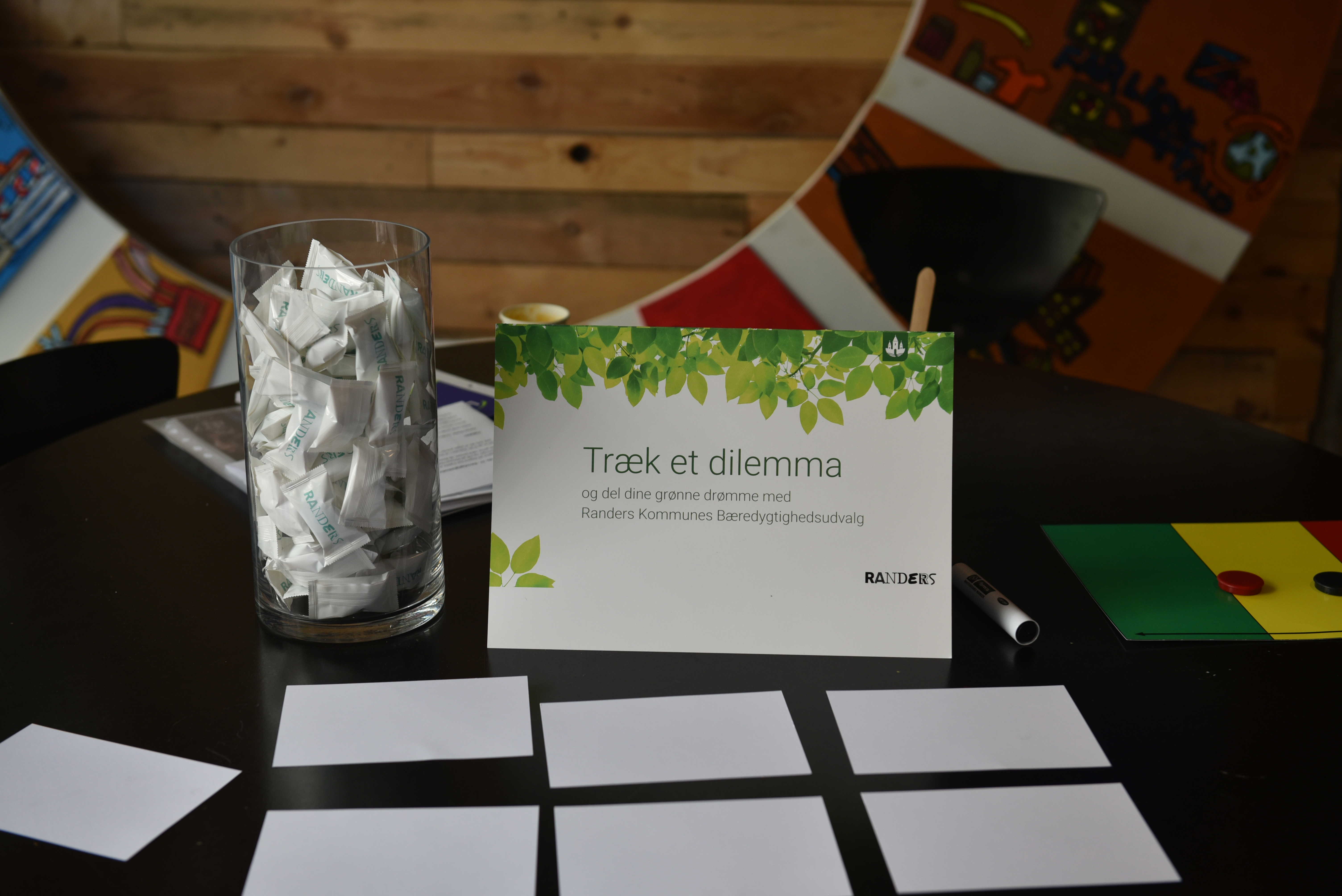 Hele dagen kunne man møde medlemmerne af Randers Kommunes bæredygtighedsudvalg, og det blev til mange gode snakke om klimaudfordringerne og løsningerne på dem. Man kunne i den forbindelse trække et dilemma og selv blive udfordret på at finde en løsning.