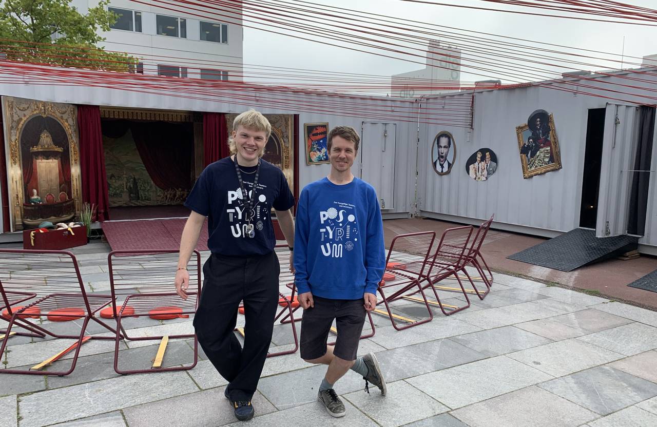 Sebastian Jonasen og Peter Warner giver kreativiteten og legen luft under vingerne i Postyrium på hjul på Jens Otto Krags Plads.