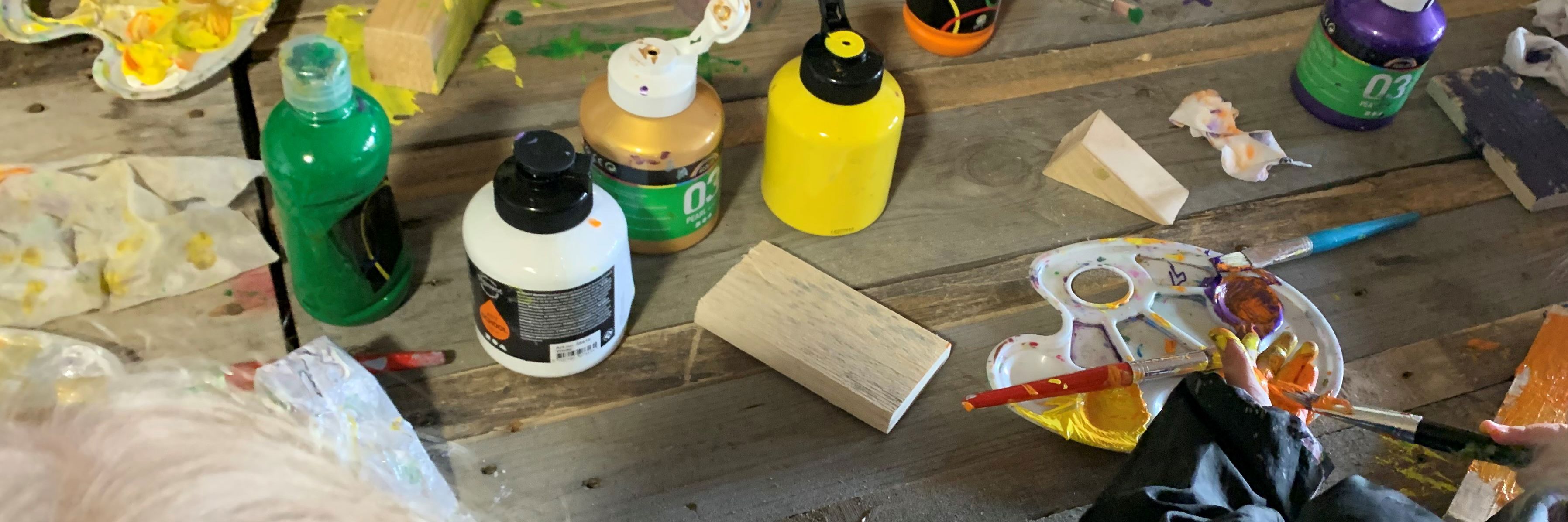 Otte børn og en lille håndfuld voksne fra Kristrup Vuggestue var onsdag den 31. maj på besøg hos Møbelcirklen på Toldbodgade 81. Her blev der malet træklodser til den helt store guldmedalje. Træklodser, som nu skal sættes sammen til uroer og hænges op og pynte i træerne på Kristrup Vuggestues legeplads.