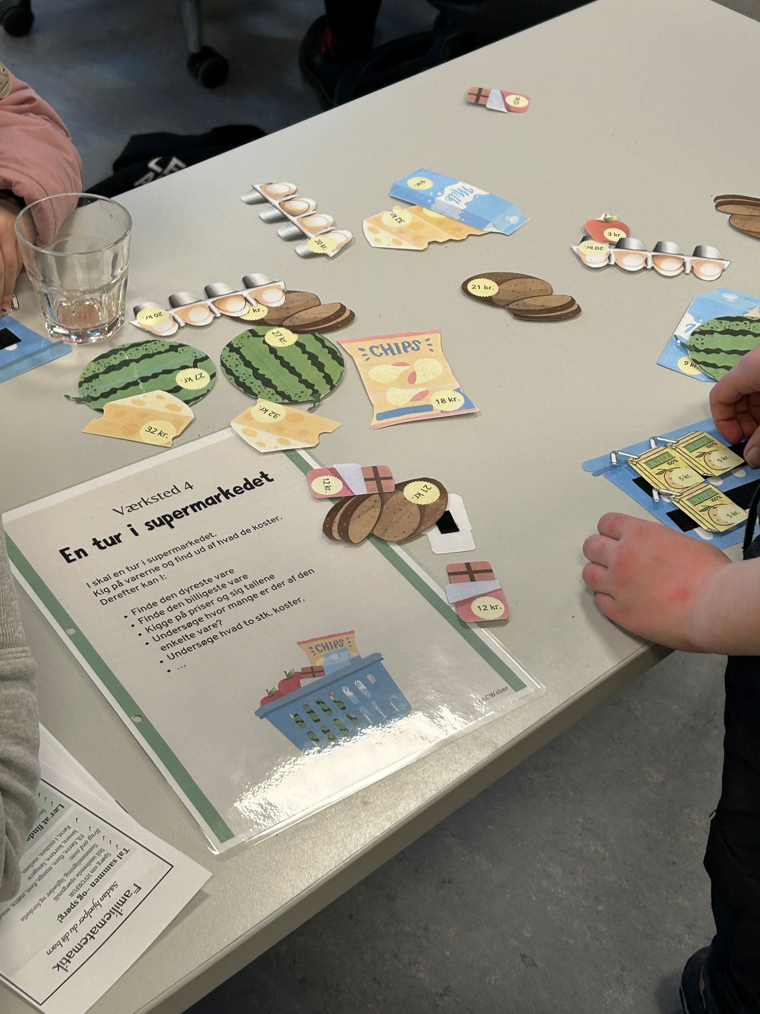 Til workshoppen arbejdede eleverne og deres forældre side om side med små opgaver, spil og aktiviteter, der viste, hvordan matematik gemmer sig i helt almindelige hverdagssituationer – fra indkøb og madlavning til spil ved køkkenbordet.