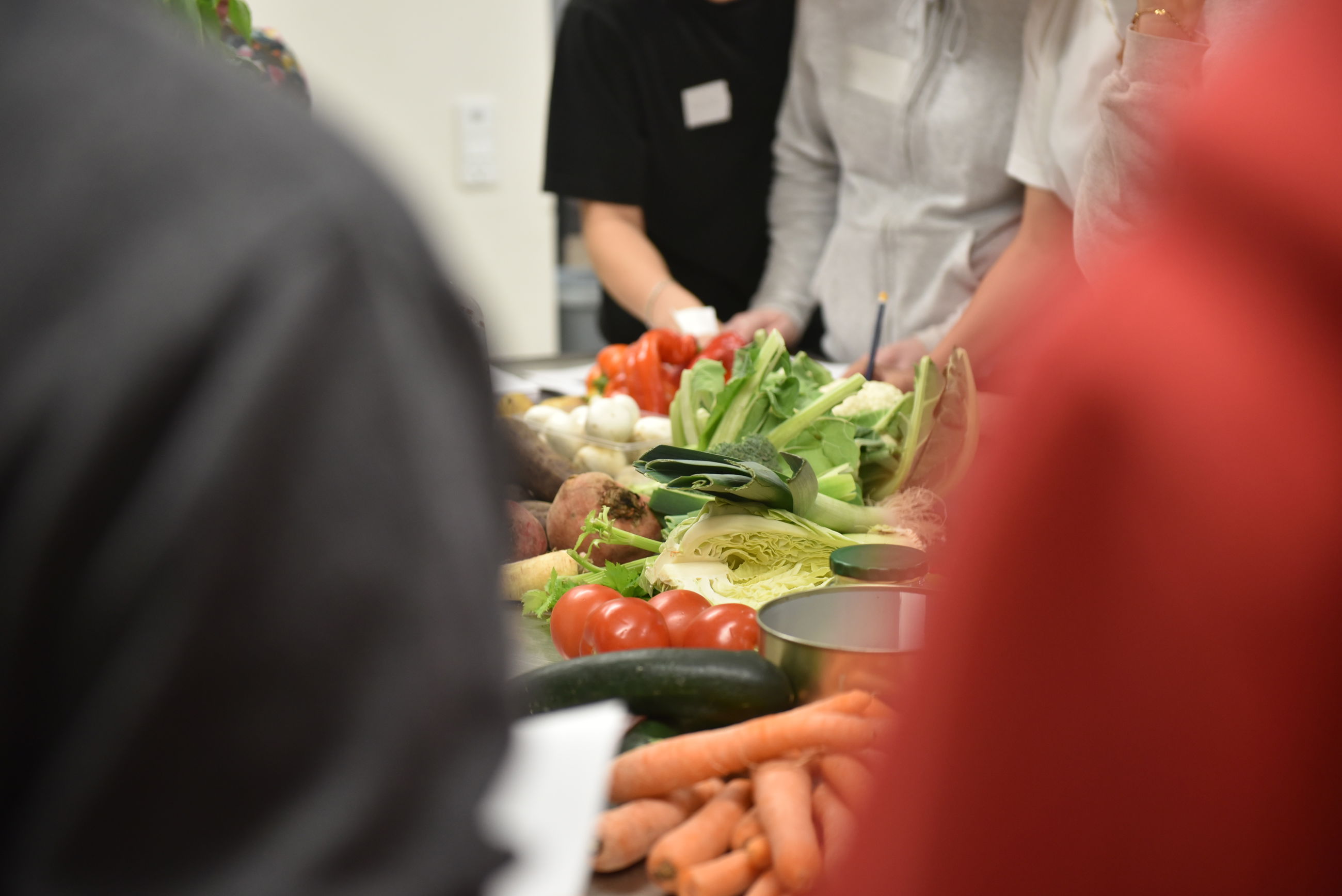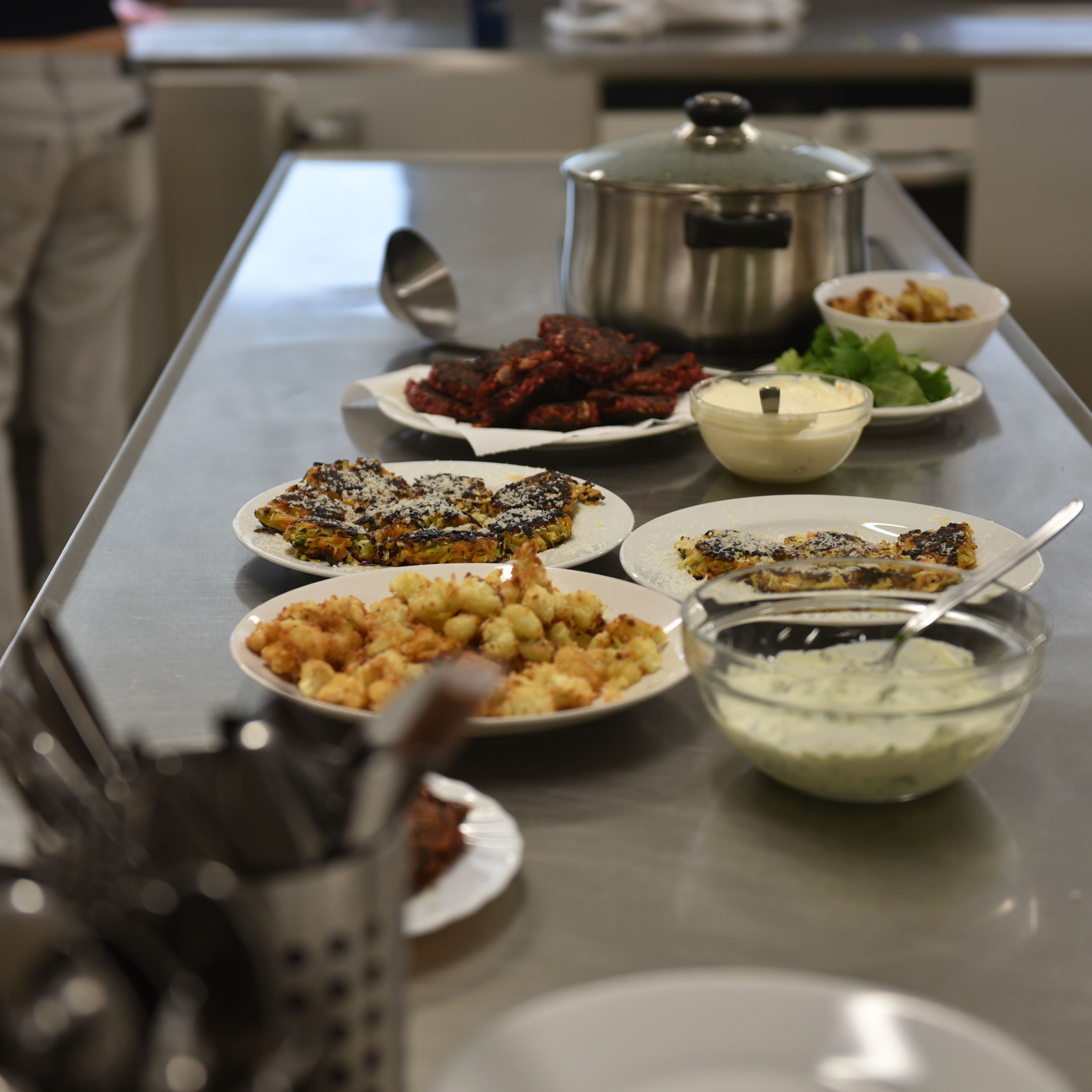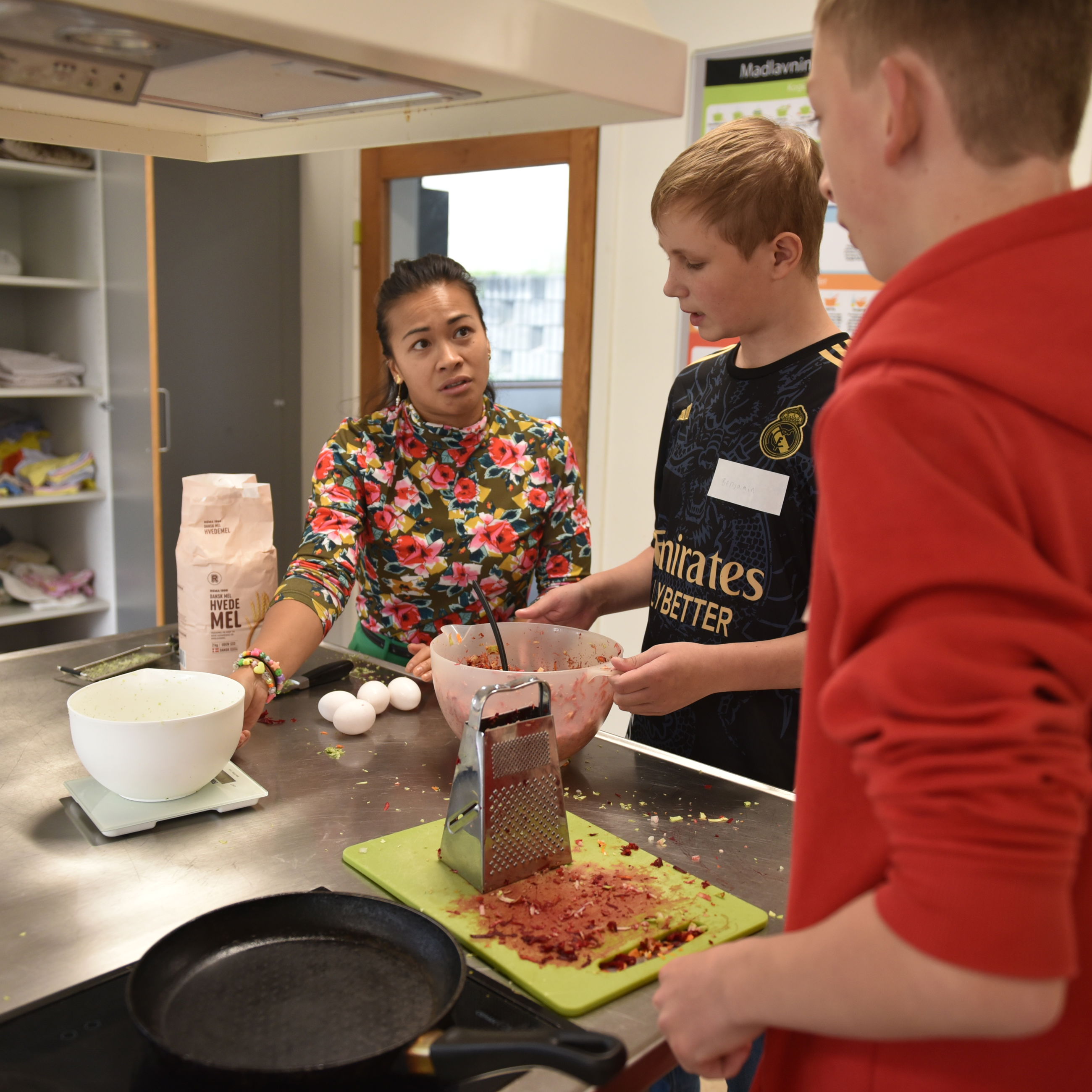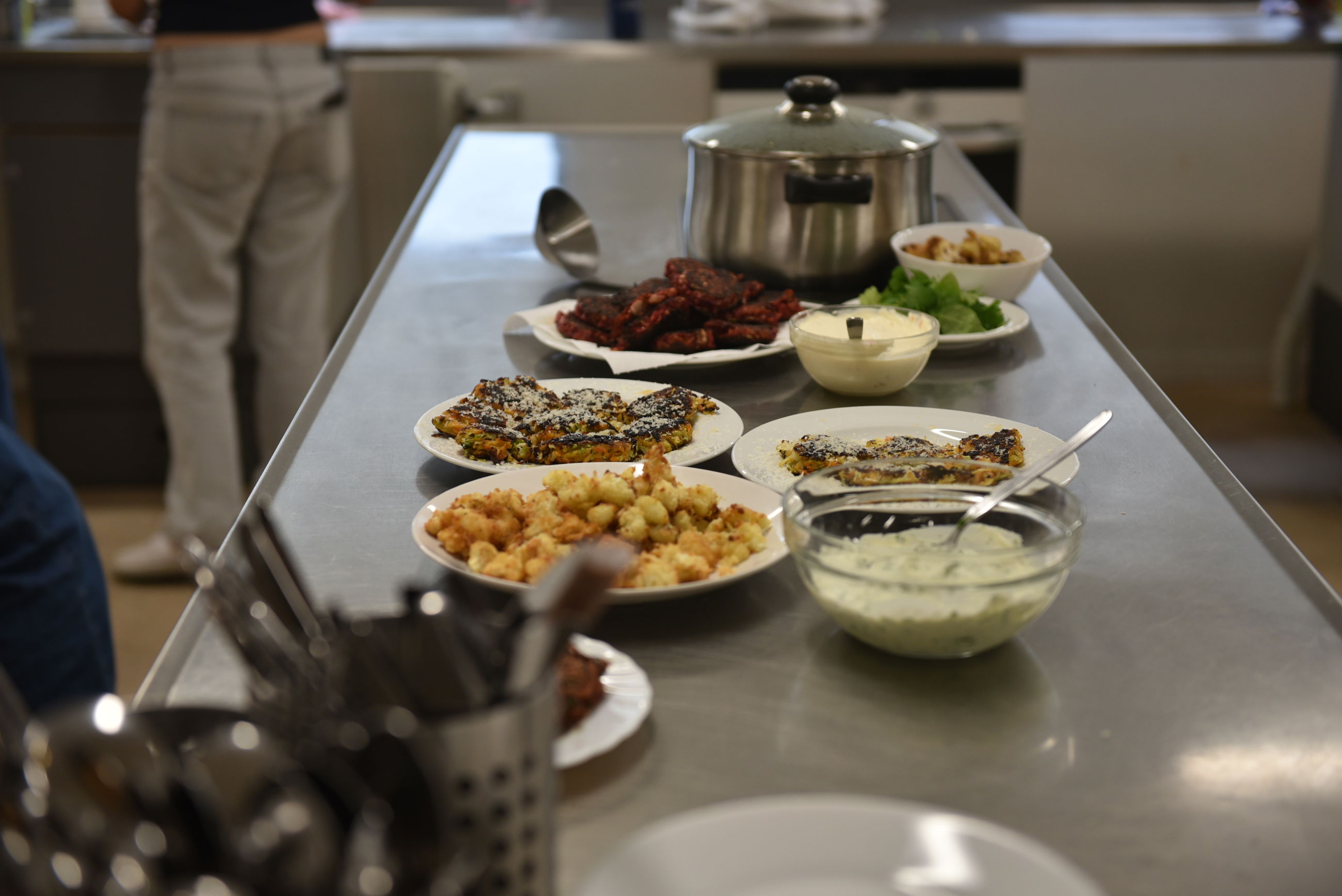 Eleverne blev først præsenteret for et væld af grøntsager, hvor de blev bedt om at vælge tre forskellige, som de skulle basere en ret på. Herefter skulle de finde en opskrift og selv lave maden. Hos venindeparret Maja Alstrup Clausen og Lejla Bender fra 8.A faldt valget på blomkålspopcorn og kartoffelrösti med dip lavet helt fra bunden.