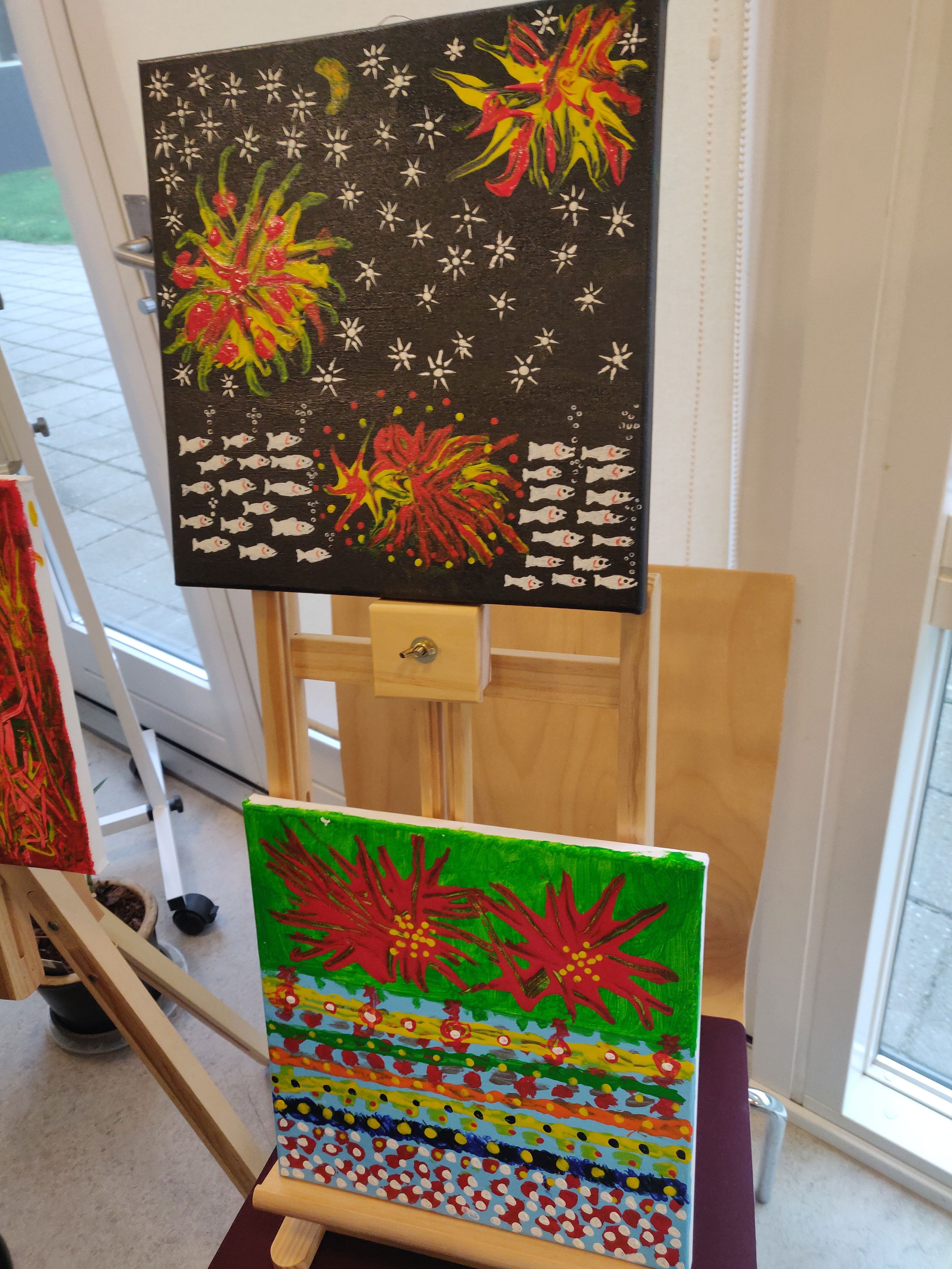 En af deltagerne, som tidligere har arbejdet som kunstner, viste også nye værker frem – skabt efter flere års pause fra maleriet.