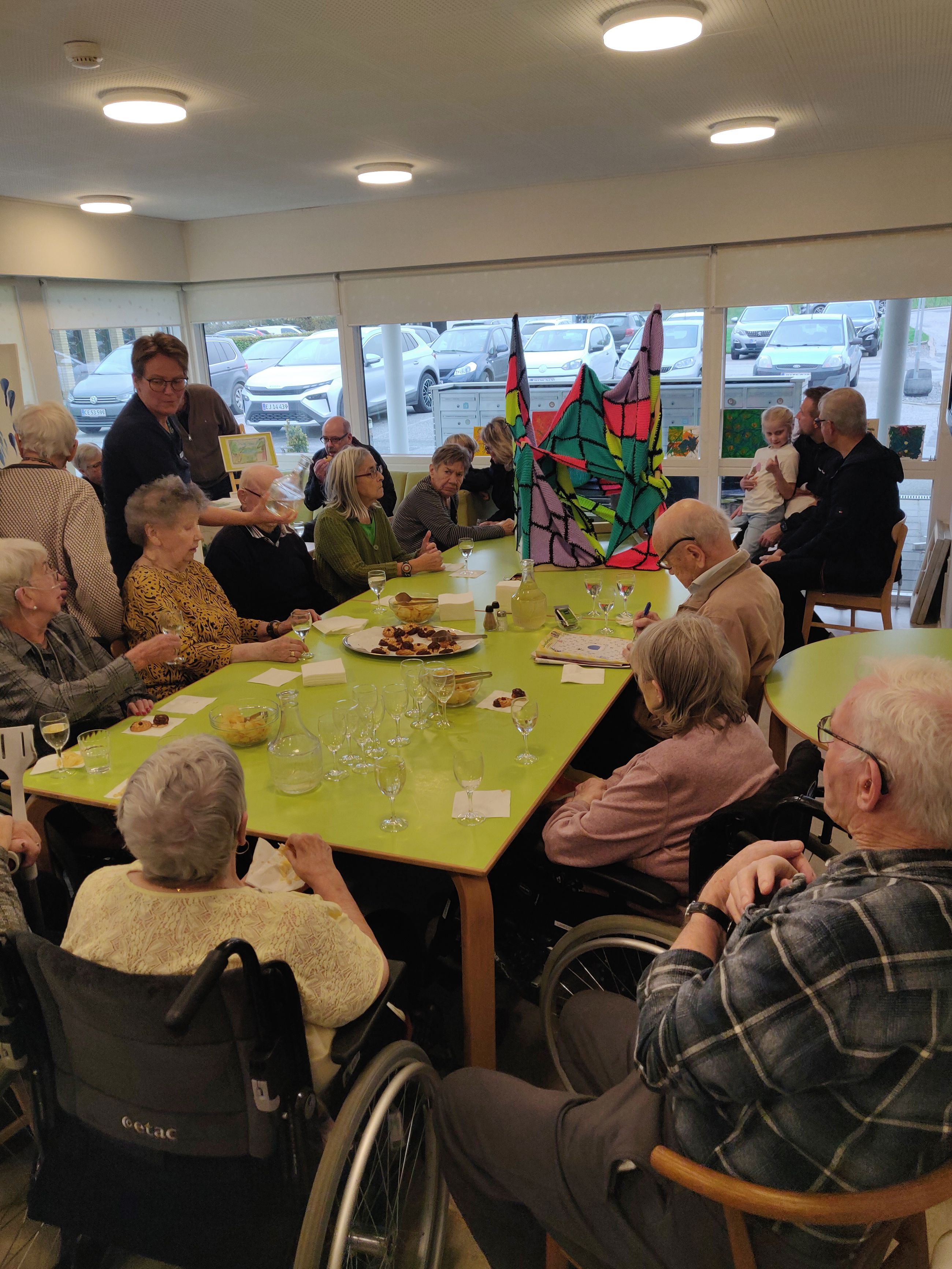 Gæsterne kunne opleve farverige malerier og et stort strikket vægtæppe, som beboerne har skabt i fællesskab. Projektet handler nemlig ikke bare handlet om kunst, men også om mod, fællesskab og glæden ved at skabe noget sammen.