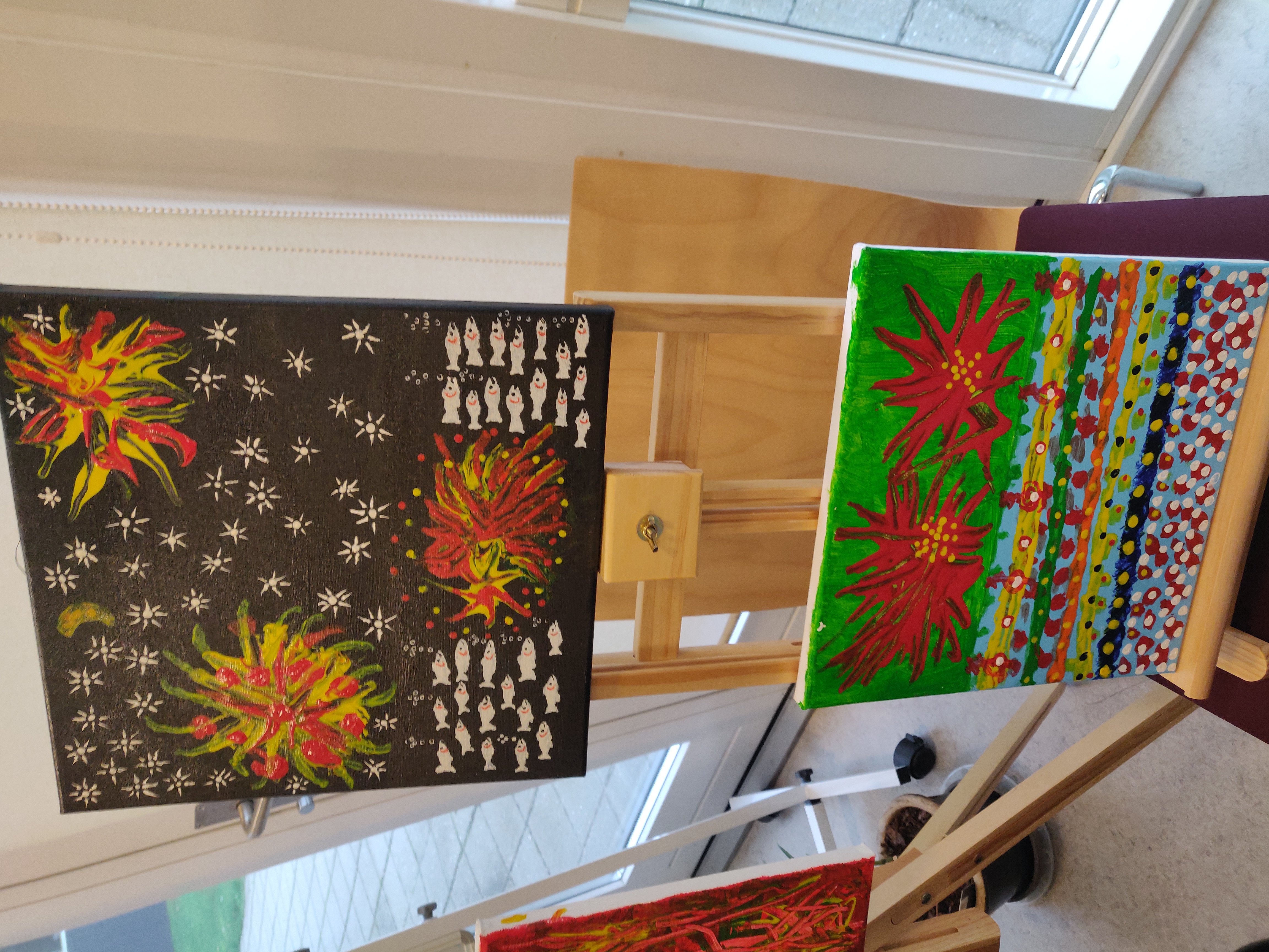 En af deltagerne, som tidligere har arbejdet som kunstner, viste også nye værker frem – skabt efter flere års pause fra maleriet.