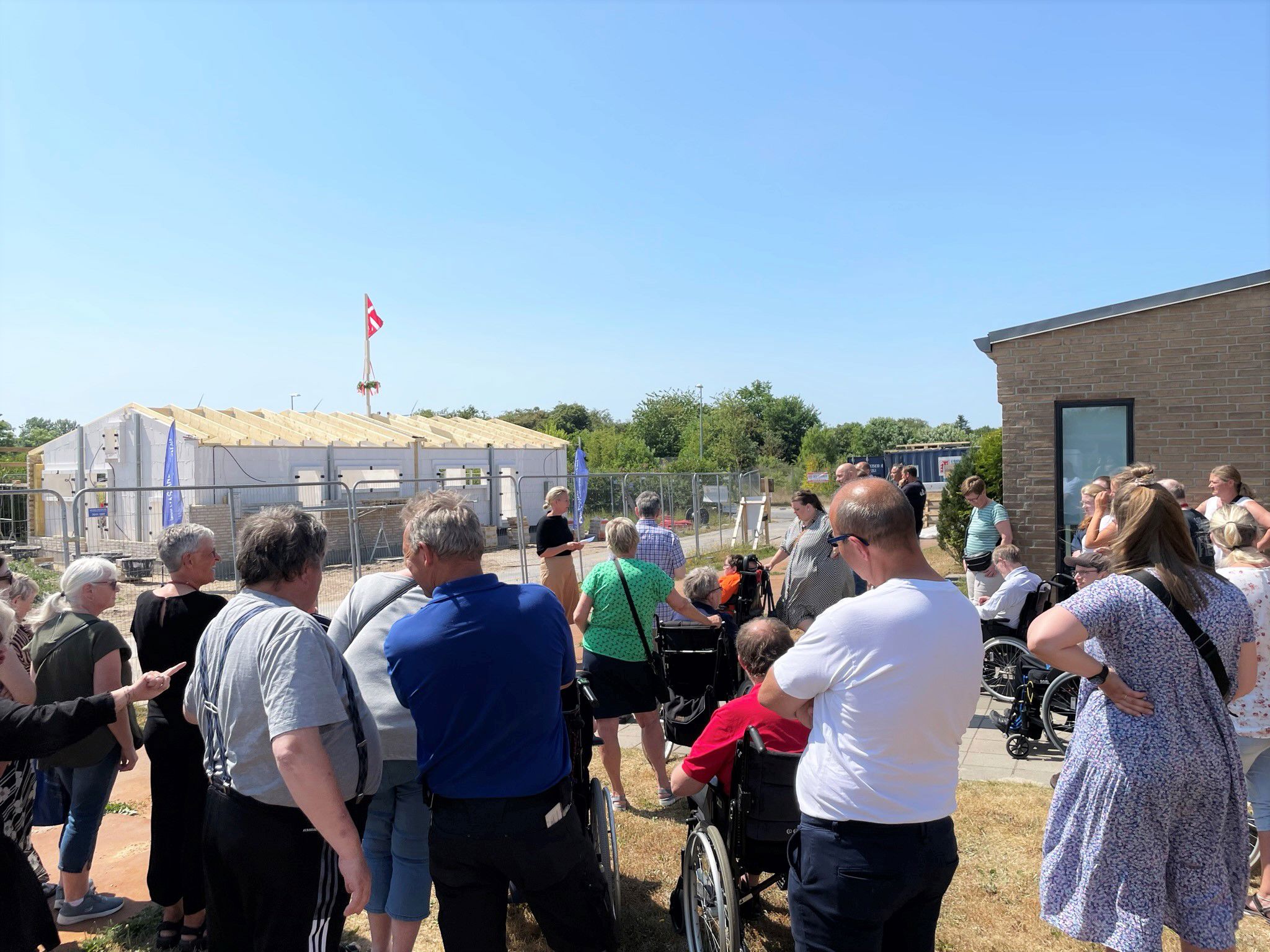 Vejret var skønt og stemningen god, da entreprenør, håndværkere, medarbejdere, ledere og beboere på Neptunvej var mødt op for at fejre rejsegilde.