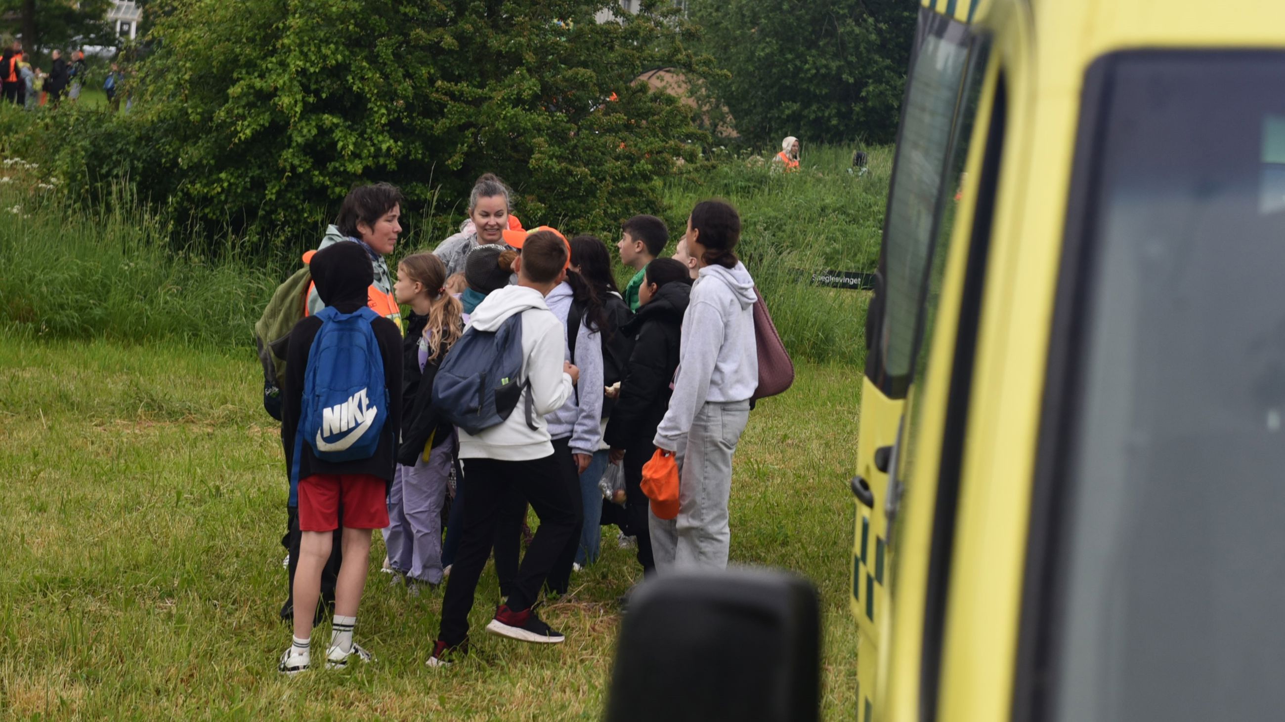 Kort efter de mange børn var ankommet til det store grønne område i nordbyen var der nemlig blå blink og høje sirener i luften.