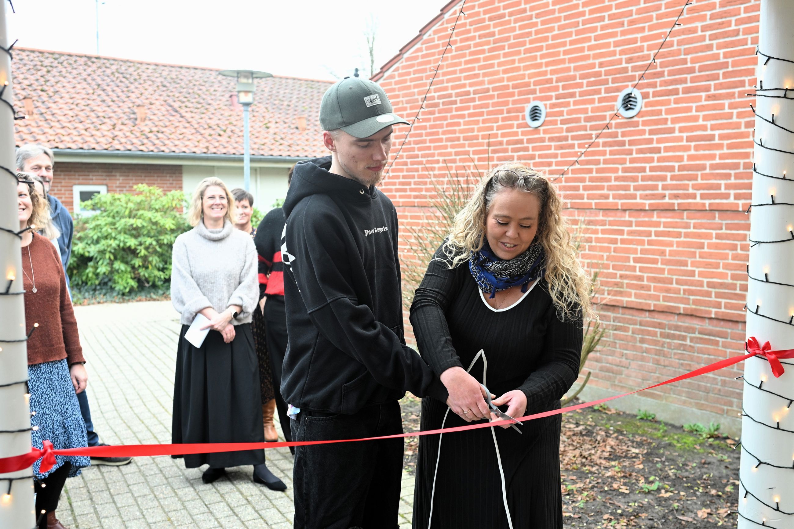 "Stort tillykke til de nye beboere med jeres nye hjem. Vi står nu med seks moderne hjem, og vi har ønsket at skabe nogle trygge rammer, hvor I kan trives, vokse og være jer selv. Mange tak til alle, som har været med til at gøre det muligt: byggelederne, håndværkerne og de kommunale medarbejdere," siger Rosa Yde Lykke, formand for Socialudvalget, der sørgede for at klippe snoren sammen med en af de nye beboere.