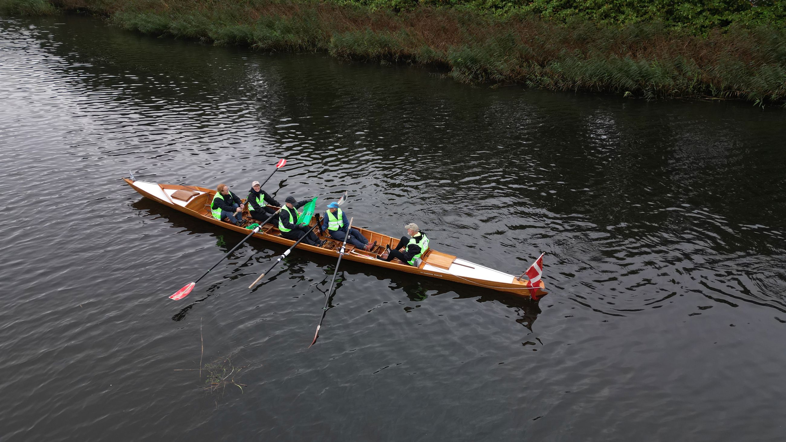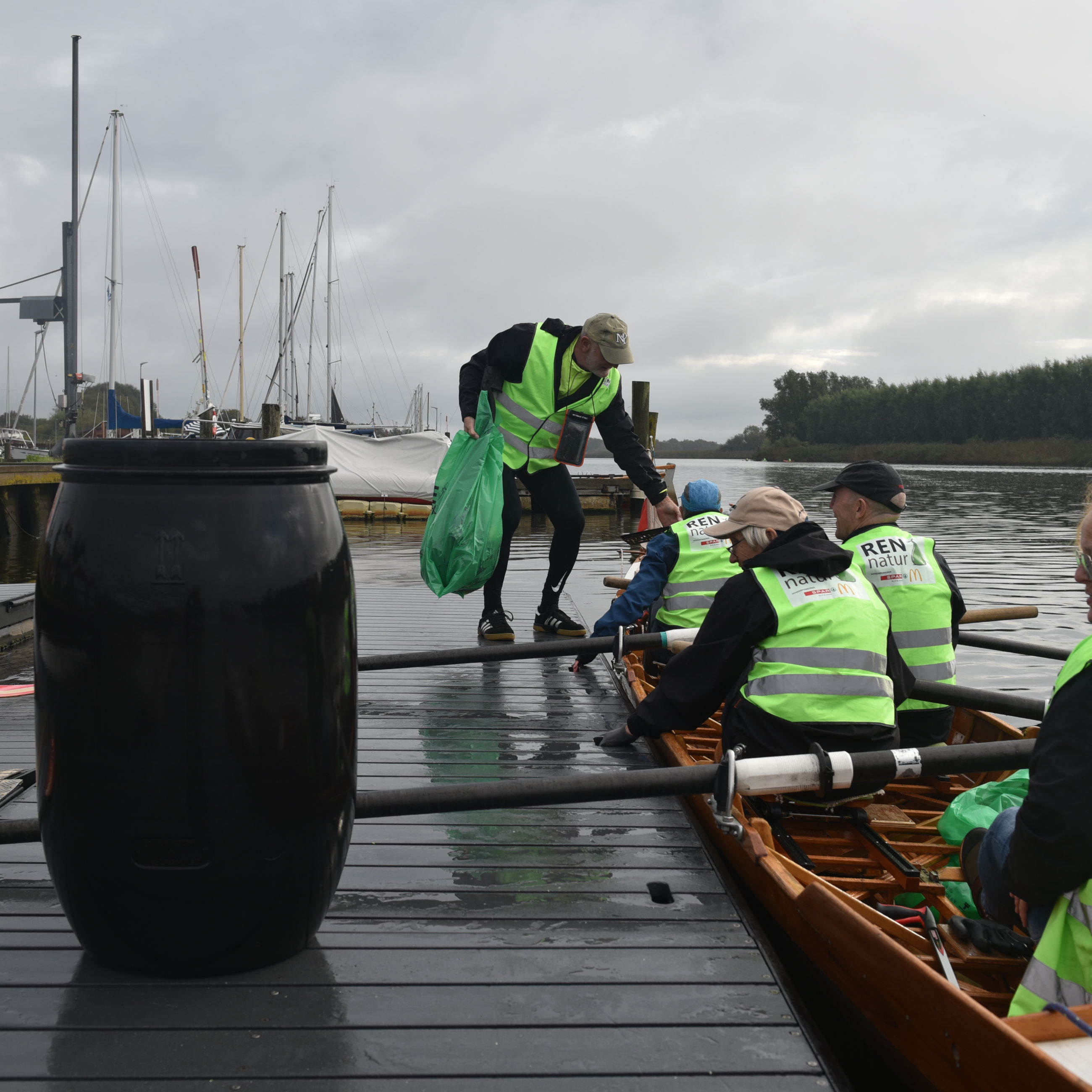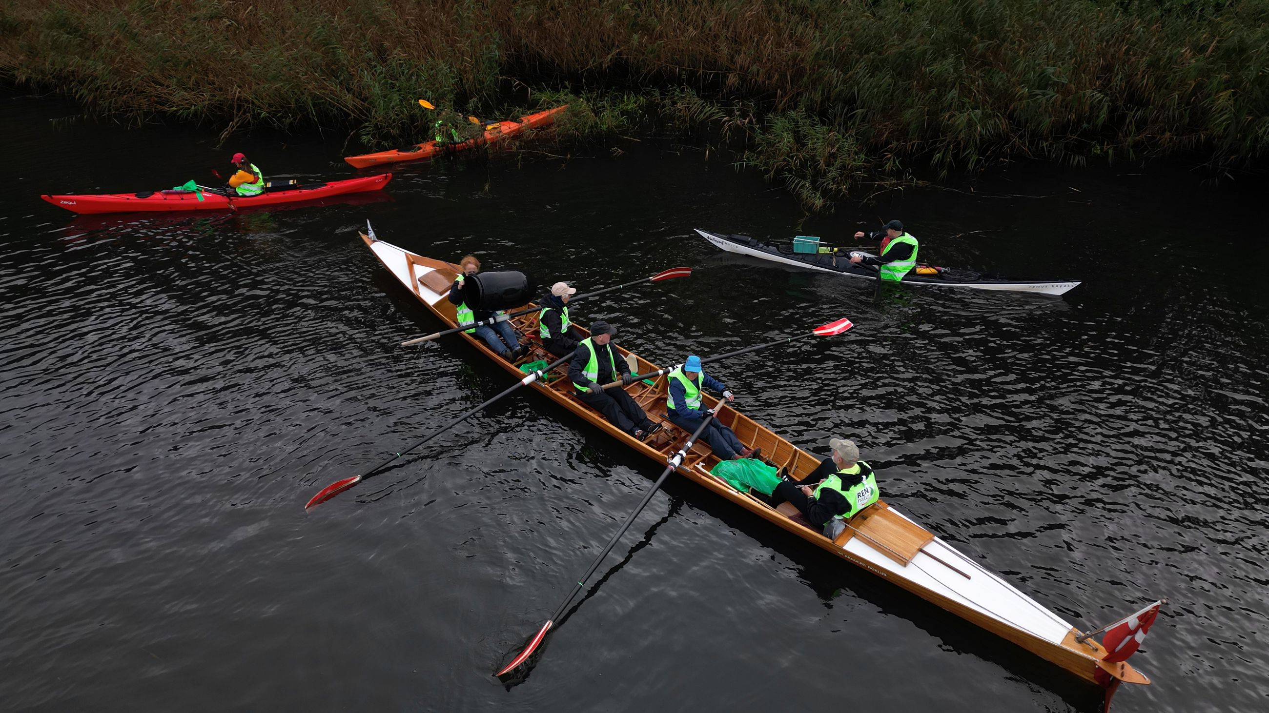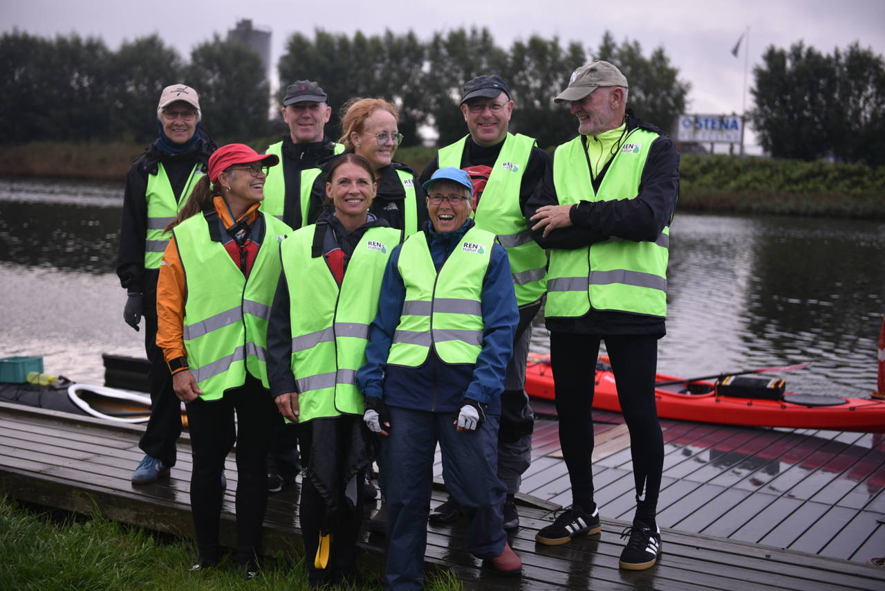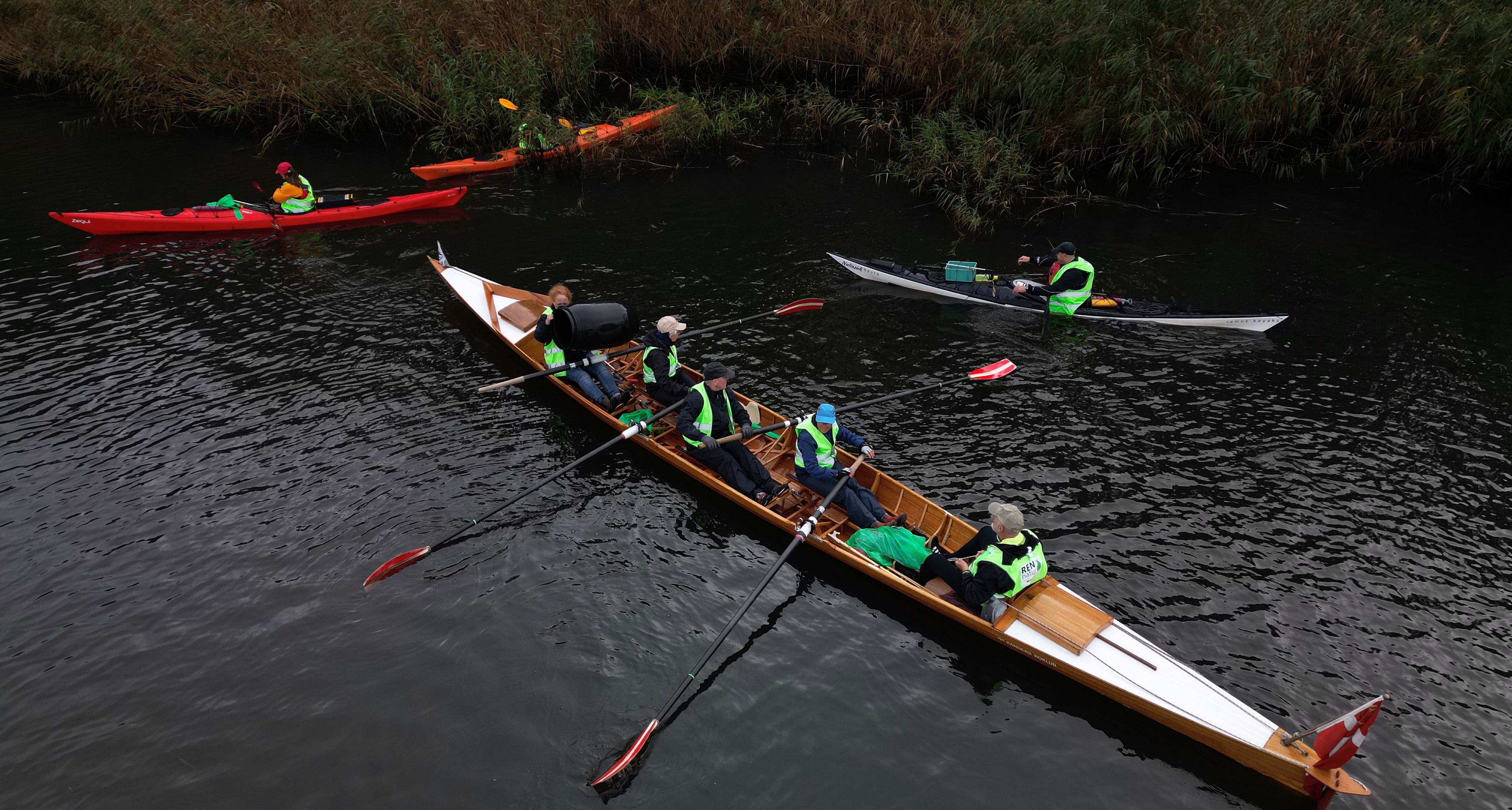 Dagens tur på Gudenåen krævede lidt mere og andet udstyr, end roerne normalt har med om bord. Både affaldssække, snappere og handsker var pakket, og roerne selv havde iført sig gule veste med teksten 'Ren Natur' på ryggen.