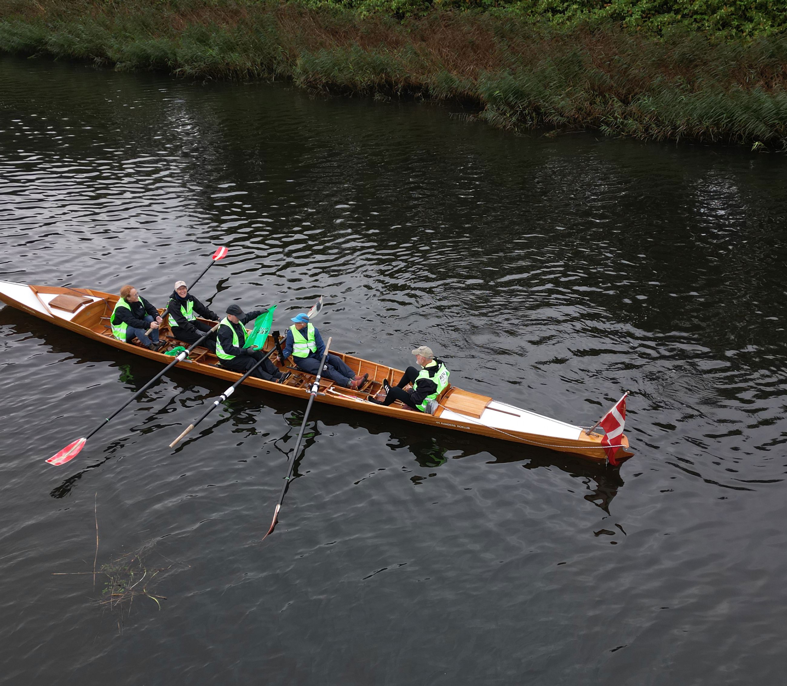 Randers Roklub trodsede regnvejret for at samle affald i Gudenåens siv. I forbindelse med indsatsen Ren Natur, havde Roklubben fået til opgave at samle affald på en strækning mellem Randers og Langå, til gengæld får de penge til klubkassen.