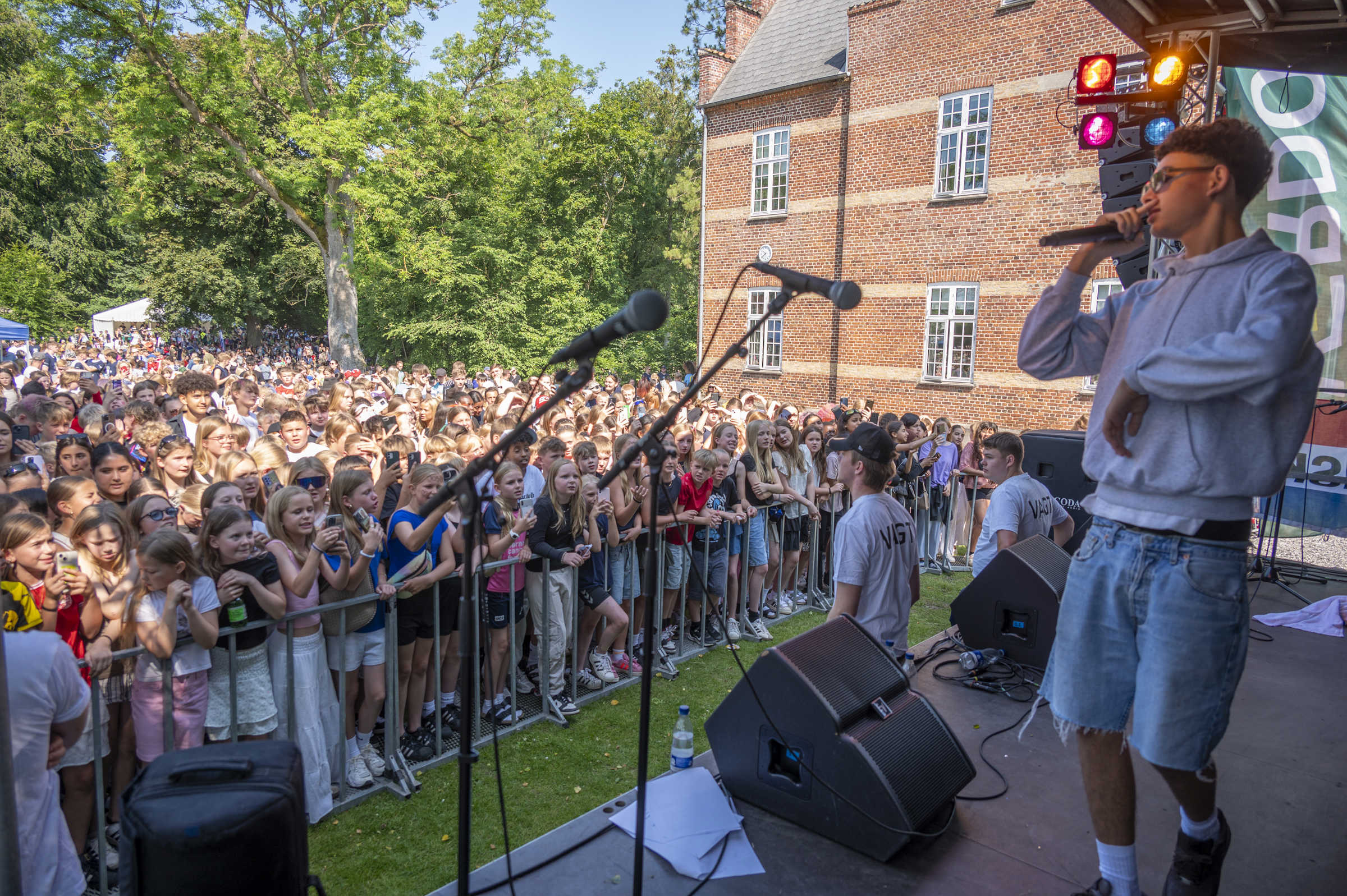 Igen i år kunne skolen samle flere tusinde af byens skoleelever til en fantastisk dag under sommersolen. Siden 1992 har Oust Møllerock sendt byens skoleelever fra 0. – 5. klasse afsted på sommerferie med et brag af børnefest. Og i år var selvfølgelig ingen undtagelse. Festlighederne fandt sted i de flotte omgivelser i skolens park, hvor der blev danset og skrålet med på musikken. Udover de mange musikalske indslag, bød dagen også på forskellige aktiviteter og boder med godt til ganen og maven. Flaget blev hejst og vejrguderne sørgede for fantastisk solskin hele dagen.