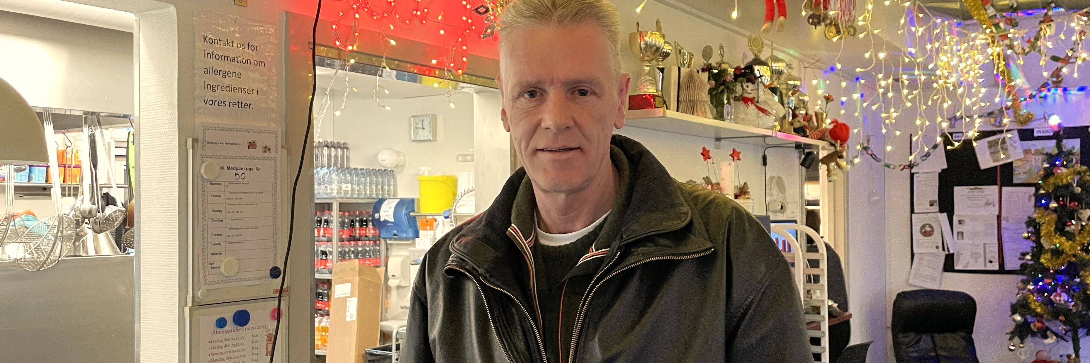 "Jeg vil gerne være her og holde åbent for dem, som bor her og for dem, som kommer og banker på. Det er nogle gode mennesker, som kommer her, og jeg kender mange af dem rigtig godt. Og det er hyggeligt at fejre jul her frem for at sidde derhjemme og kukkelure," siger Peter Simon på 54 år.