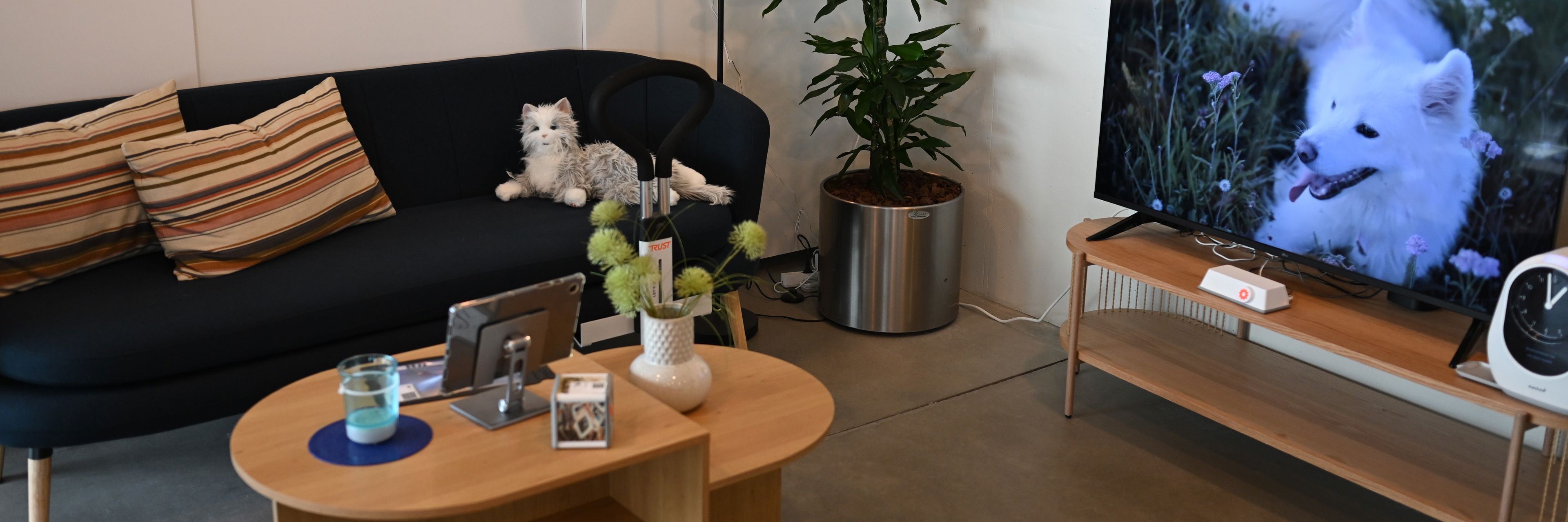 Messestanden er lavet som et spiseområde og et hvileområde, hvor besøgende kan slå sig ned, og mens de tager et hvil blive klogere på en række teknologier og hjælpemidler. Du kan blandet andet komme og prøve VR-briller, der skal øge motivationen for at motionere, opleve skærmbesøg, smarte spiseredskaber samt en memory cube, der kan sætte gang i samtaler om det levede liv.