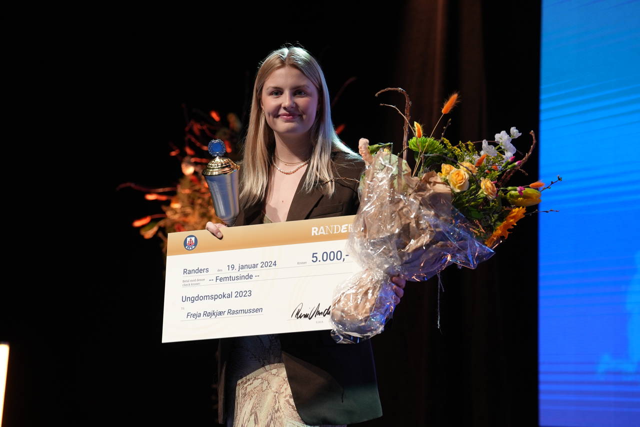 Også ungdomstræneren hos Swimteam Neptun, Freja Røjkjær Rasmussen, kunne glæde sig over at modtage hæder. Hun er et stort trænertalent på 19 år, der startede som hjælpeinstruktør i 2017 - kun 12 år gammel. Frejas begejstring for vand, og hendes altid imødekommende sind bragte hende niveauet videre til rollen som instruktør. I dag leder hun flere svømmeskolehold. Den indsats blev belønnet med Ungdomspokalen, der uddeles af SIKR -Samvirkende Idrætsklubber i Randers. Prisen belønner en ung træner eller leder i alderen 16 - 23 år, der gennem særlig høj kvalitet i trænergerningen har kunne tiltrække og fastholde ungdomsidrætsudøvere for sin klub. Med Ungdomspokalen følger også en check på 5000 kroner.