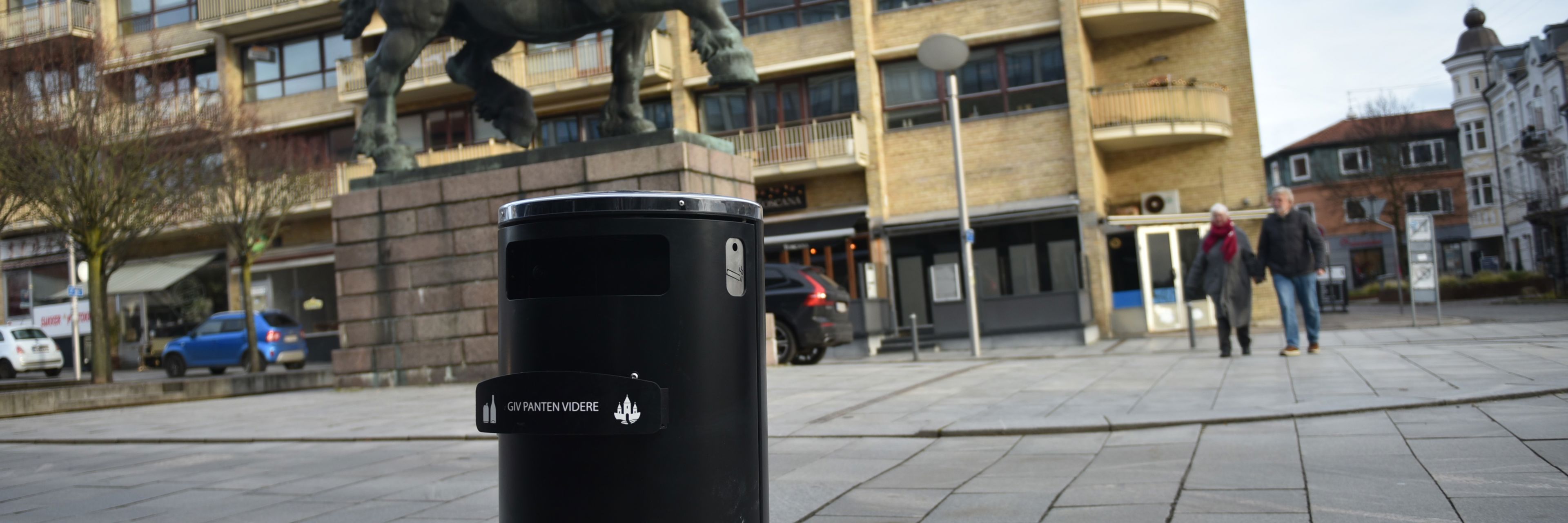 3 små skraldespande i stedet for en stor på Slotspladsen