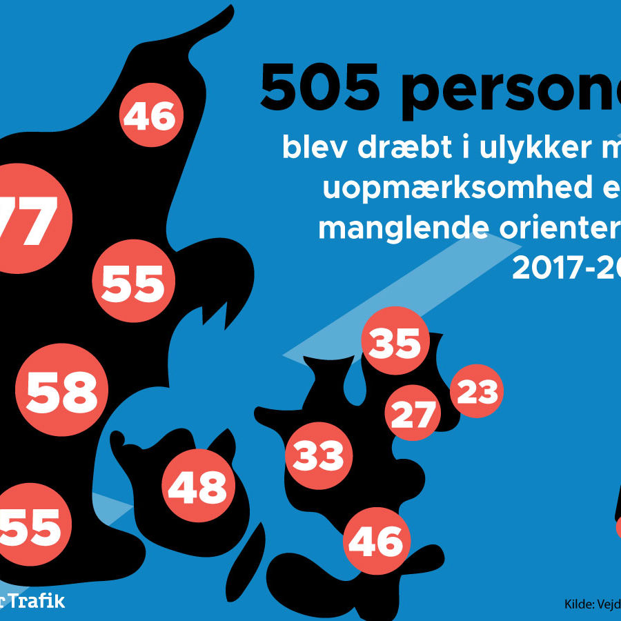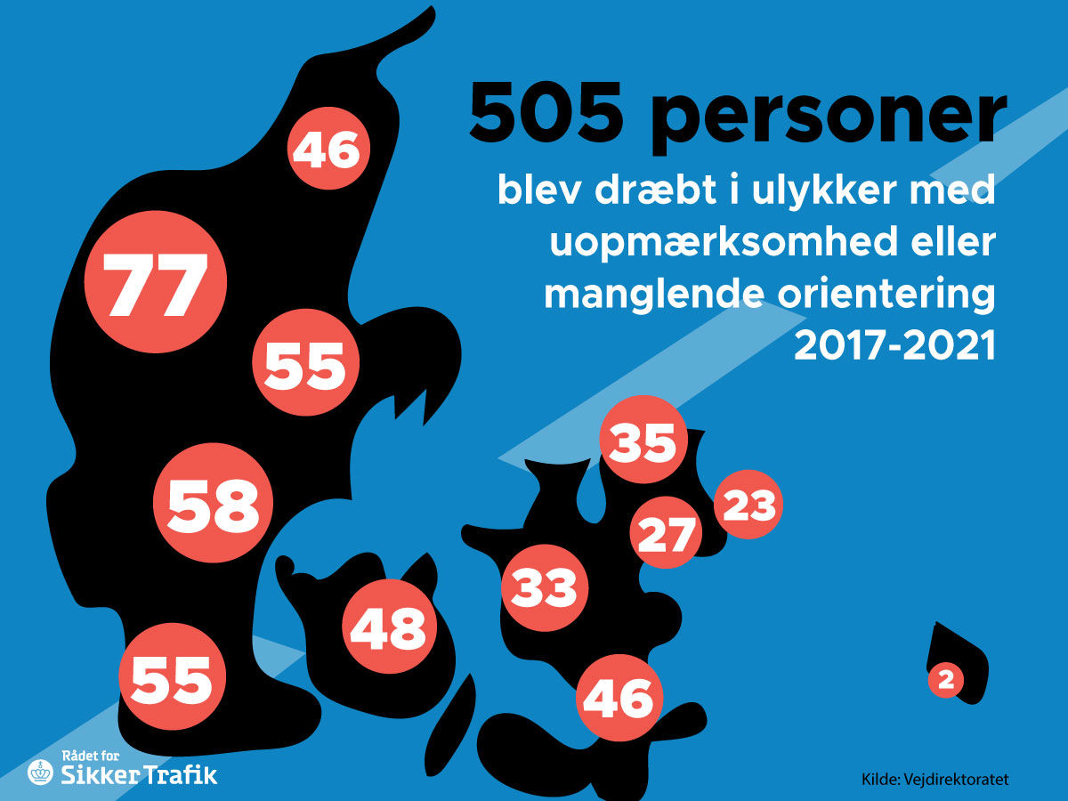 Når man ser på, hvorfor trafikulykkerne sker, så er uopmærksomhed og manglende orientering det helt store problem i seks ud af ti dødsulykker.