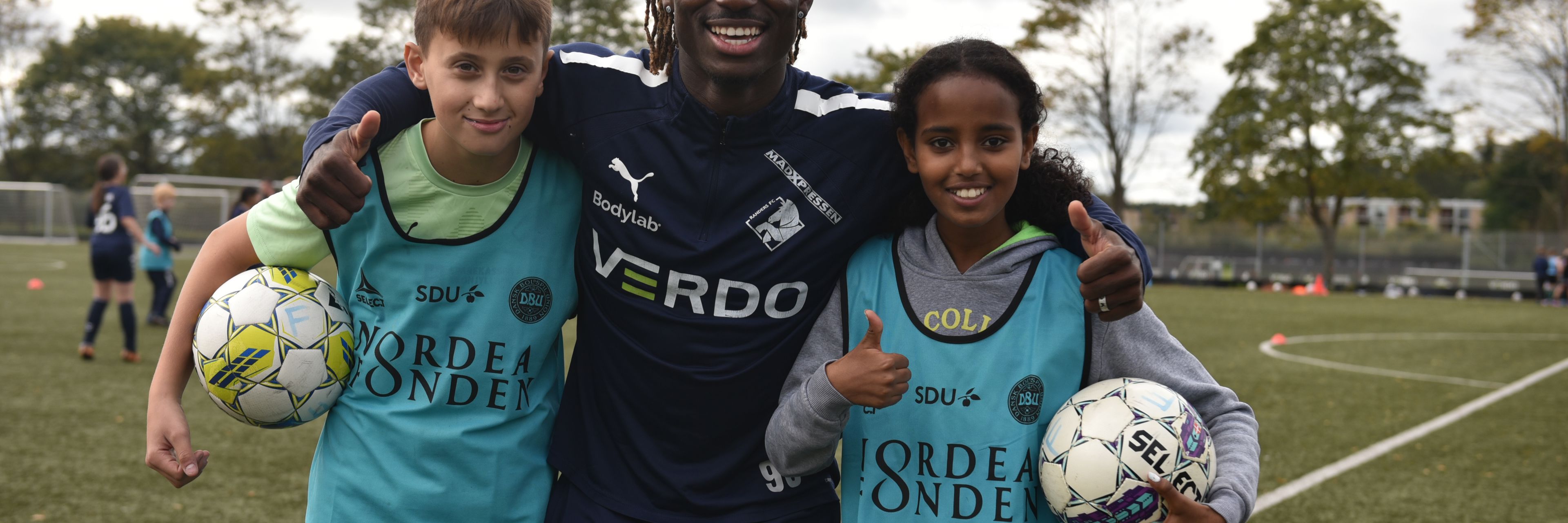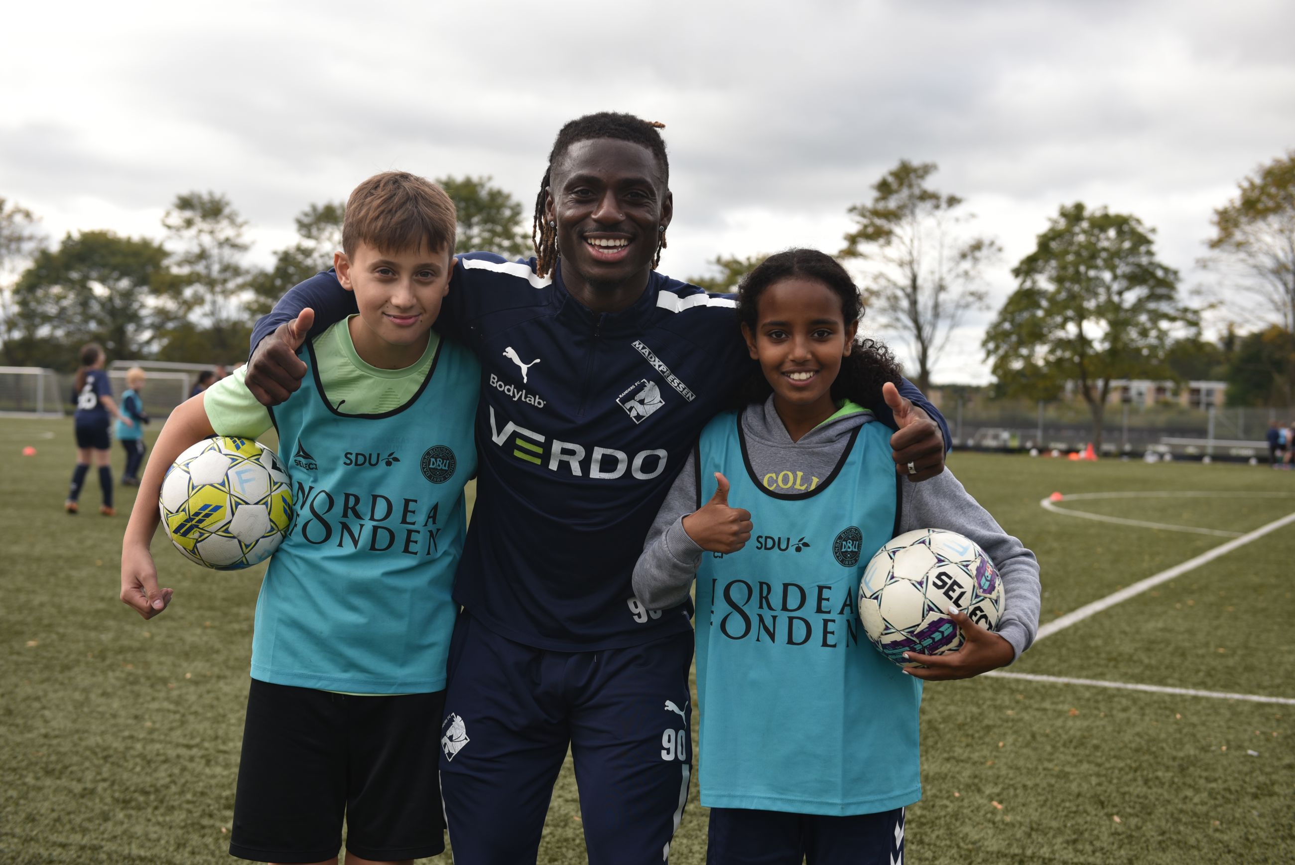 "Det er hyggeligt at være her. Vi får mulighed for at spille sammen med elever fra andre årgange og skoler, det synes jeg er fedt. Og så er det motiverende at spille med spillerne fra Randers FC," siger Yosan Simon.