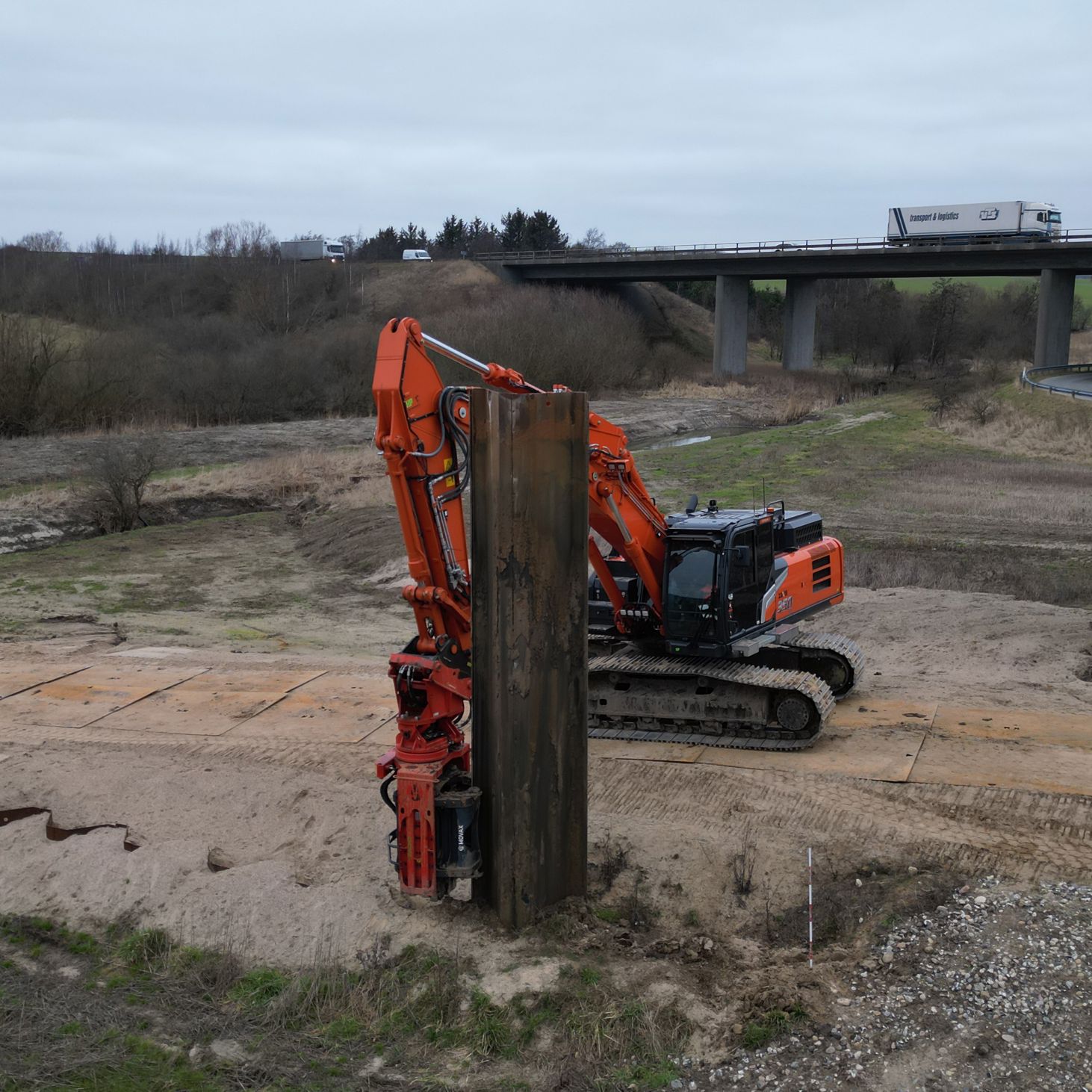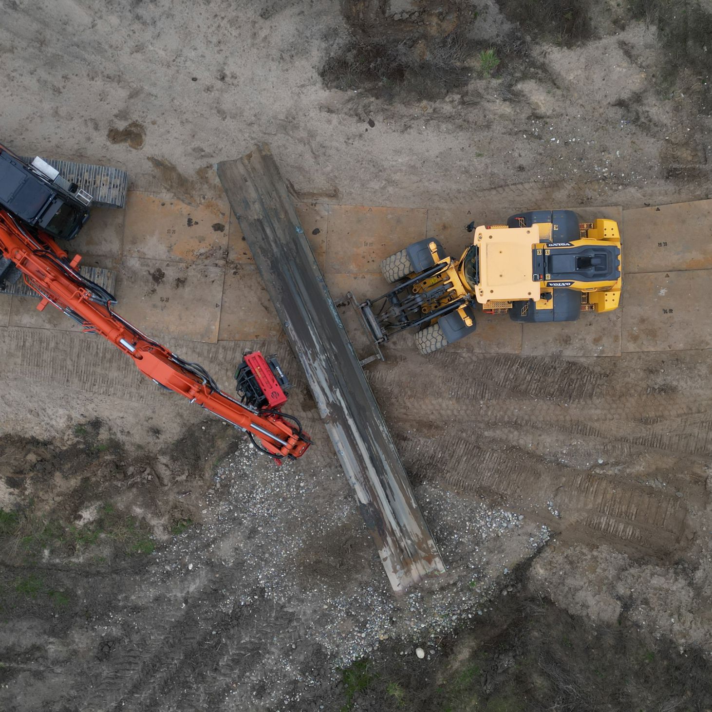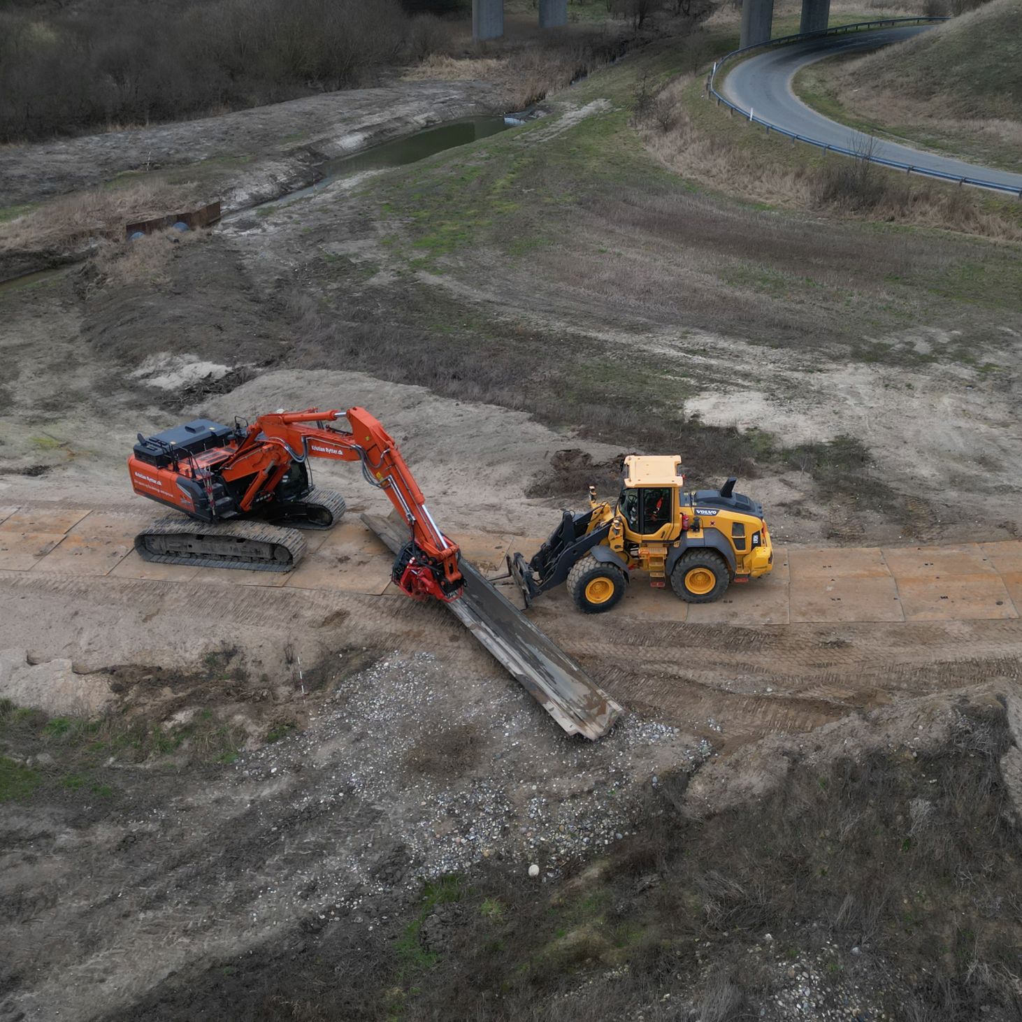 - De begynder med at klargøre området til kørsel, ved blandt andet at lægge køreplader ud