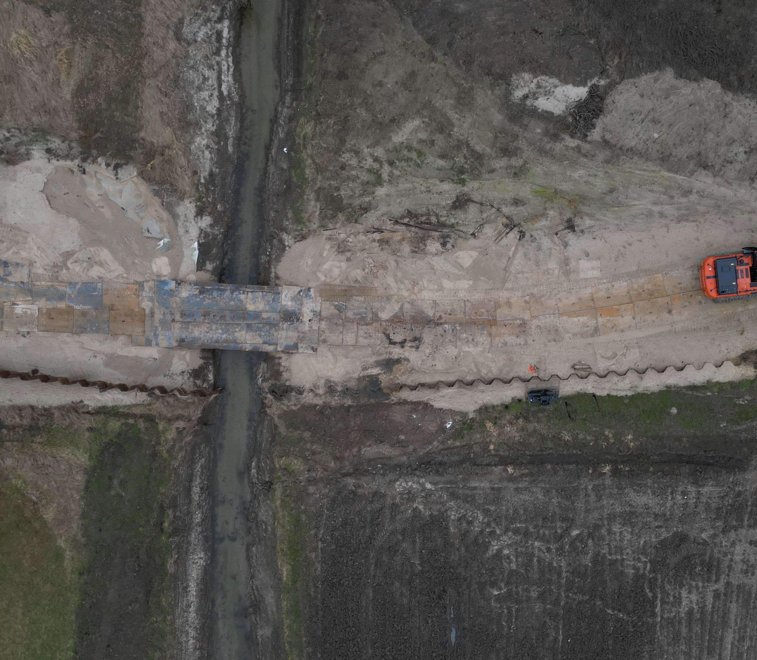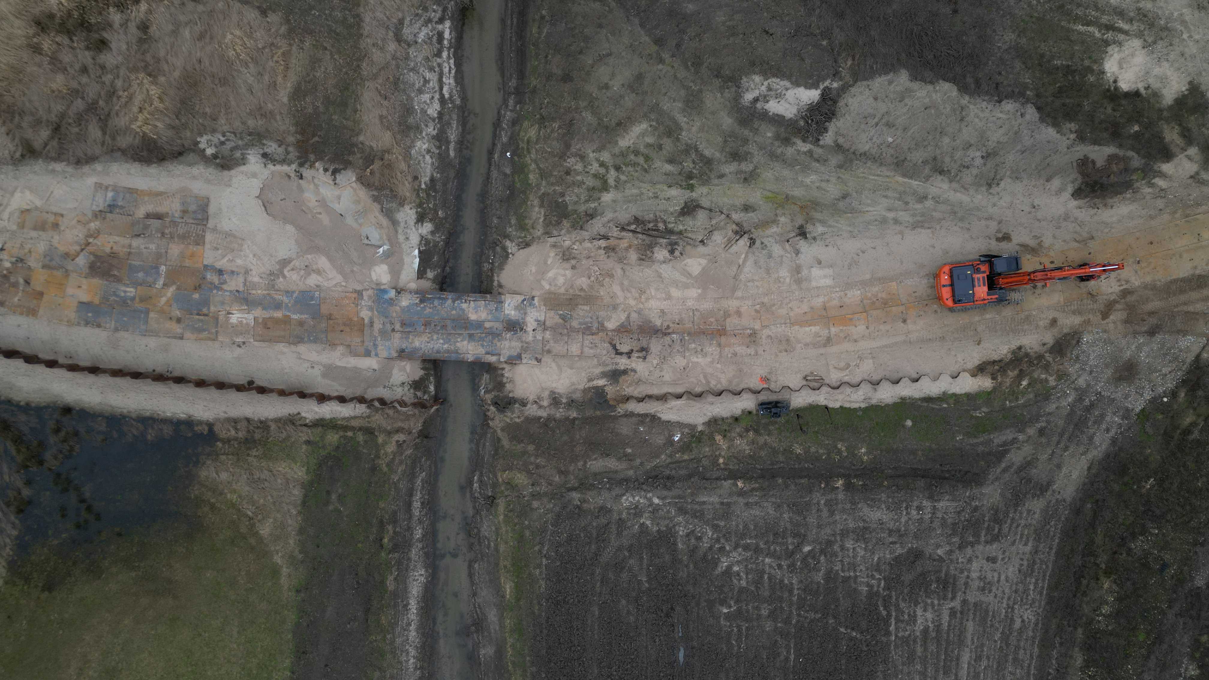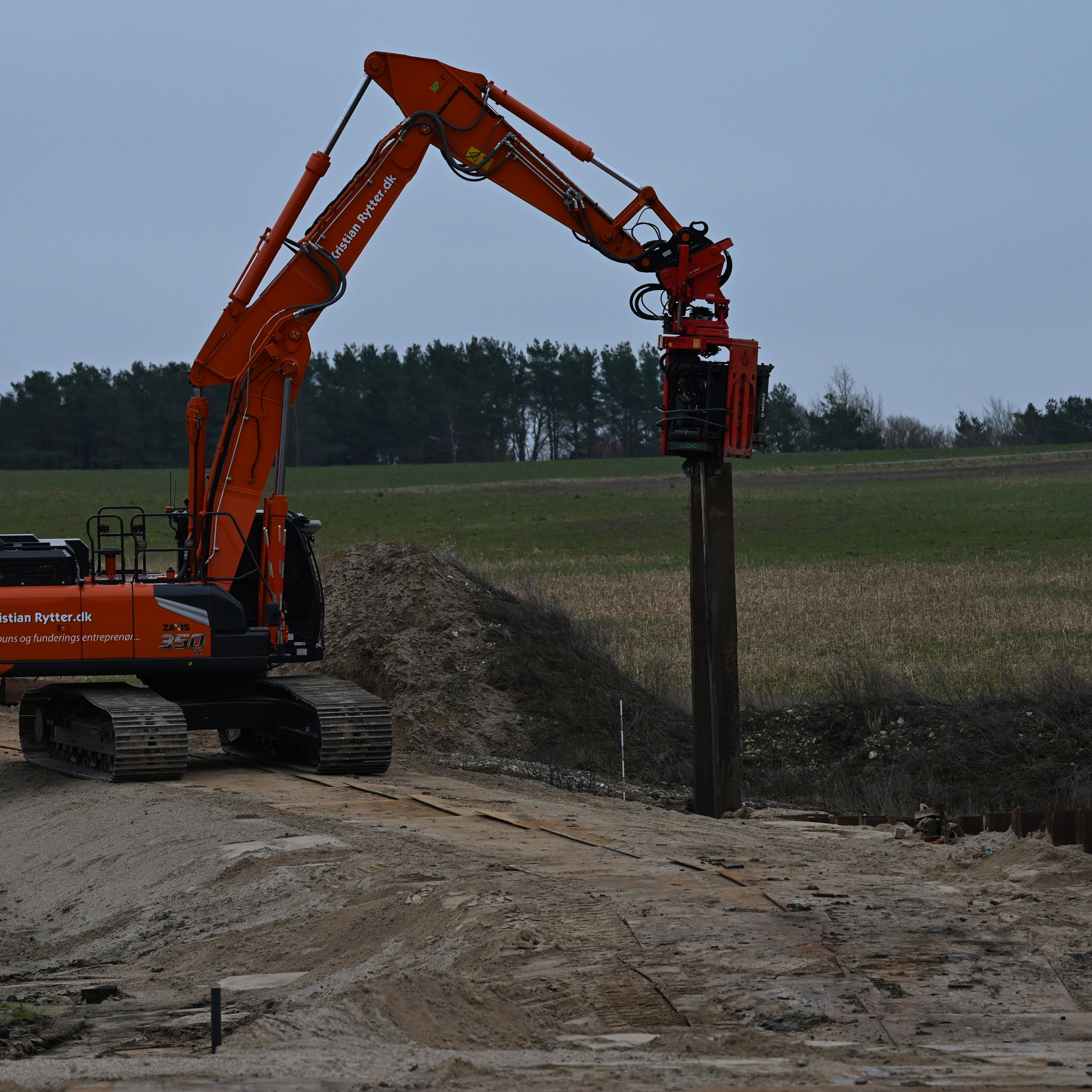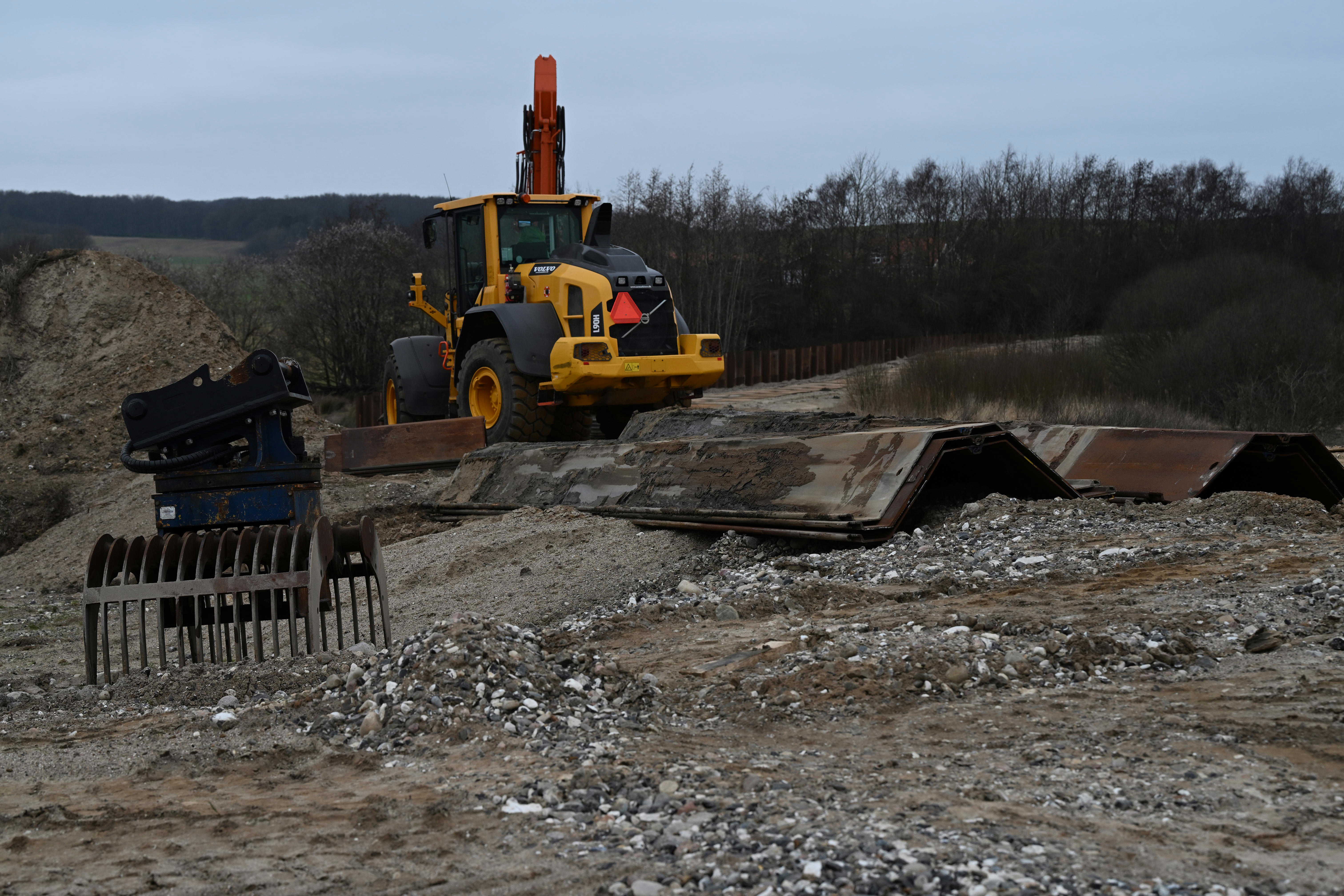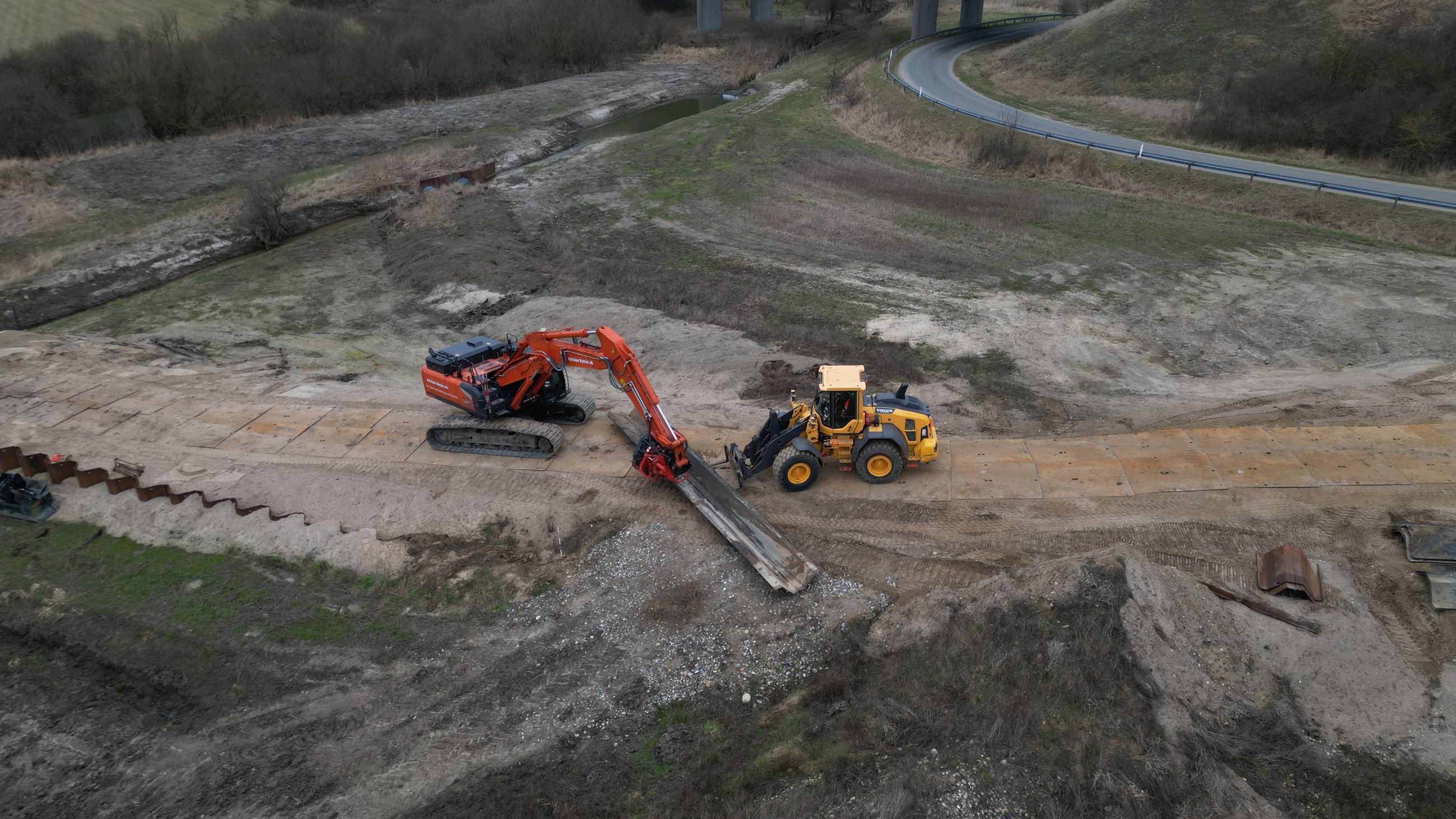 - De begynder med at klargøre området til kørsel, ved blandt andet at lægge køreplader ud