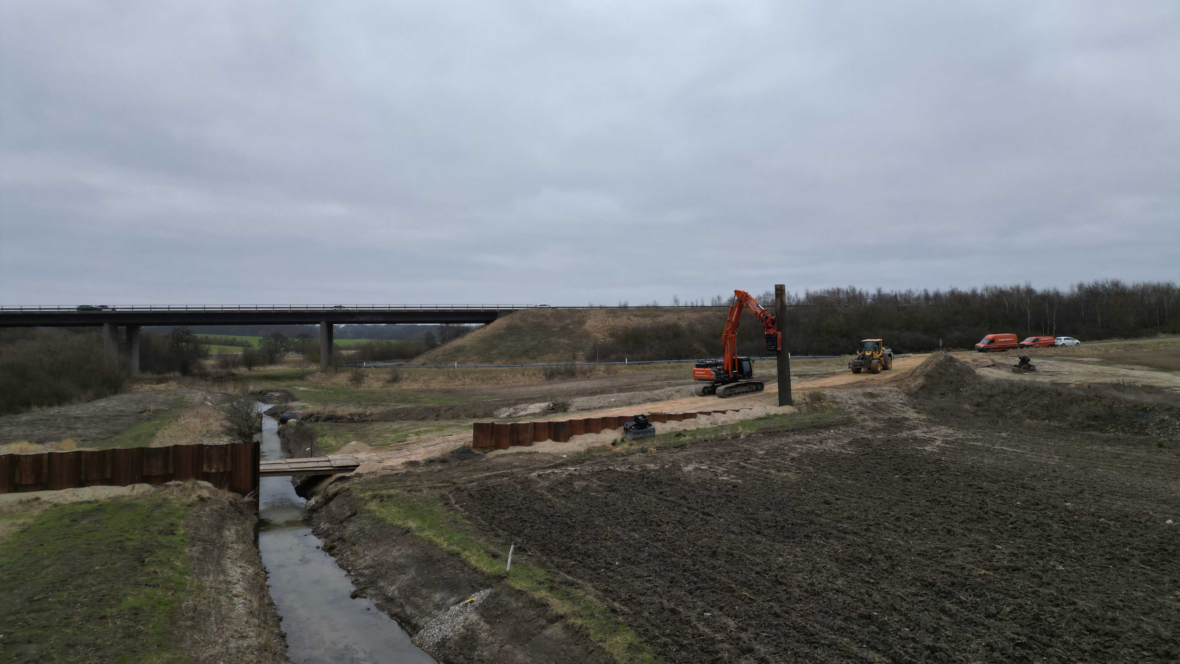Arbejdet går ud på at grave det spunsbyggeri (en beskyttende væg) fri, der er placeret i det sidste beskyttelsesbassin ved E45. Spunsbyggeriet har ikke længere nogen funktion, da åen er sluppet helt fri.