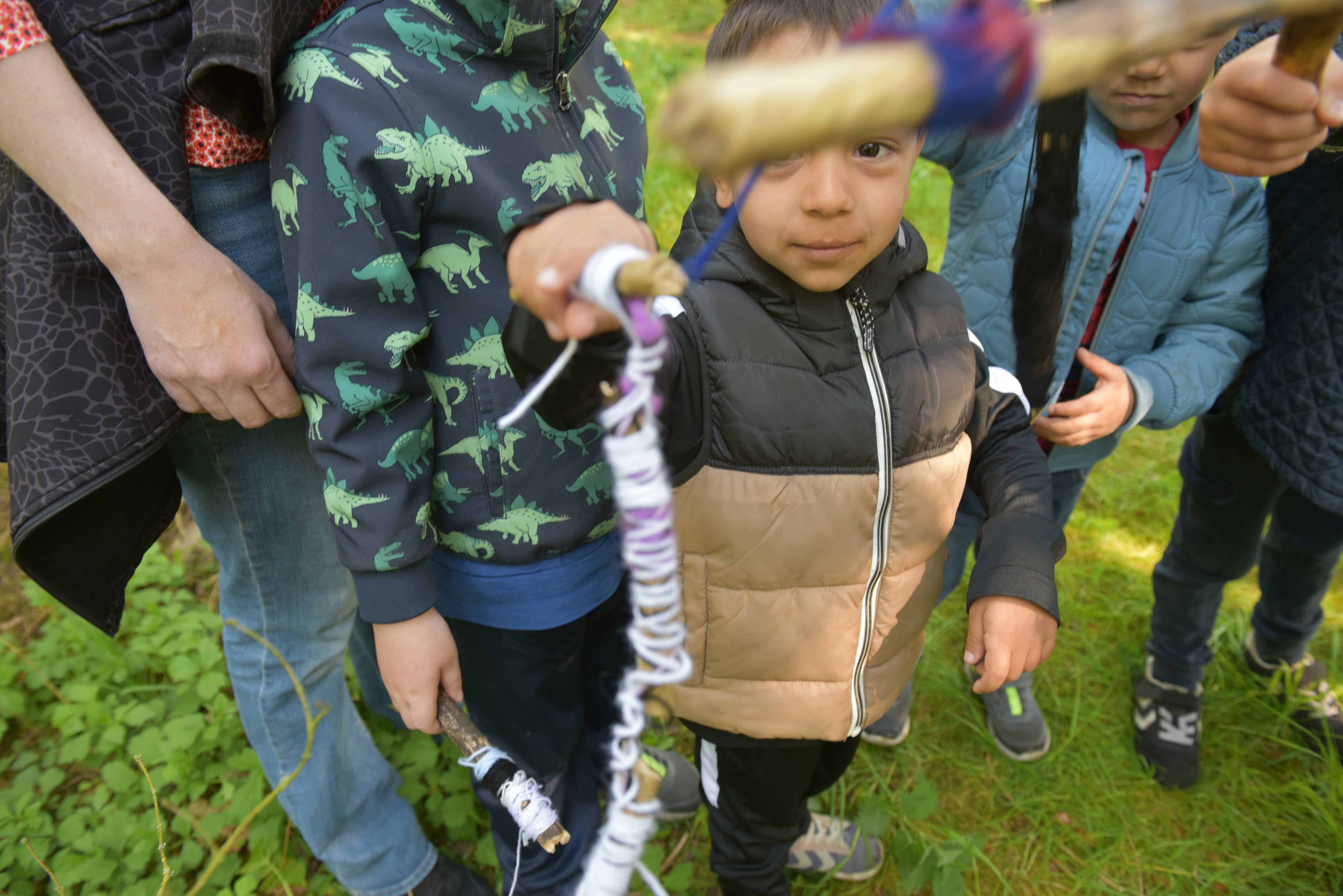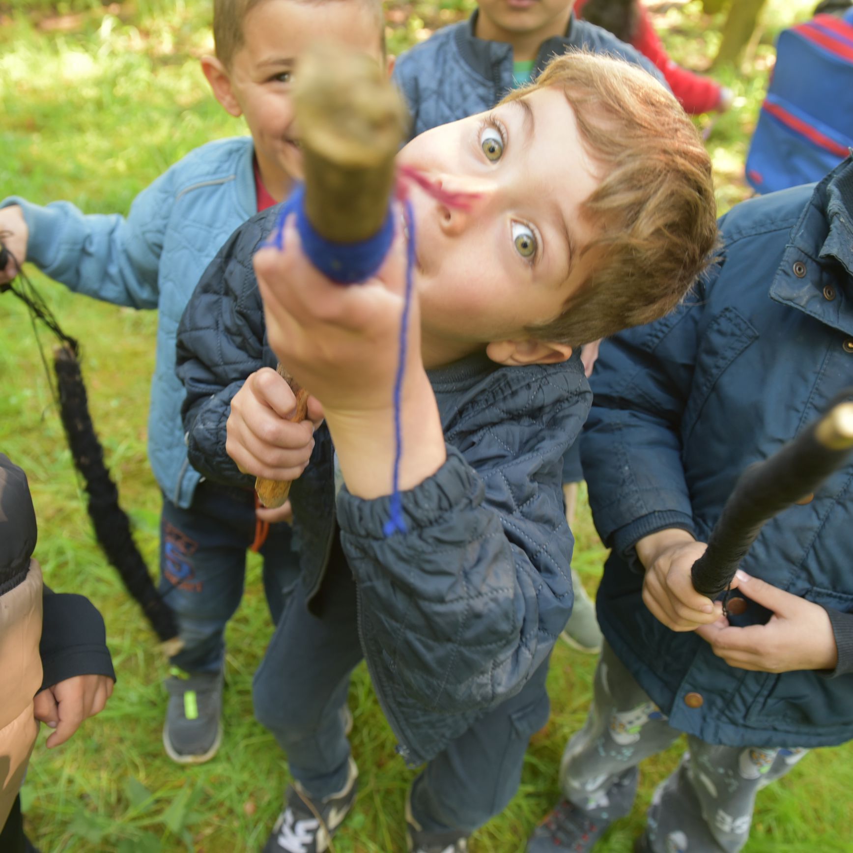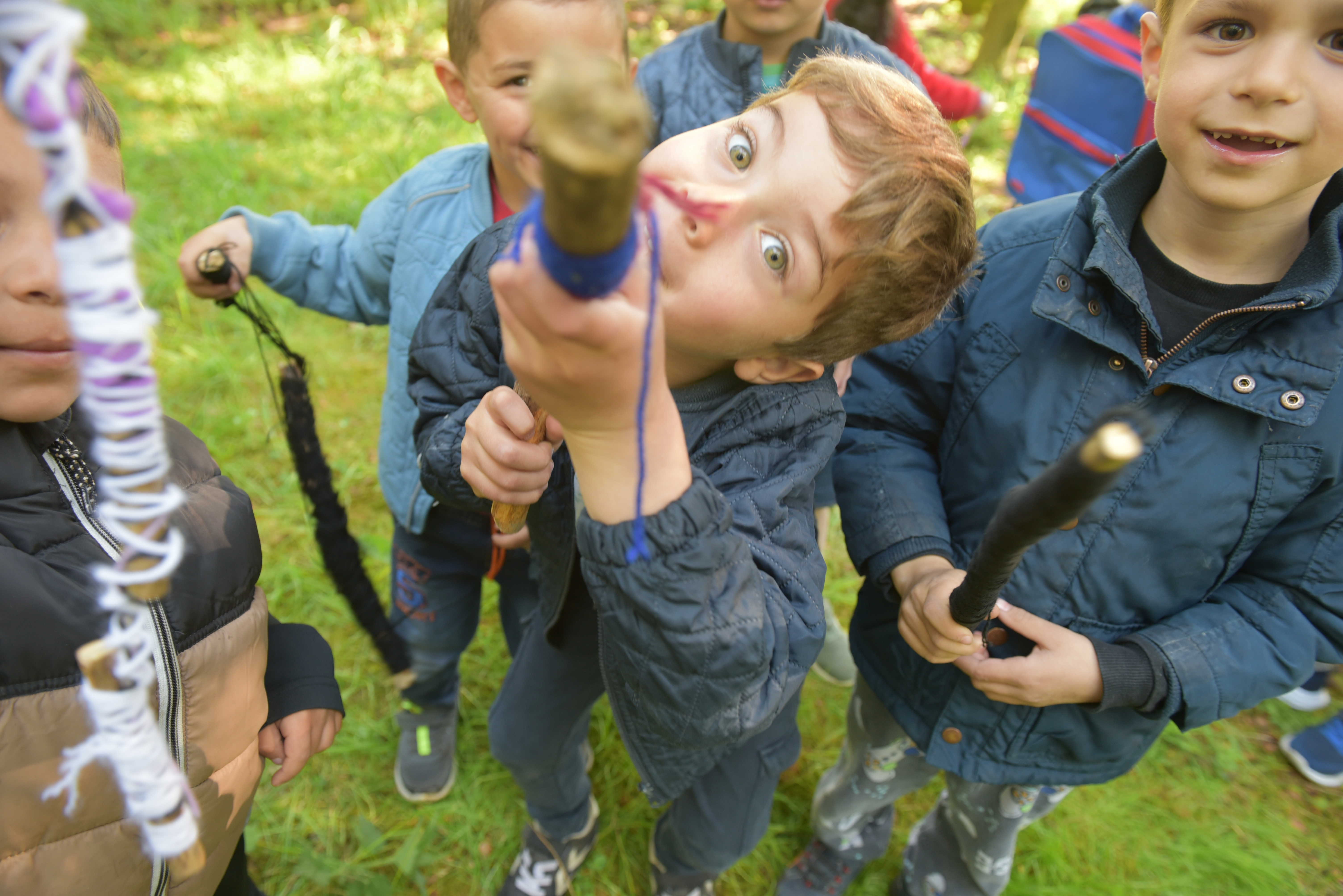 Eeeen, tooooo, treeee - NU! Sådan lød det mellem træerne i den sydøstlige del af Nordre Fælled, da børn fra Nordbyens institutioner var samlet fredag den 12. maj for at indvie et nyt kunstværk. Børnene har i ugens løb malet og udsmykket deres egne pinde, som de på skift kastede op i et 75 meter langt naturnet i træerne.
