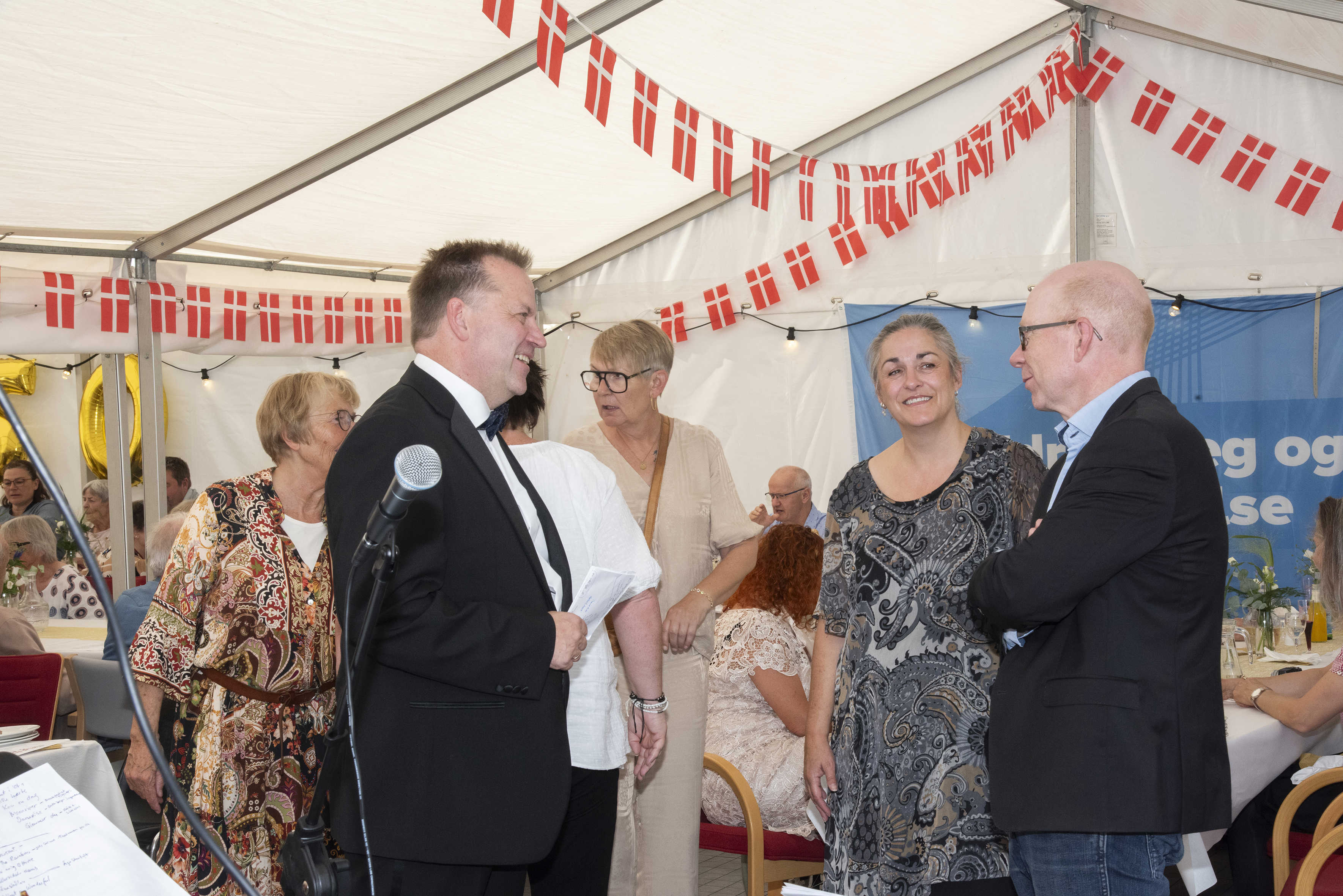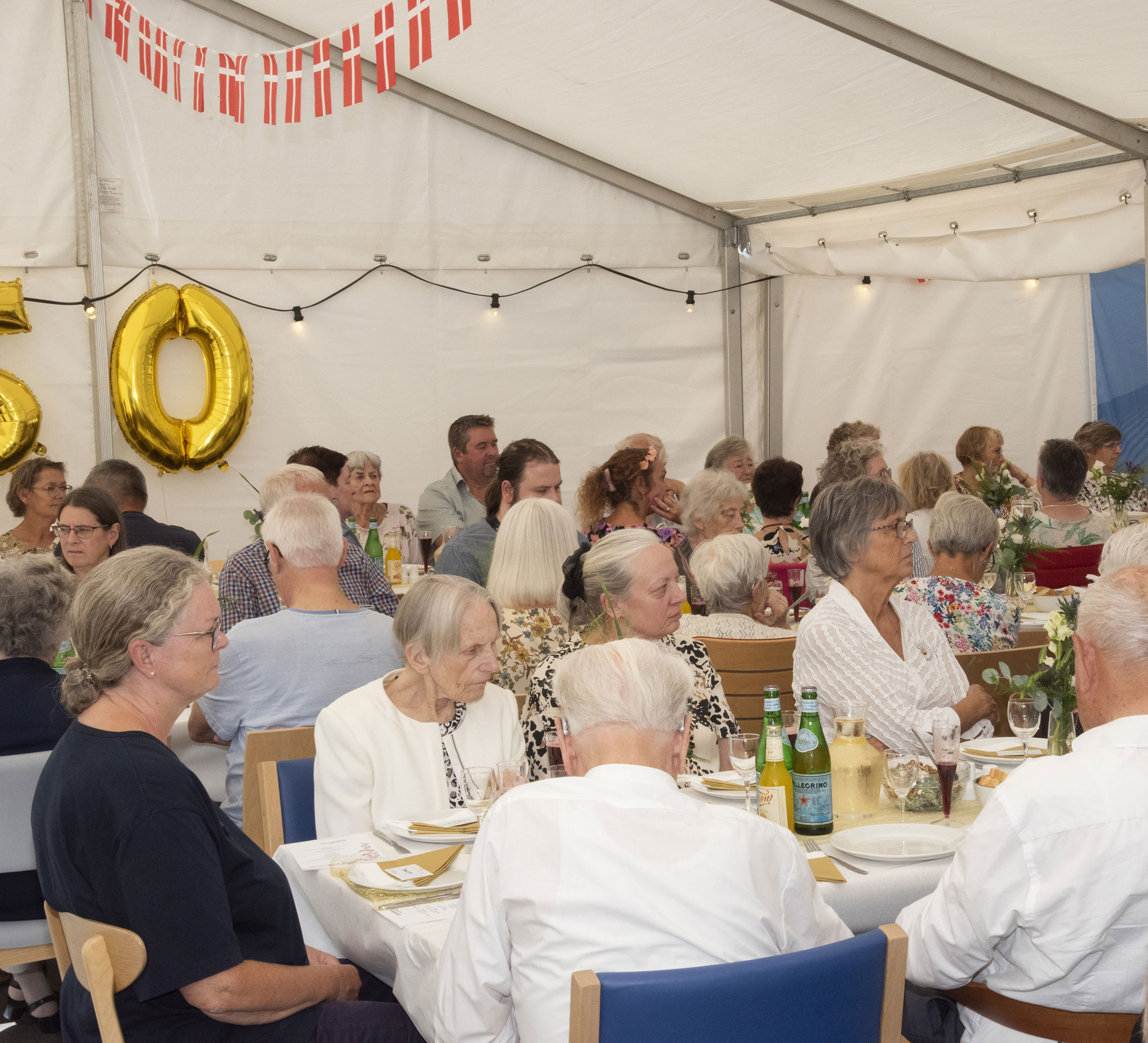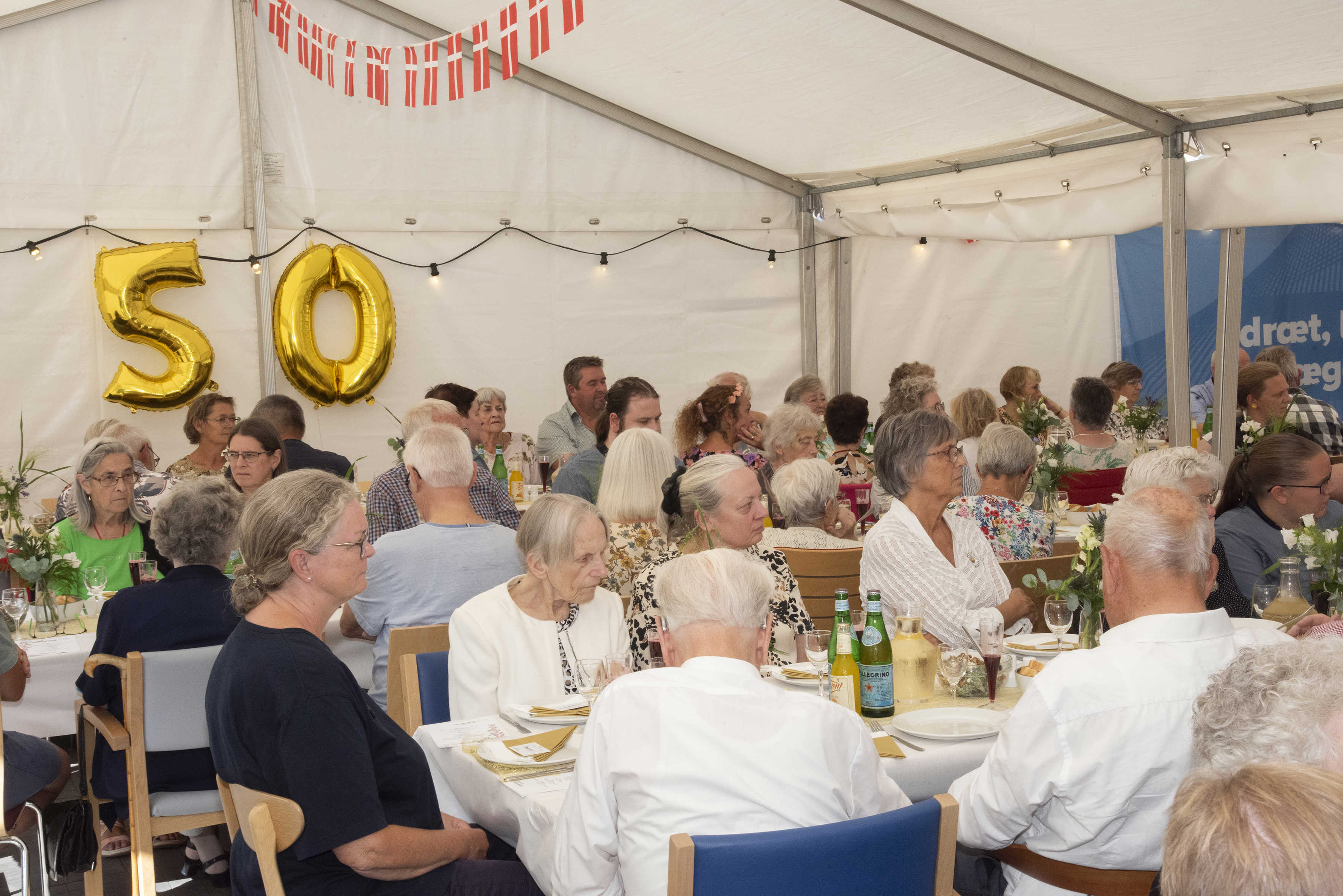 Festteltet var slået op, grillen tændt og stemningen i top til jubilæumsfesten på Solbakken. I løbet af dagen var der mange festlige indslag, herunder en tale ved borgmester Torben Hansen samt jazzmusik og "gamle danske" sange.