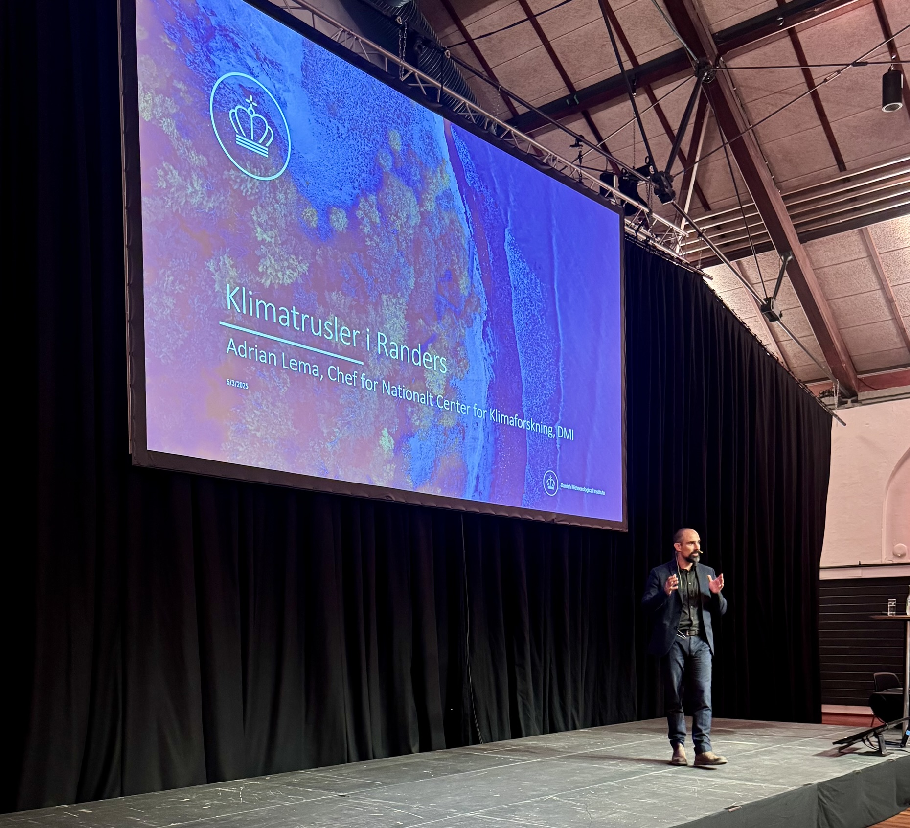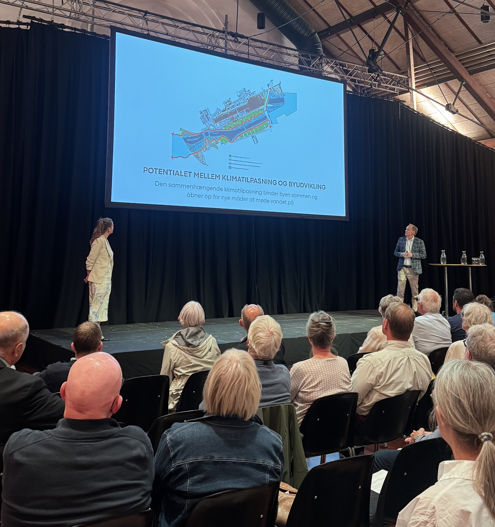 Ridehuset lagde tirsdag d. 3. juni 2025 rammer om arrangementet ”Hvad gør vi, når vi vandet kommer?”. 250 interesserede og spørgelystne gæster var mødt op til aftenens indlæg fra eksperter fra både kommunens lokale myndigheder og aktører, og også DMI og Finans Danmark lagde vejen forbi for at give de større perspektiver på fremtidens klima og boligøkonomien i en tid, hvor mere vand og ekstremt vejr forventes at blive normalen.