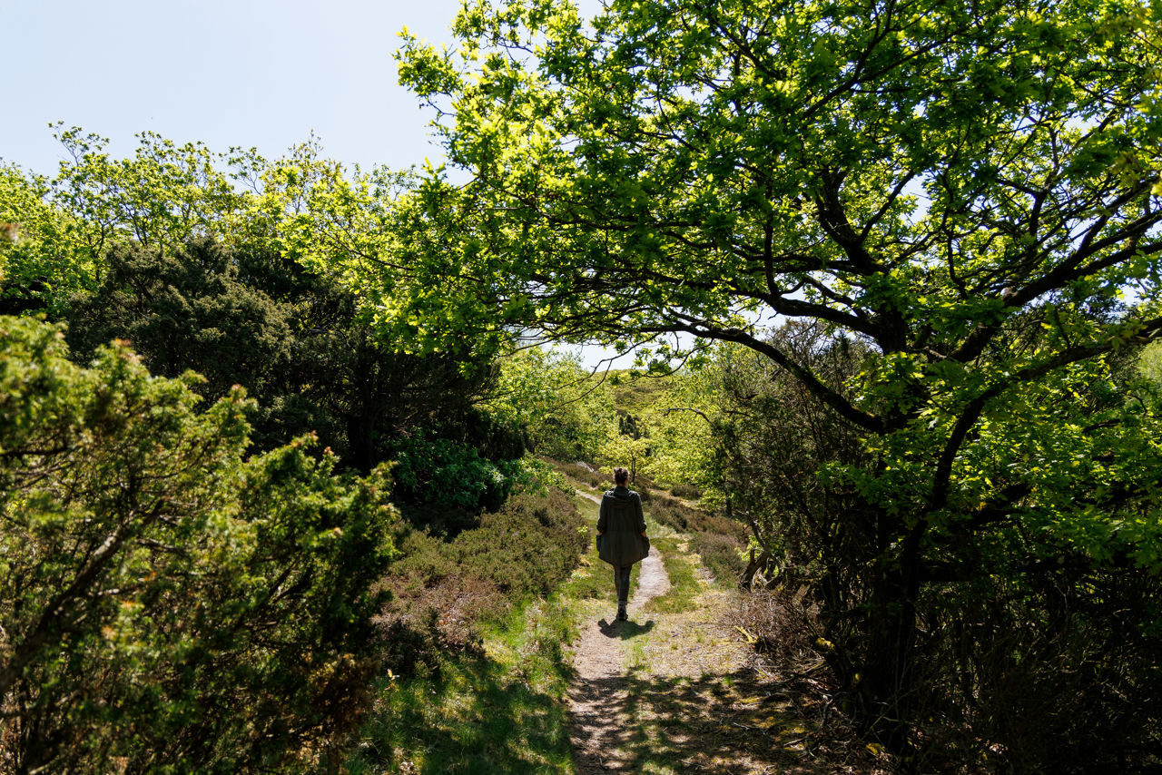 Vandrestier er anlagt, så alle kan nyde den smukke natur. Før, Naturfonden købte området, var området delt op af mange mindre hegn, der forhindrede dyr og mennesker i at bevæge sig rundt. De hegn er nu fjernet og erstattet af et stort hegn i udkanten af hele området. Efter snak med lokale borgere er der lavet særlige stier uden for hegnet, så man kan vælge at gå, hvor der ikke er kvæg. Der er også lavet sluser til folk med hunde, så de kan bevæge sig gennem området væk fra kvæget. Her er kommet nye p-pladser og skilte. Foto: Jesper Edvardsen