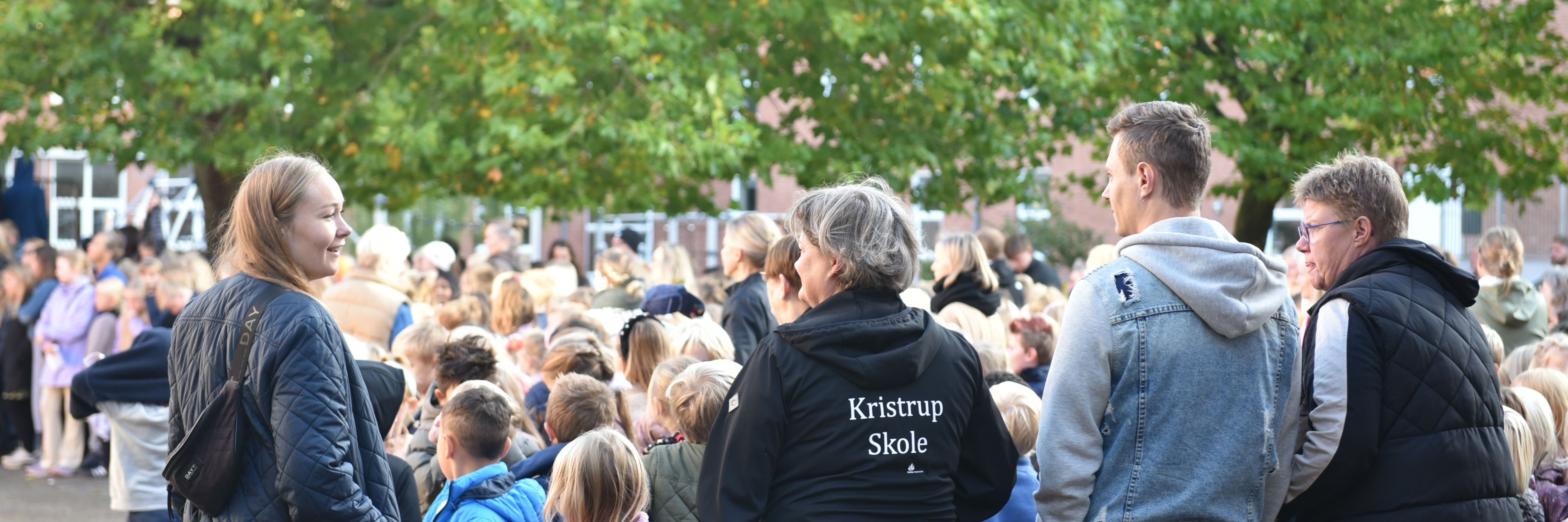 I dag huser selvsamme bygning 6. årgang, Skibet og Kristrup bibliotek, som vidner lidt om skolens størrelse 125 år efter. For på Kristrup Skole er der godt 600 elever fra 0.-6. klasse både på almenområdet og tre specialklasser, og de var alle mødt op i skolegården for at fejre skolen. Det var ikke kun elever, som deltog, for også Borgmester Torben Hansen, formand for Skole- og Uddannelsesudvalget Lise-Lotte Leervad Larsen, skolechef Morten Lyhne og formand for skolebestyrelsen Niels Søndergård og næstformand Mette Daubjerg Møller var mødt op for at være med til at markere den særlige dag.