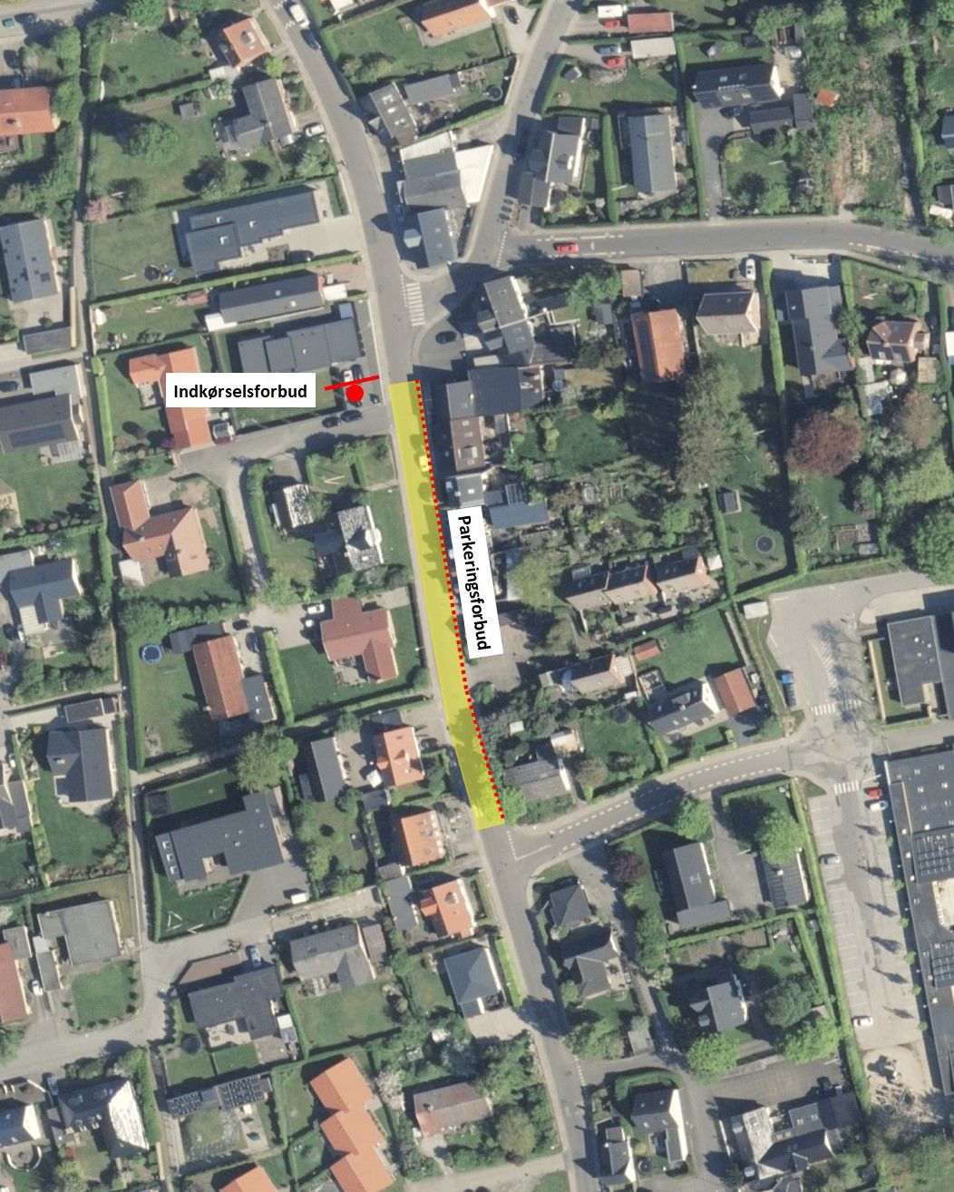 - Forbud mod indkørsel fra nord på hverdage kl. 7.30–8.30 (bus undtaget)