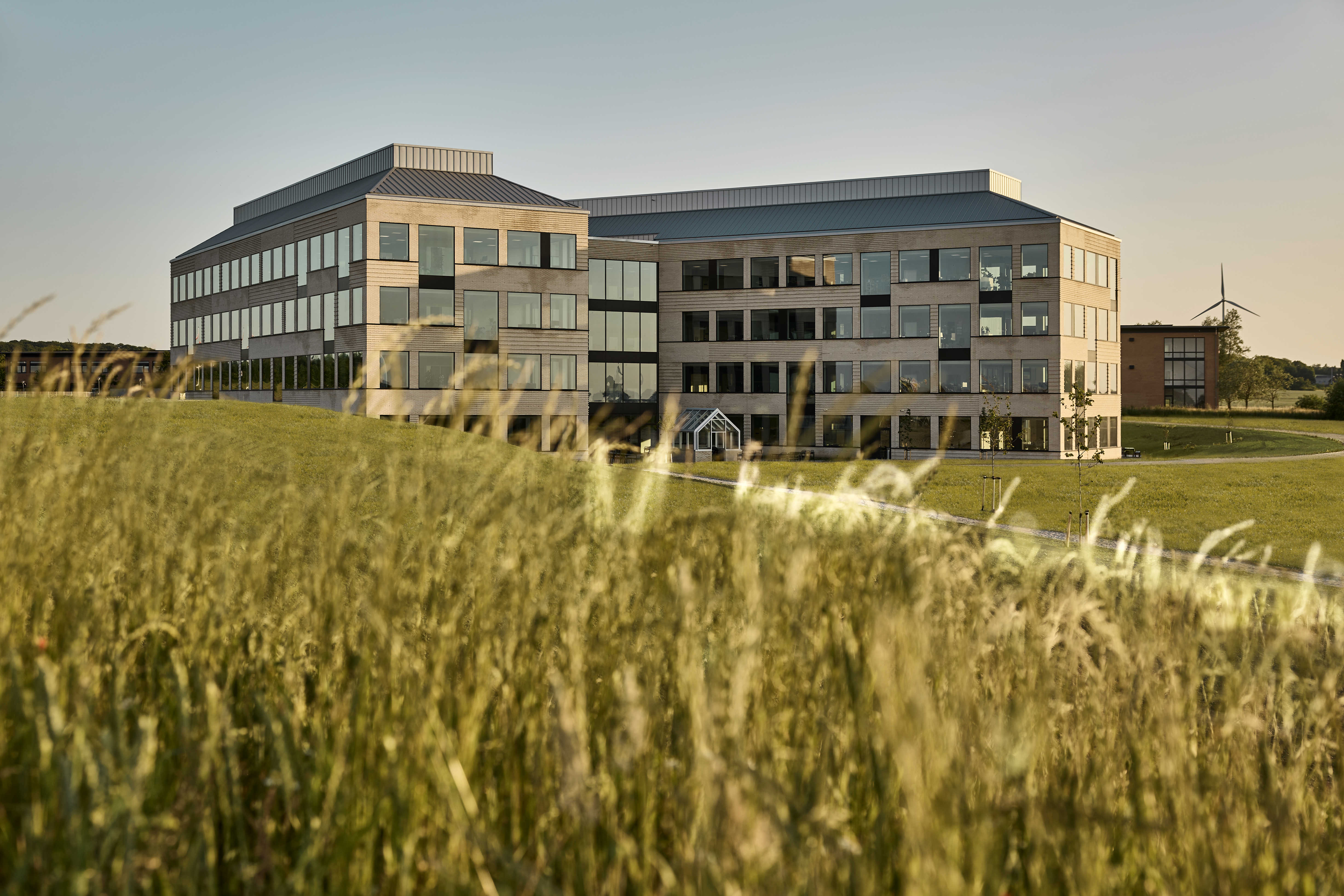 Danish Crown modtager Randers kommunes arkitekturpris for deres nye domicil som et kvalitetsbetonet eksempel på, hvordan man bygger nyt på bar mark og samtidig kobler sig fint til det eksisterende byggeri på grunden. Tre kontorbygninger ligger som en vifte og optager det faldende terræn og skaber samtidig et imponerende indre glasoverdækket atrium der kobler bygningerne sammen til en helhed. Atriet møbleres med gangbroer, trapper og terrænet ses i den flotte amfiteatralske opbygning. Og på de nedre niveauer udstilles, som butikker på torvet, virksomhedens produkter i det oplevelsesrige atrium. Alle bygningsdetaljer er omhyggeligt gennemarbejdede, materialerne er langtidsholdbare og farver og wayfinding har et godt indbyrdes samspil. Det store lyse atrium skaber samlet et godt arbejdsmiljø og har flotte kik ind mod Randers med levende marker i forgrunden. Domicilen fortæller på fornem vis om en ambitiøs bygherre og et godt samarbejde med rådgiverne. Foto: Jacob Lerche