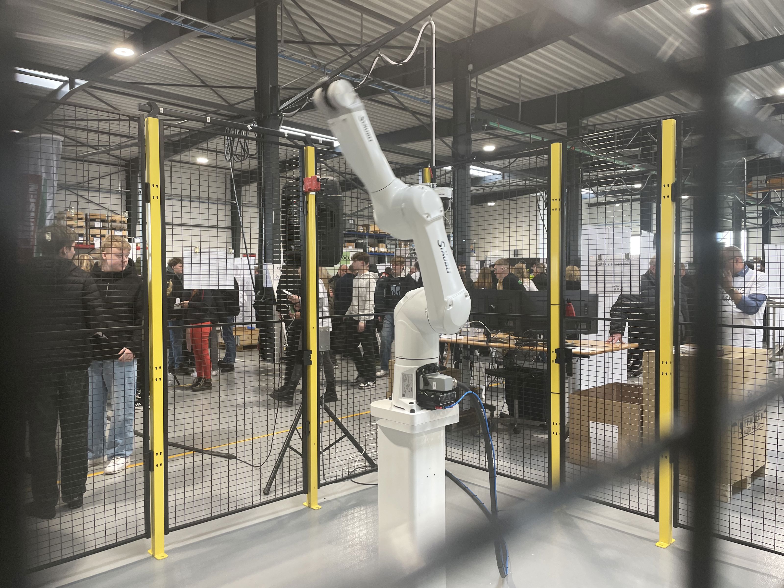 På messen kunne Gustav Riis og de andre deltagere møde 59 lokale virksomheder, som alle søger medarbejdere eller lærlinge lige nu. En af dem er Dansk Maskin Teknik A/S, som var repræsenteret af smedelærling Magnus Bigum, konstruktør og projektleder Mathias Ploumann og automationstekniker Victor Dalby.