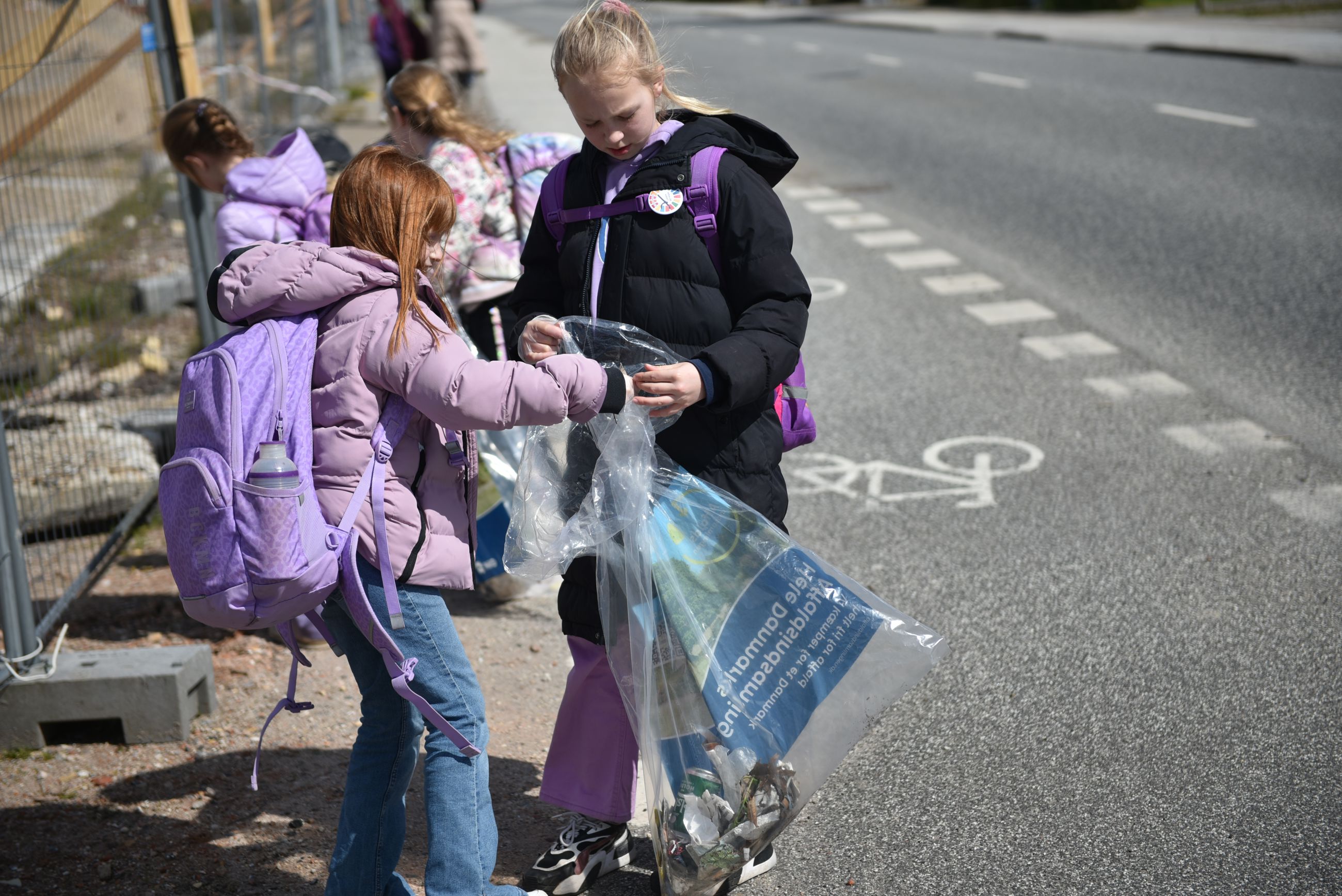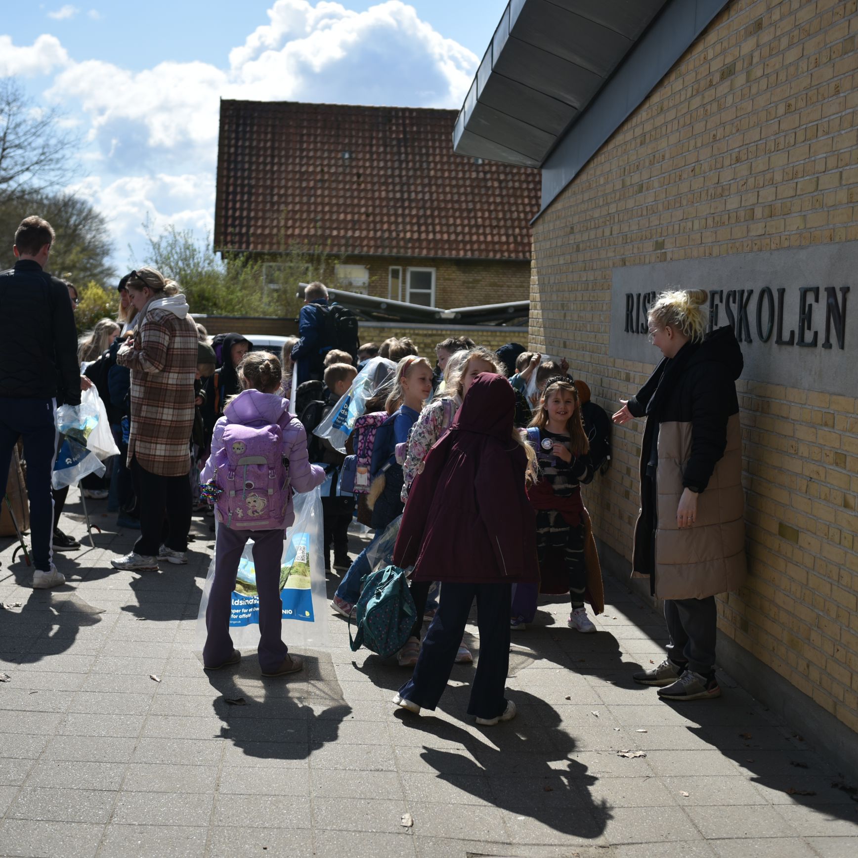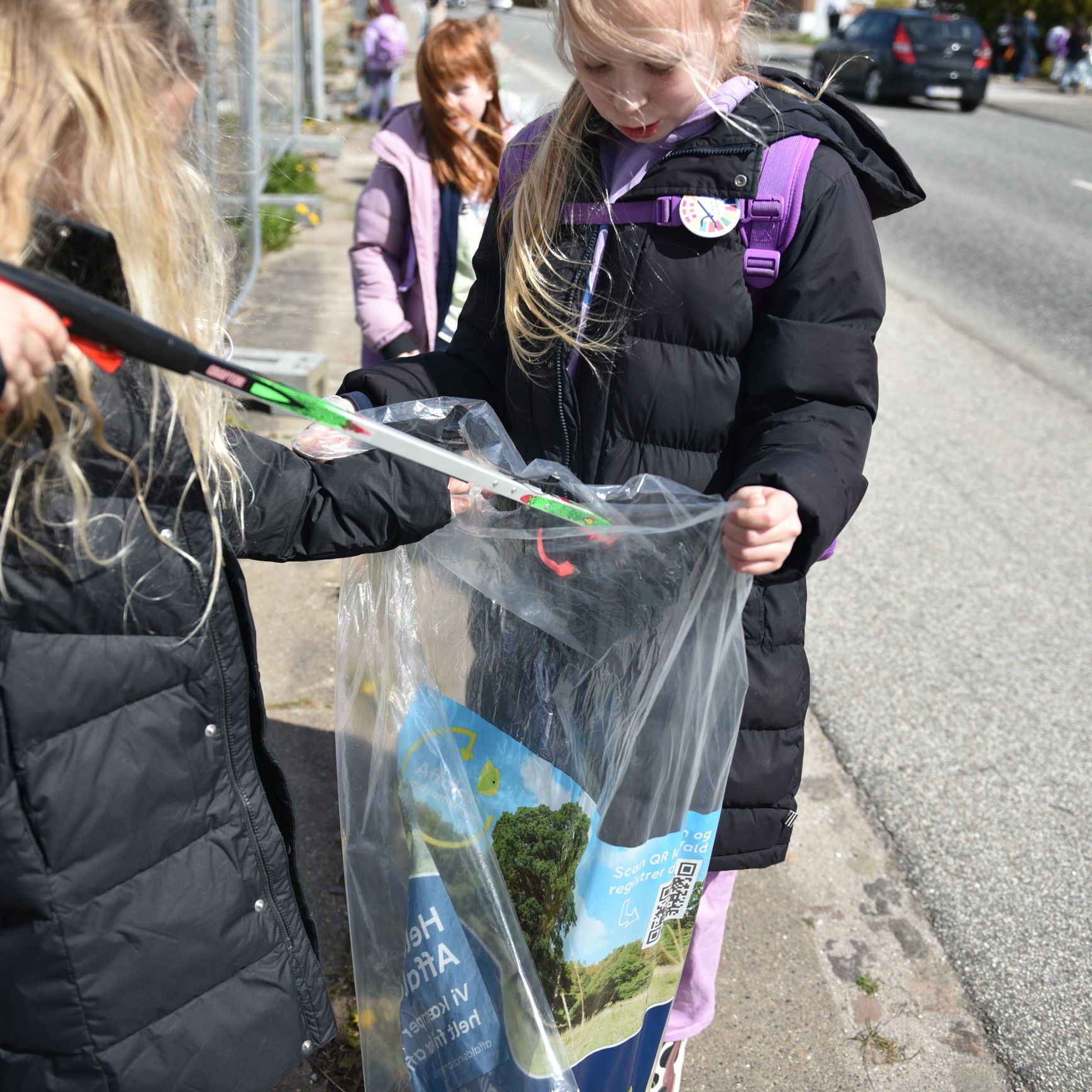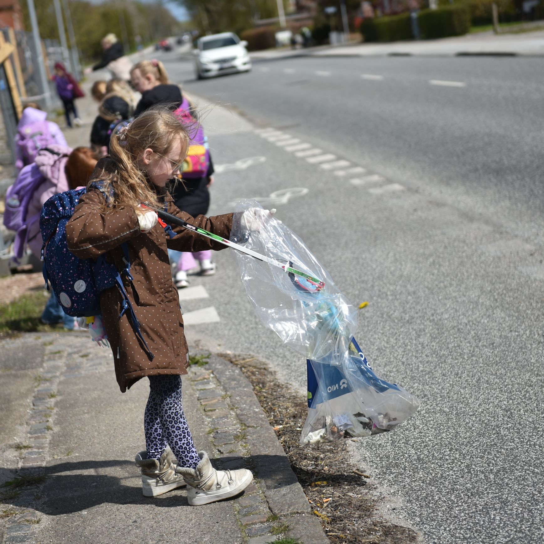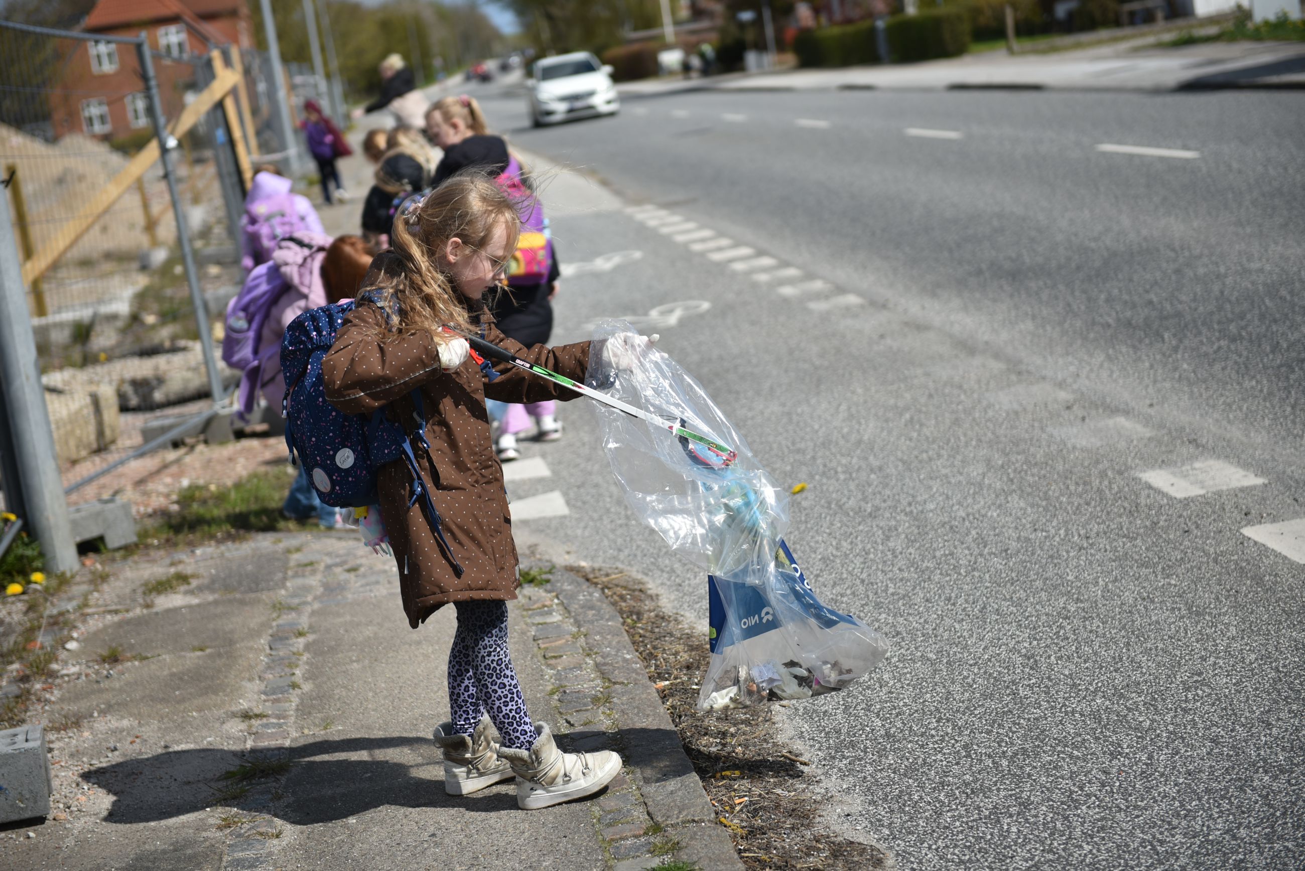 Med snappere og affaldssække i hånden, var idrætsfritidsordningen i Dronningborg på en mission. Cigaretpakker, plasticemballage, dåser og alverdens forskellige typer affald skulle væk fra vejkanten på ruten fra Rismølleskolen til Dronningborg Idrætscenter, hvor der ventede bålhygge og snobrød.