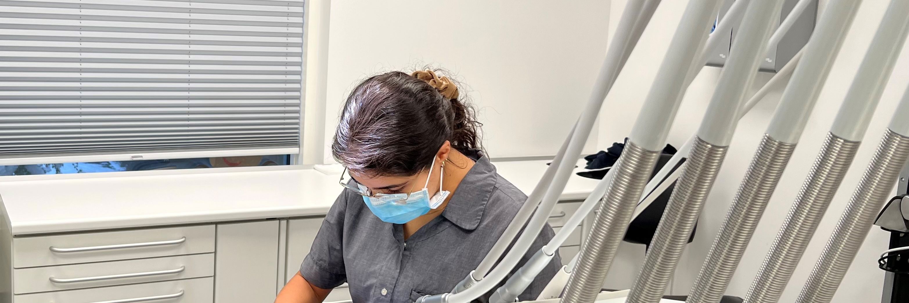 "Jeg hjælper for eksempel med månedlige kontroller af mundhygiejne, plastbehandlinger, tandudtrækninger og assisterer ved større kirurgiske indgreb. De forskelligartede opgaver gør, at jeg får udvidet min horisont og bliver klogere på, hvad jeg synes, der er spændende at arbejde med," siger Omaira Rayeq.