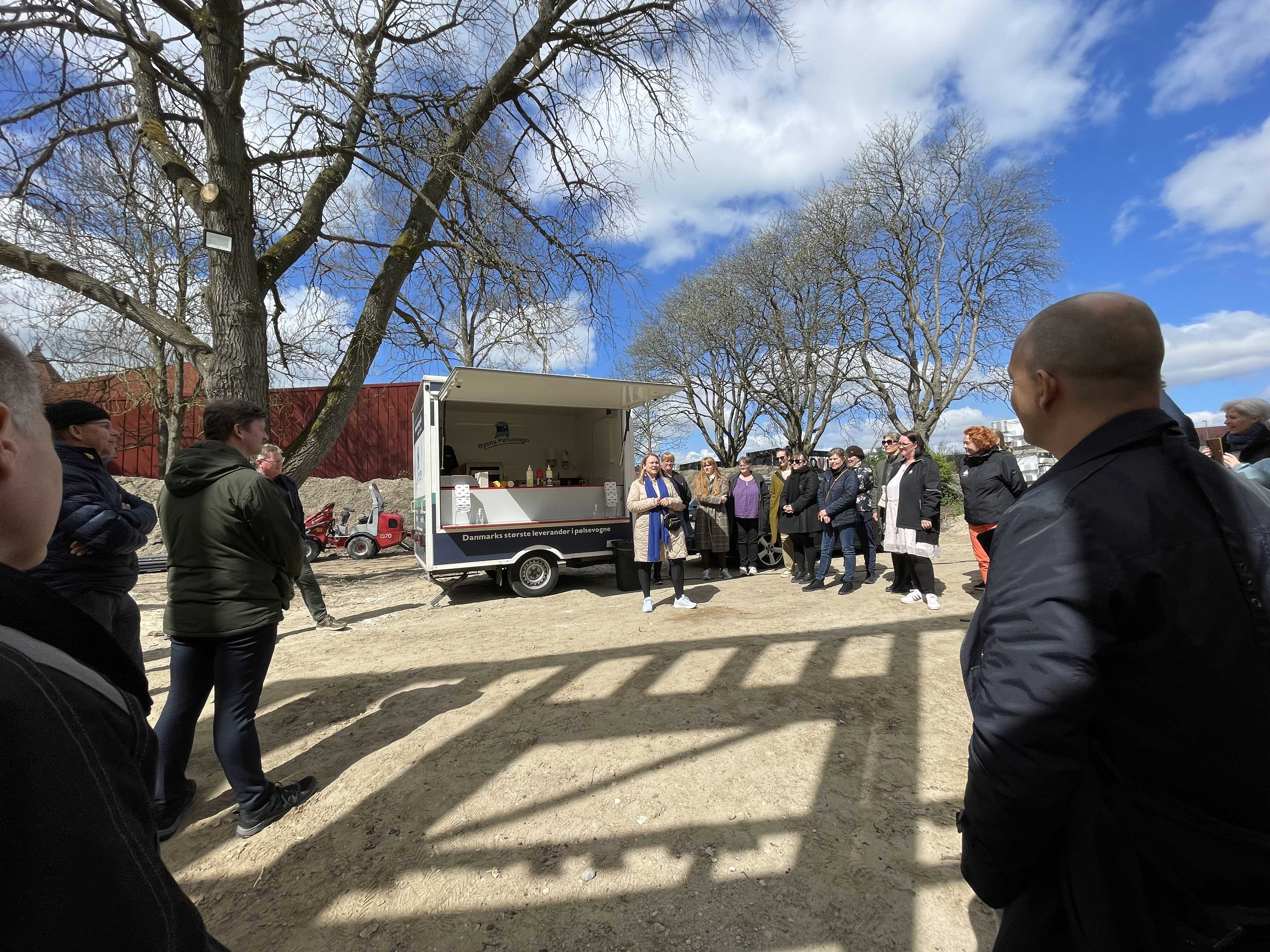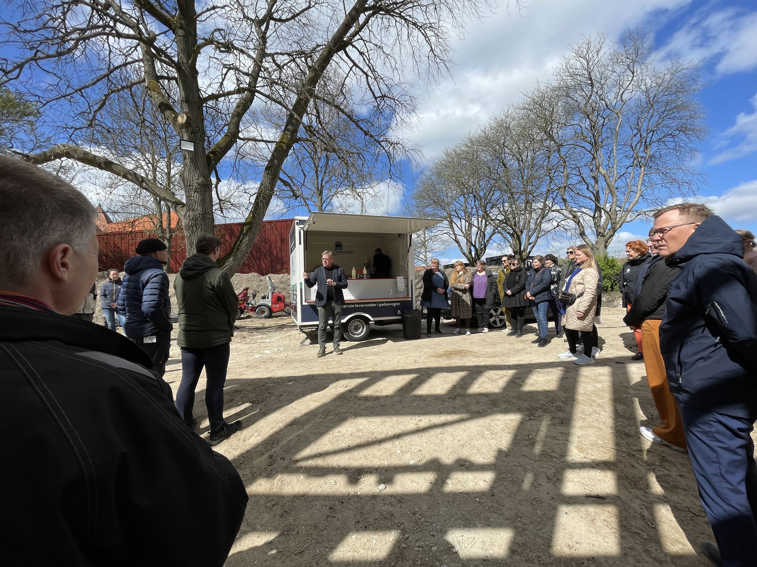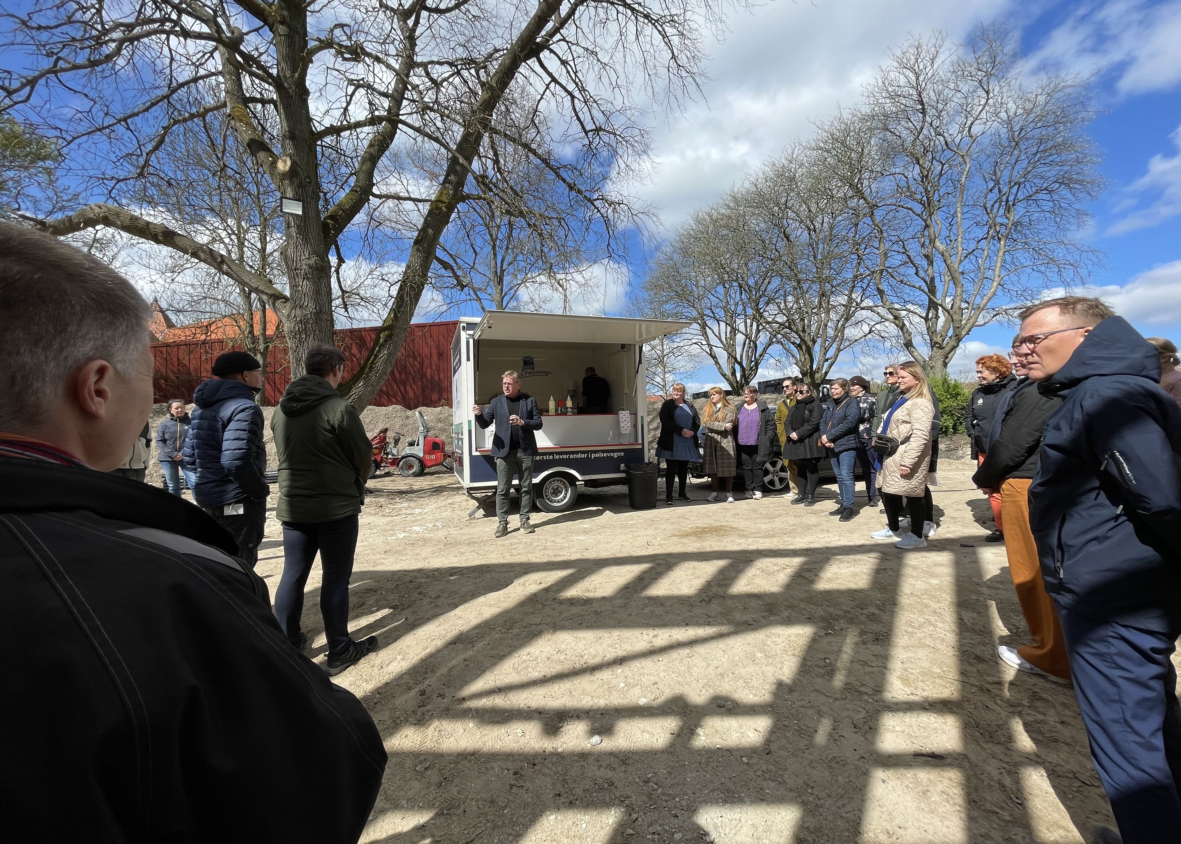 Pædagogisk leder Nancy Engberg satte også ord på forventningens glæde til det nye byggeri. Og hun kunne samtidigt løfte sløret for en nyhed.