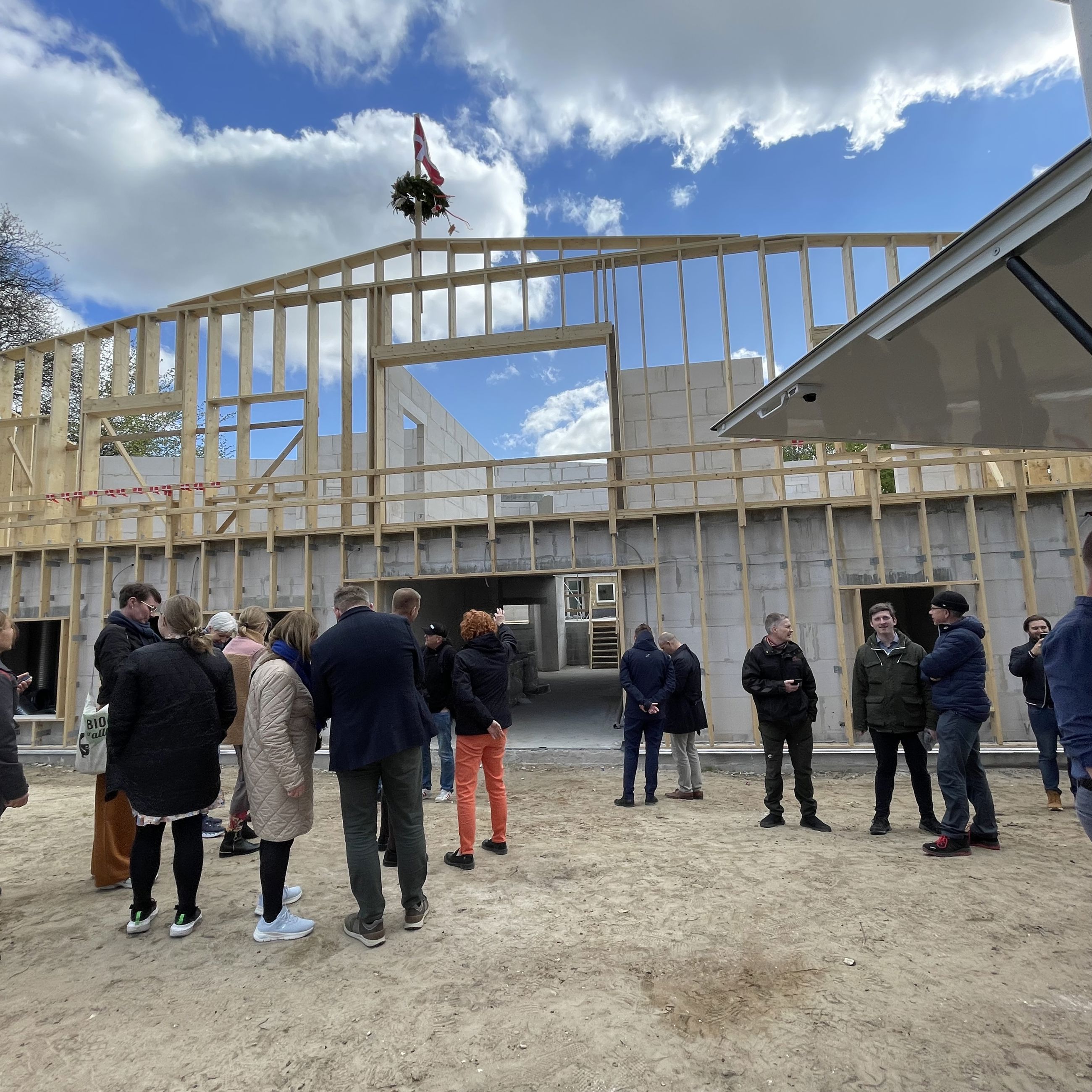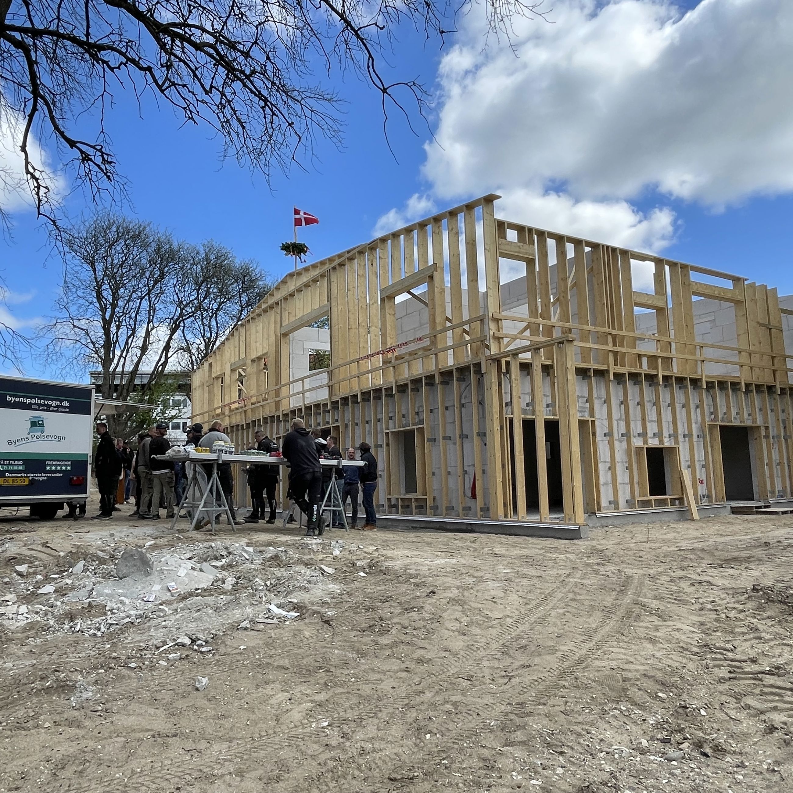Tirsdag 2. maj kunne institutionen fejre rejsegilde på deres nye tilbygning i to etager på Nyvangsvej 25 i Randers. Den nye tagkonstruktion blev fejret med pølser, sodavand, skål og taler.