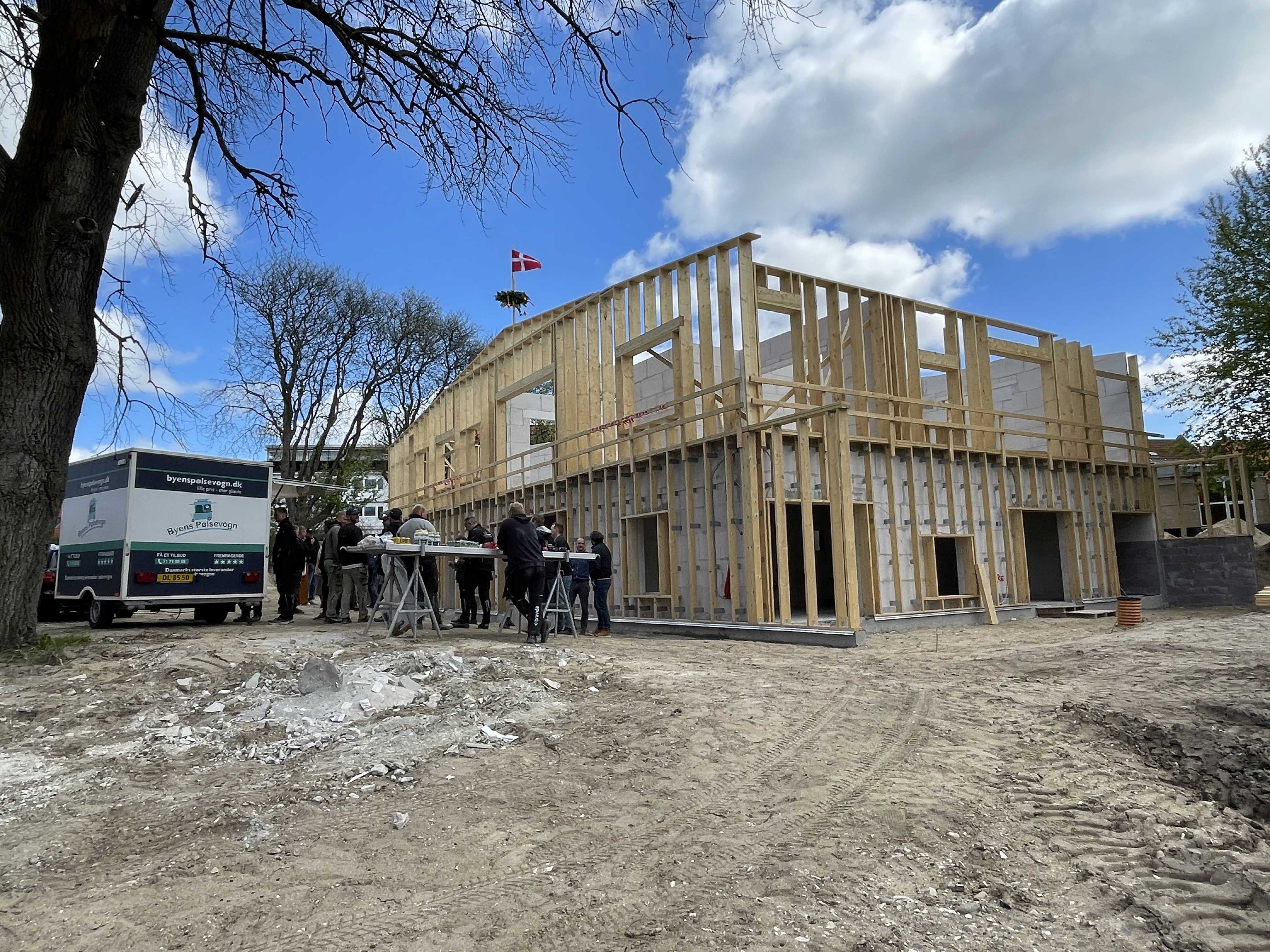 "Der er sket en del siden første spadestik tilbage i november, og det er dejligt at se, at byggeriet skrider godt frem. Vi holder rejsegilde for at takke håndværkerne for deres gode arbejde. Og en tak skal også lyde til dagtilbuddets ledere og medarbejdere og entrepenøren, som jeg har hørt har et godt samarbejde om at skabe nogle gode, moderne rammer for børn og personale," sagde borgmester Torben Hansen, som holdt tale for de fremmødte, som bestod af institutionens pædagoger, kommunale medarbejdere og repræsentanter fra entreprenør Høgh & Sønberg inklusiv alle håndværkerne.