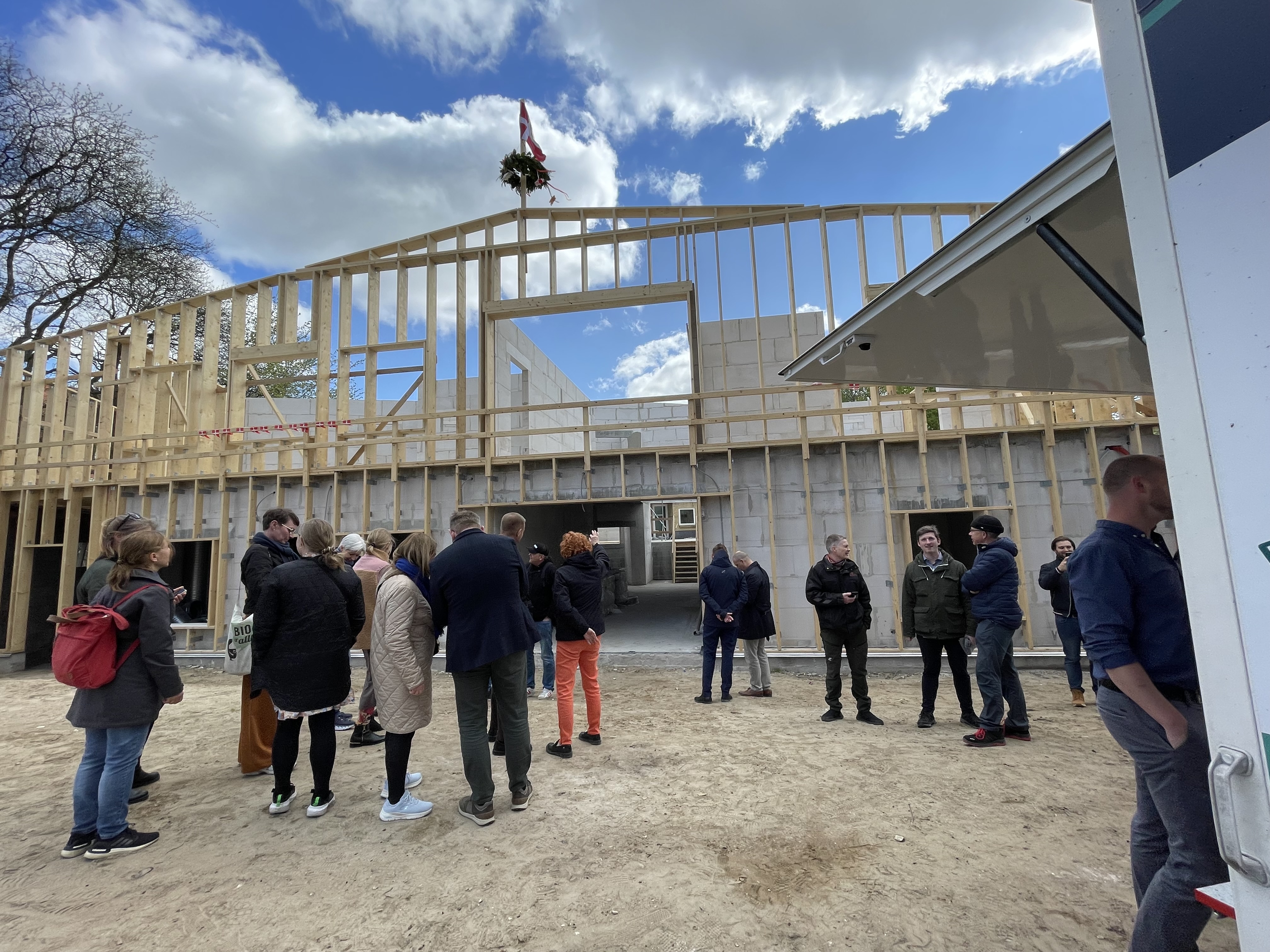 Tirsdag 2. maj kunne institutionen fejre rejsegilde på deres nye tilbygning i to etager på Nyvangsvej 25 i Randers. Den nye tagkonstruktion blev fejret med pølser, sodavand, skål og taler.
