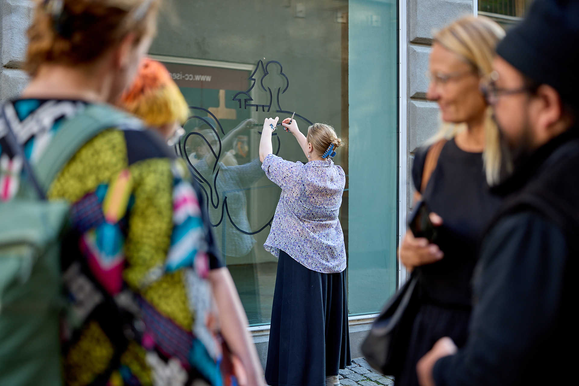 De unge udtrykte sig frit, og byen blev prydet med dekorative mønstre og figurer, der fangede de forbipasserendes opmærksomhed. Lørdagen fortsatte med paste-up art, en teknik, hvor papir eller trykte billeder blev limet på offentlige overflader. Her eksperimenterede deltagerne med håndtegnede billeder, og de arbejdede sammen for at dekorere byens centrum.