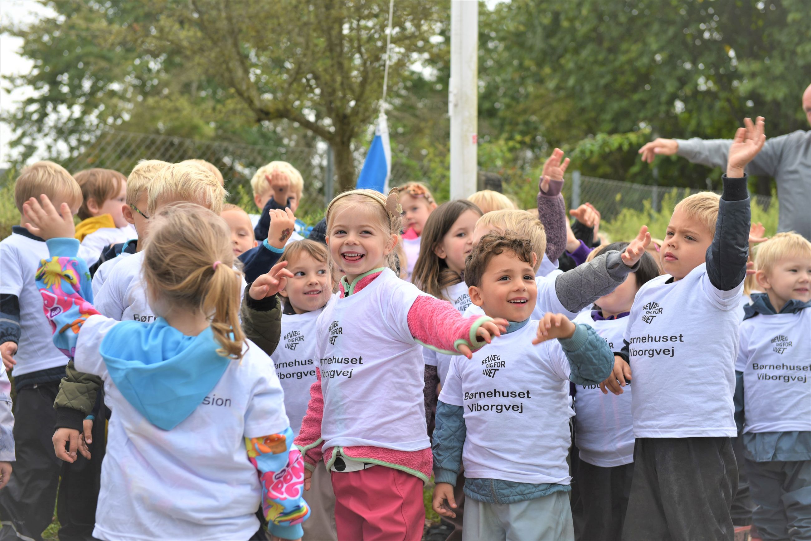 For at fejre den flotte anerkendelse havde Børnehuset Viborgvej inviteret Jesper Jakobsen, som er projektleder for 'Bevæg dig for livet Randers'. Med hjælp fra børnene hejste Jesper Jakobsen flaget, og mens det blafrede lystigt i den friske efterårsvind, lavede han morgengymnastik og motoriske øvelser med børnene.