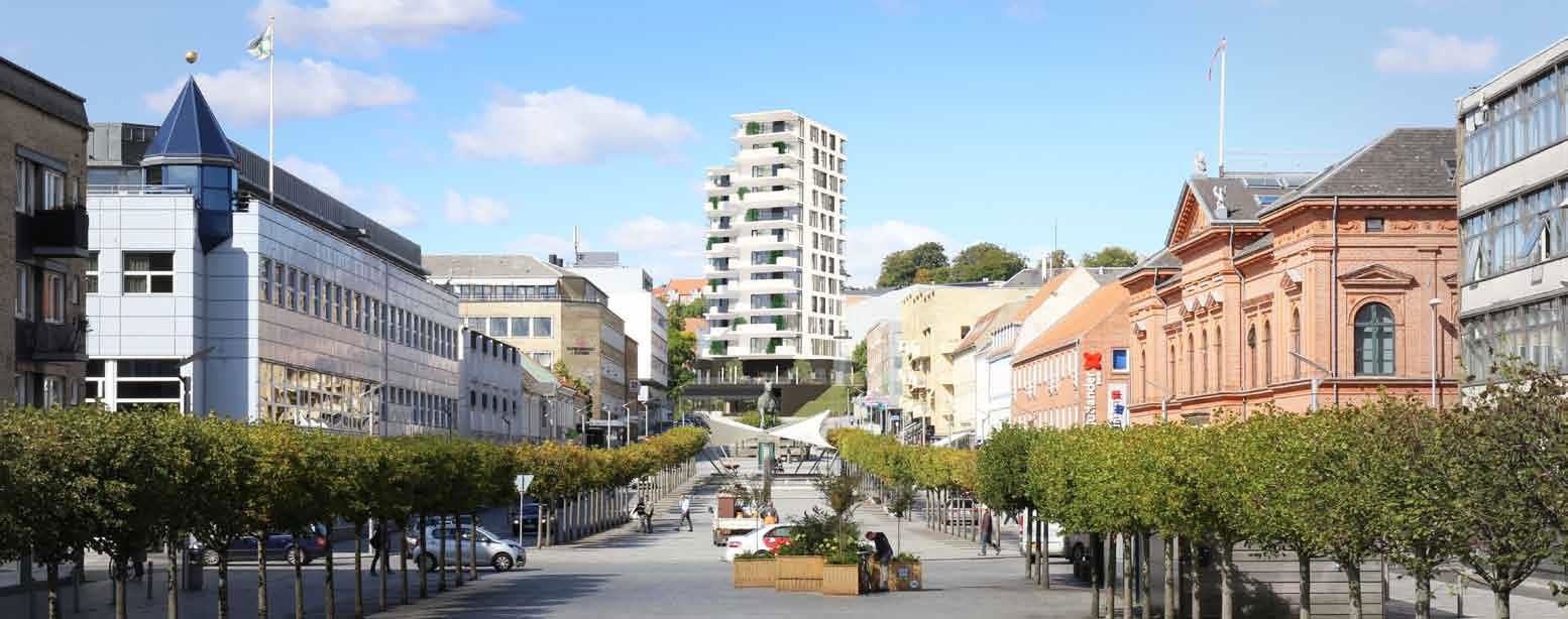 Et højhus på op til 21 etager, åbne boligkarréer og en landskabstrappe, der skal fungere som et grønt byrum og et centralt bindeled til Østervold for fodgængere. Det er nogle af elementerne i et nyt forslag til en lokalplan for bydelen Thors Bakke.