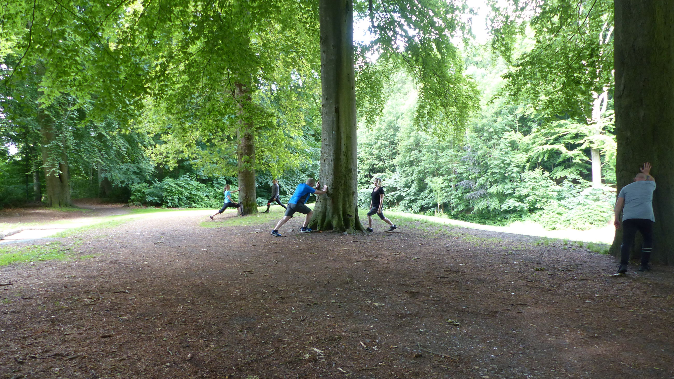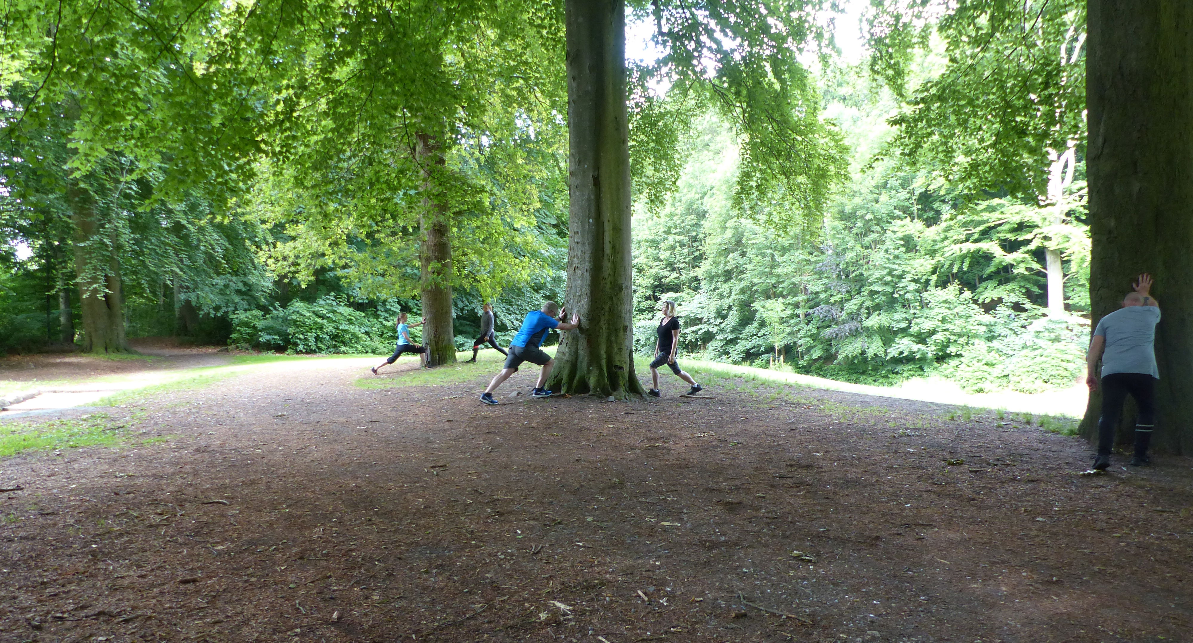 - Træer, bænke, stensætninger og trapper er gode at bruge til styrkeovelser