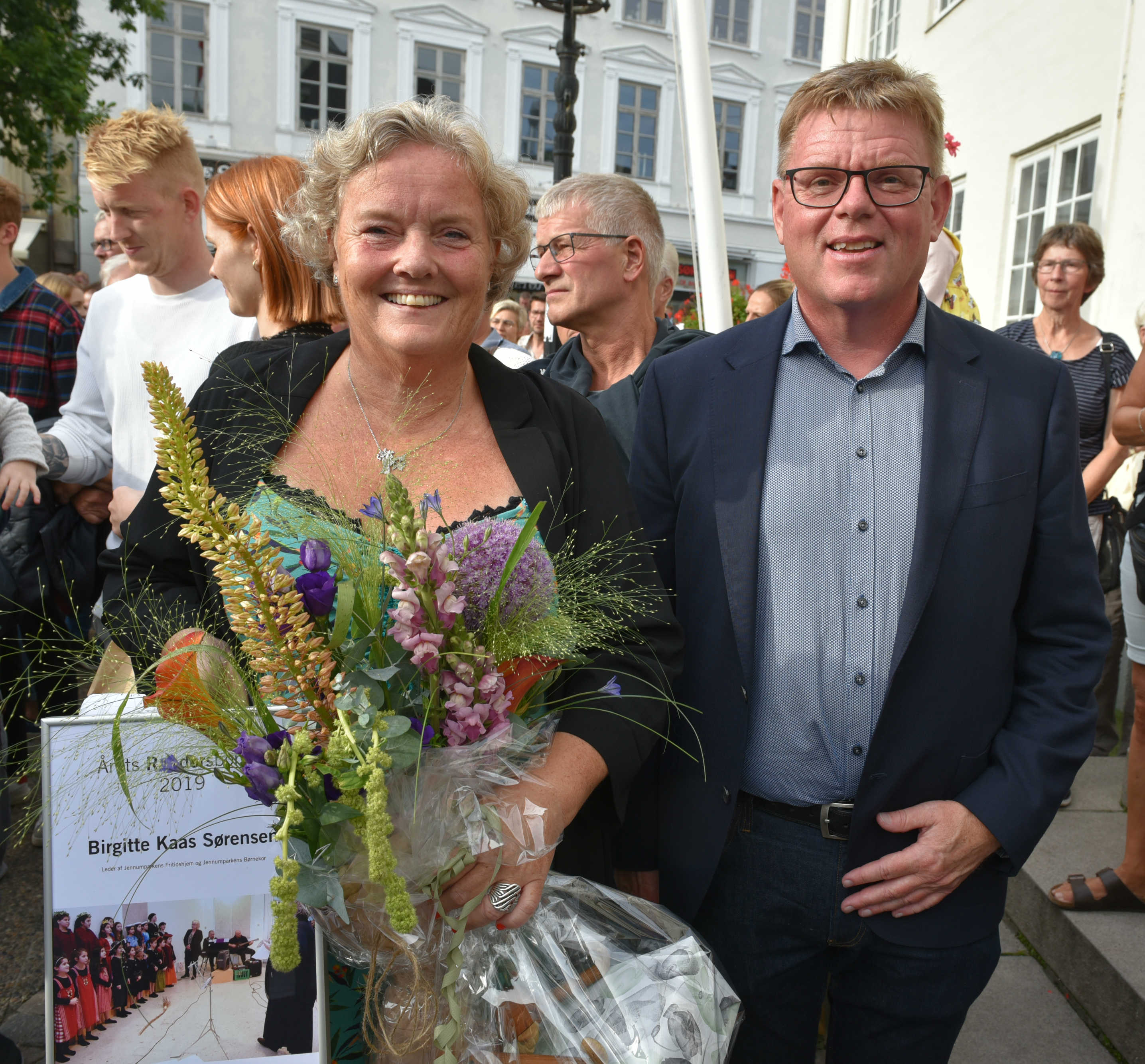 Årets Randersborger 2019 Birgitte Kaas Sørensen og borgmester Torben Hansen lige efter overrækkelsen ved åbningen af Randers Festuge 2019