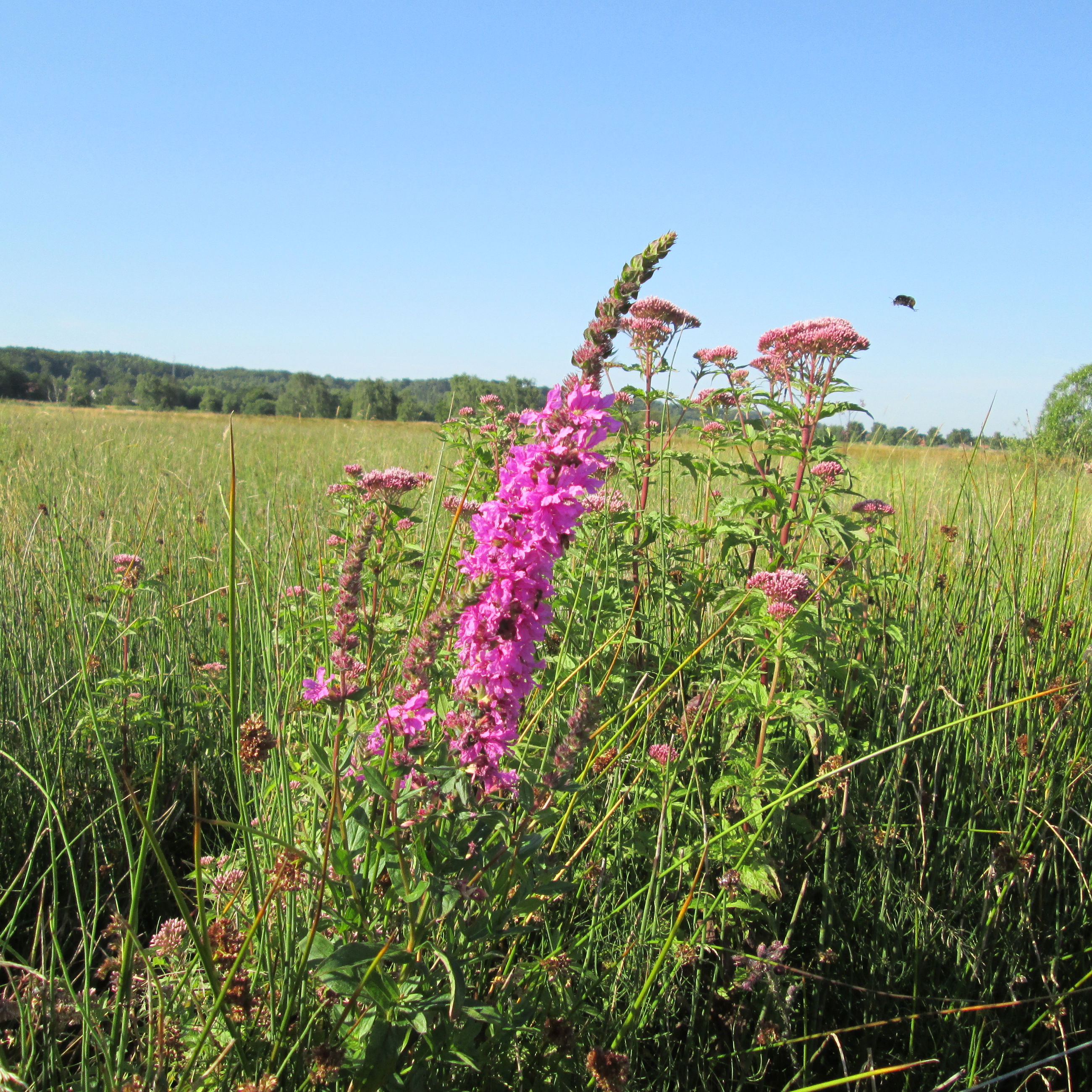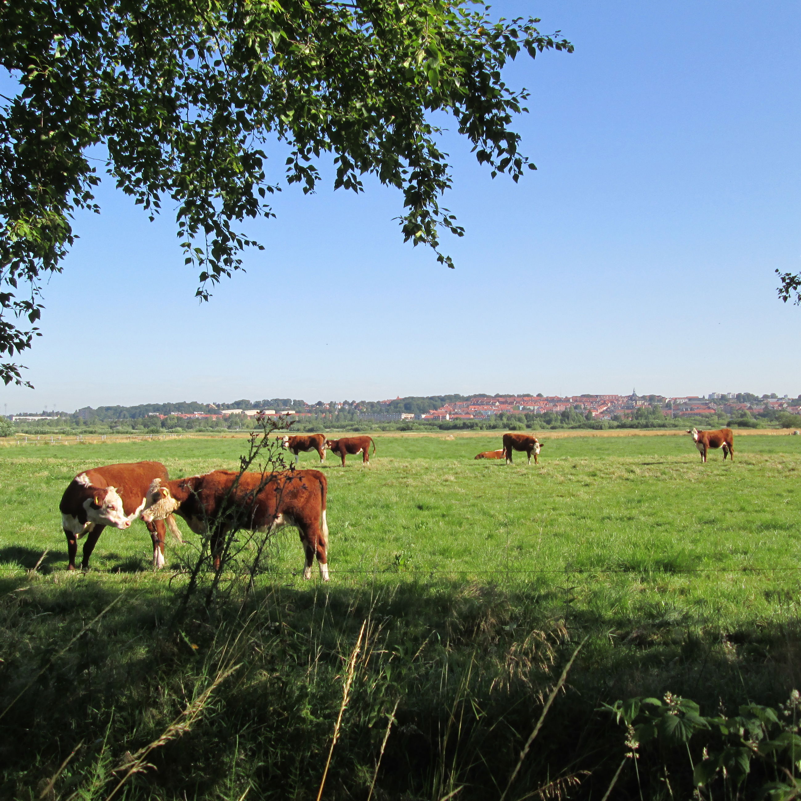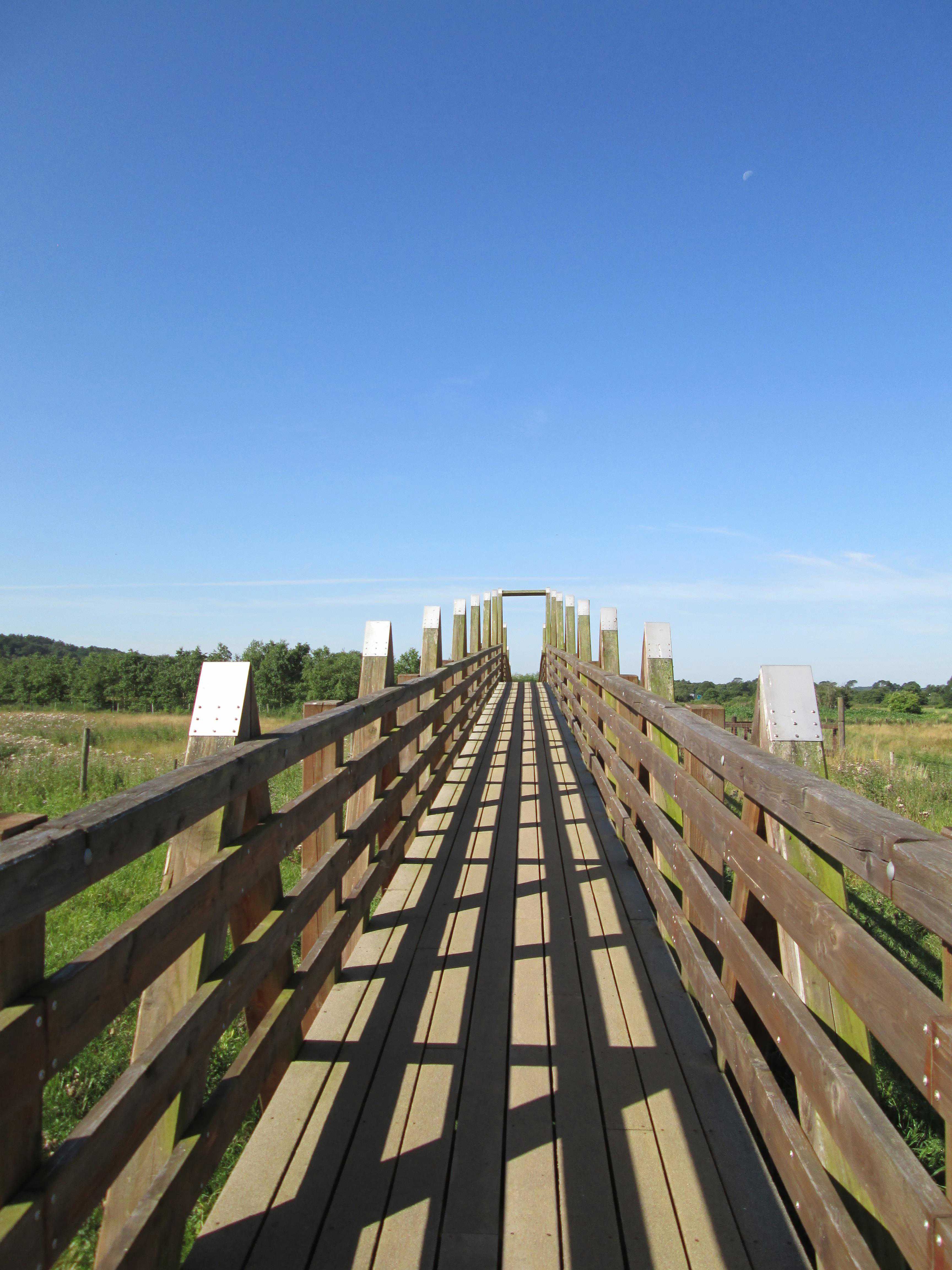 Fra gangbroen ved Randers Regnskov til rastepladsen ved motorvej E45 kan du opleve Vorup Enge på tæt hold på naturstien.